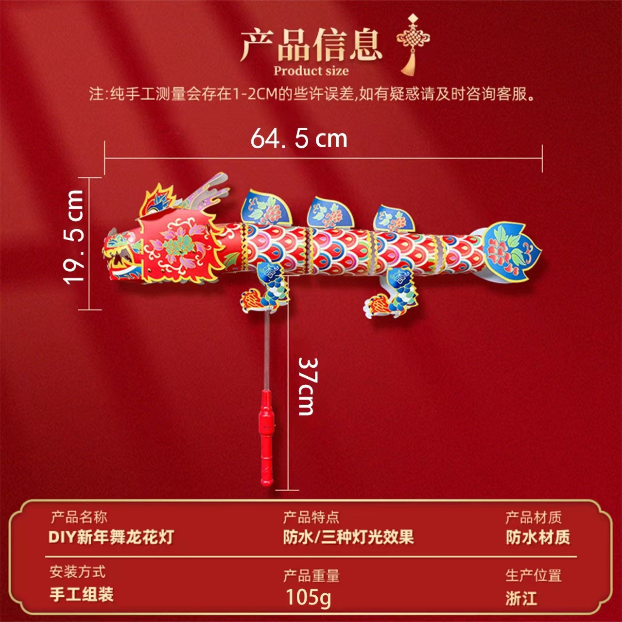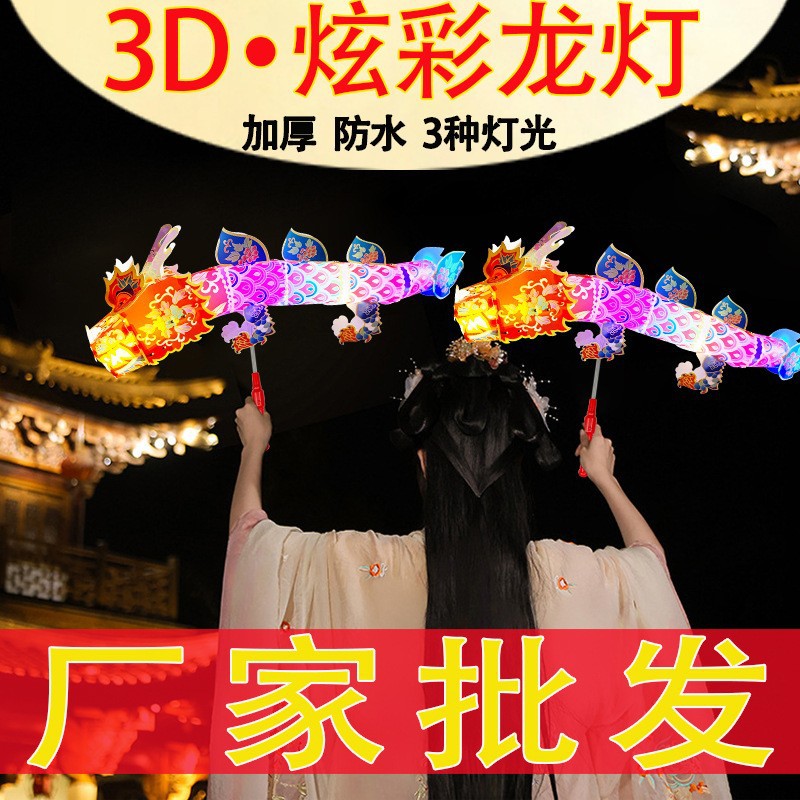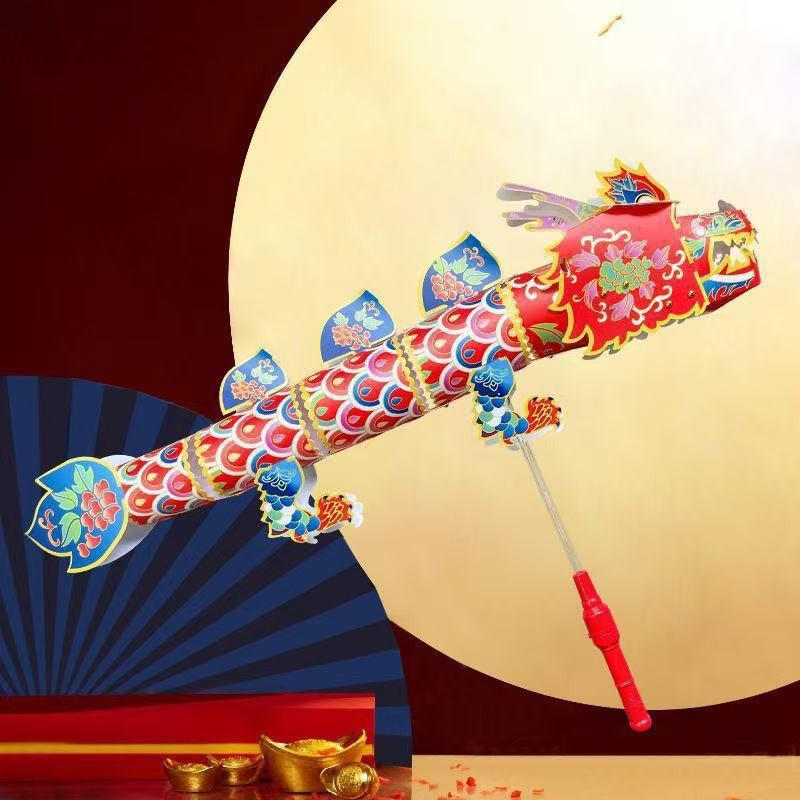 2026春节国潮非遗舞龙灯笼diy炫彩手持儿童3D立体游龙炫彩闹元宵