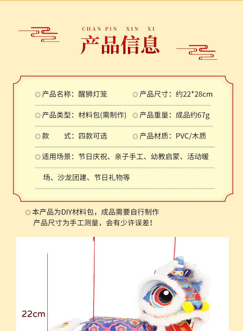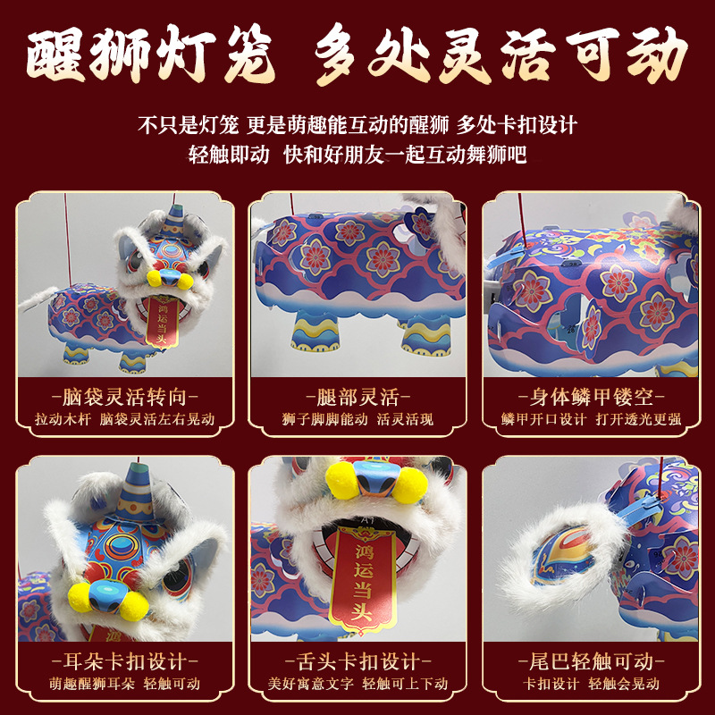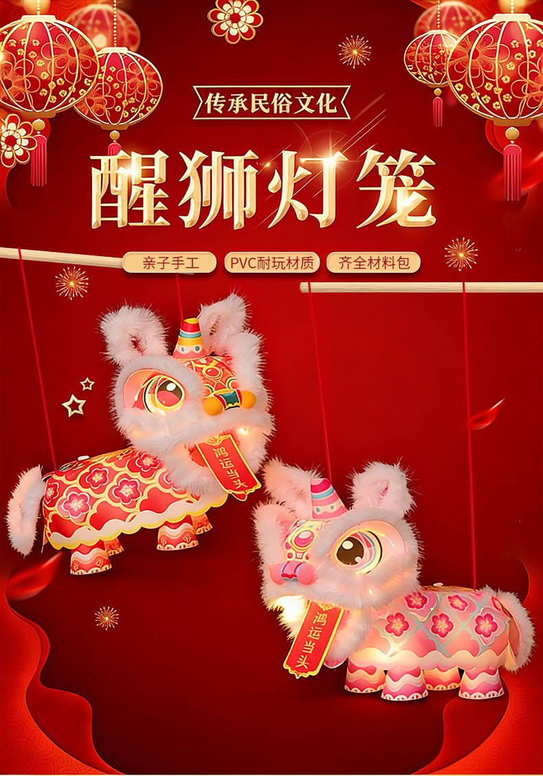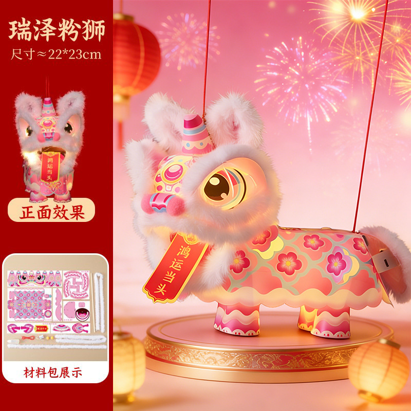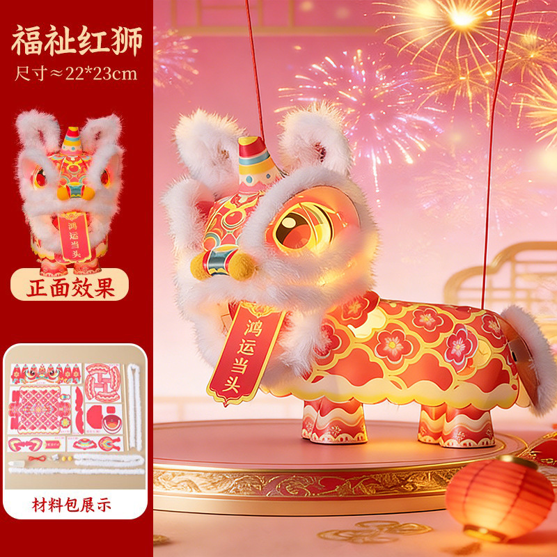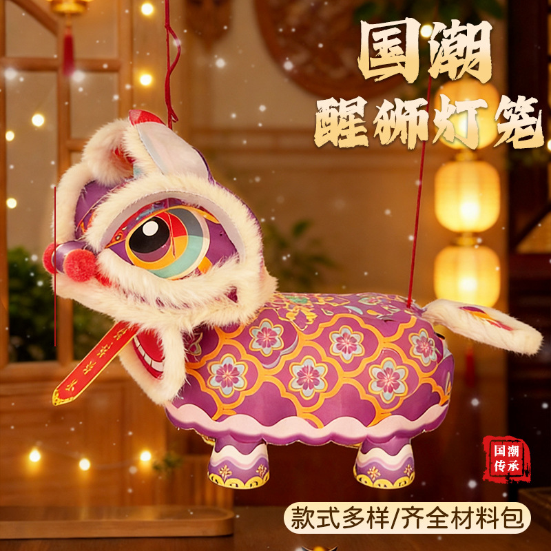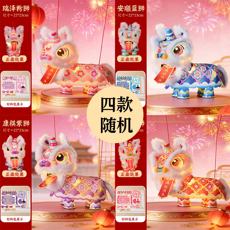 元旦马年醒狮灯笼手工diy儿童新年春节制作材料包摆摊发光玩具