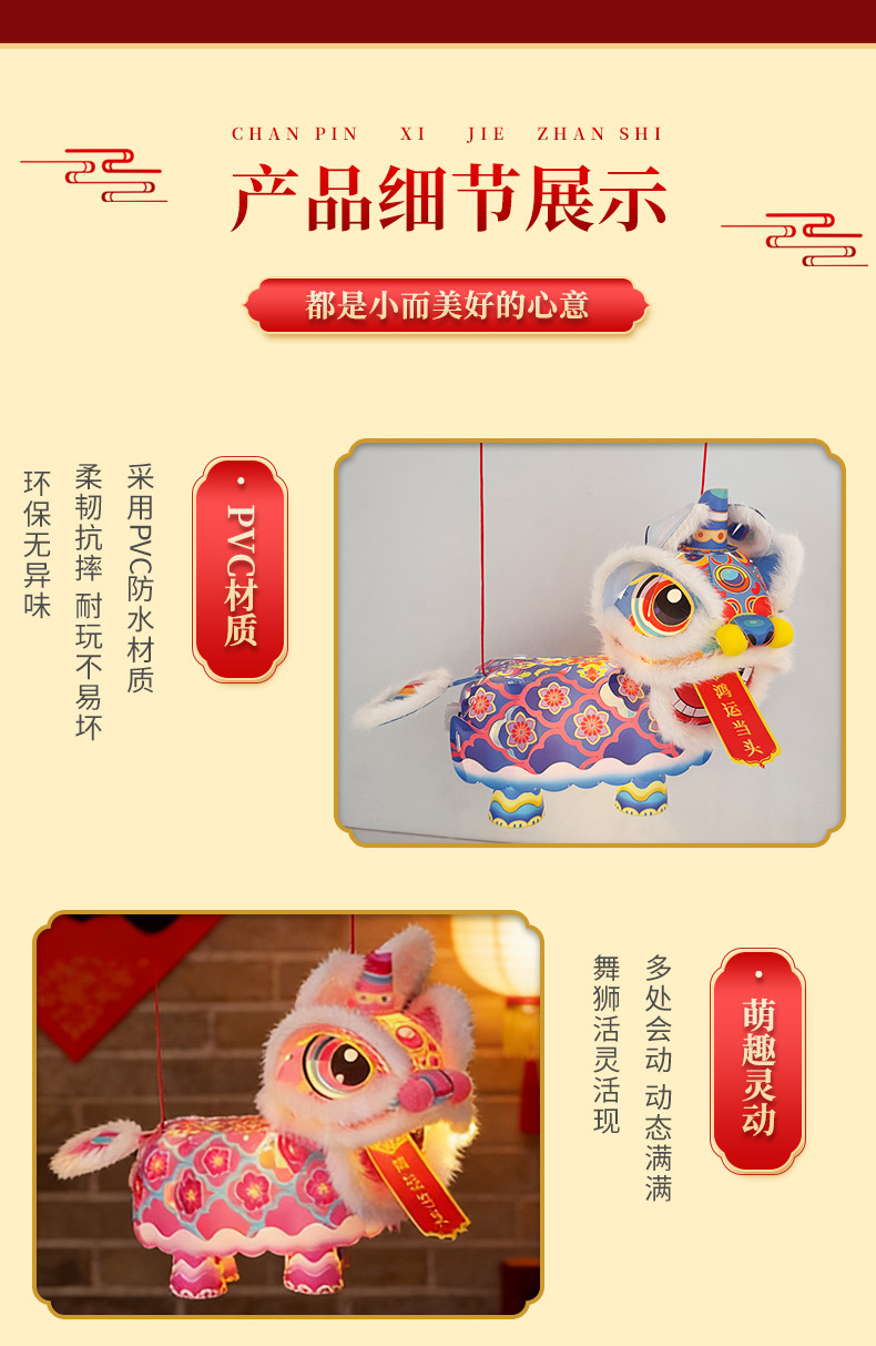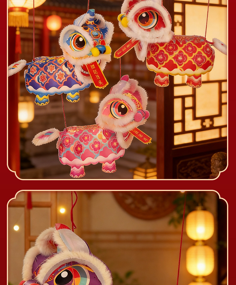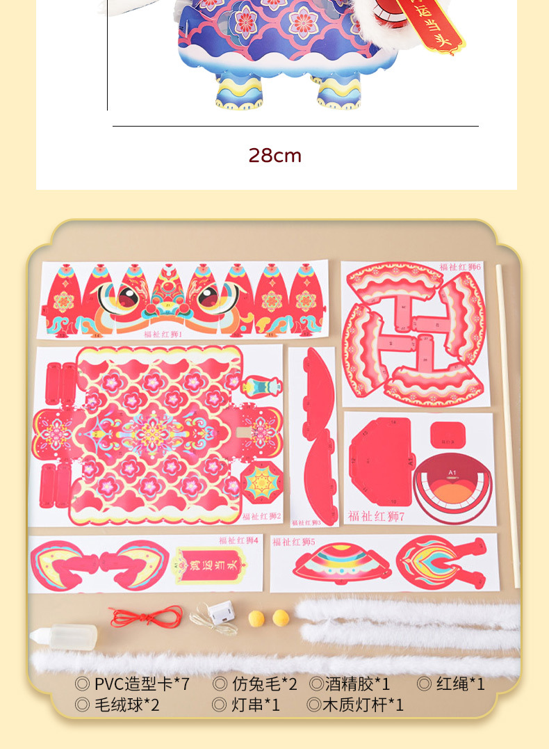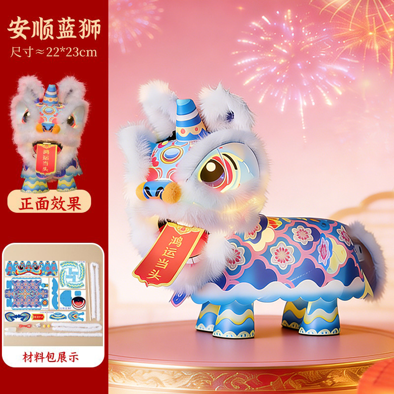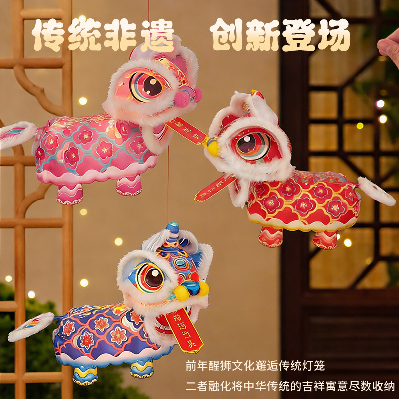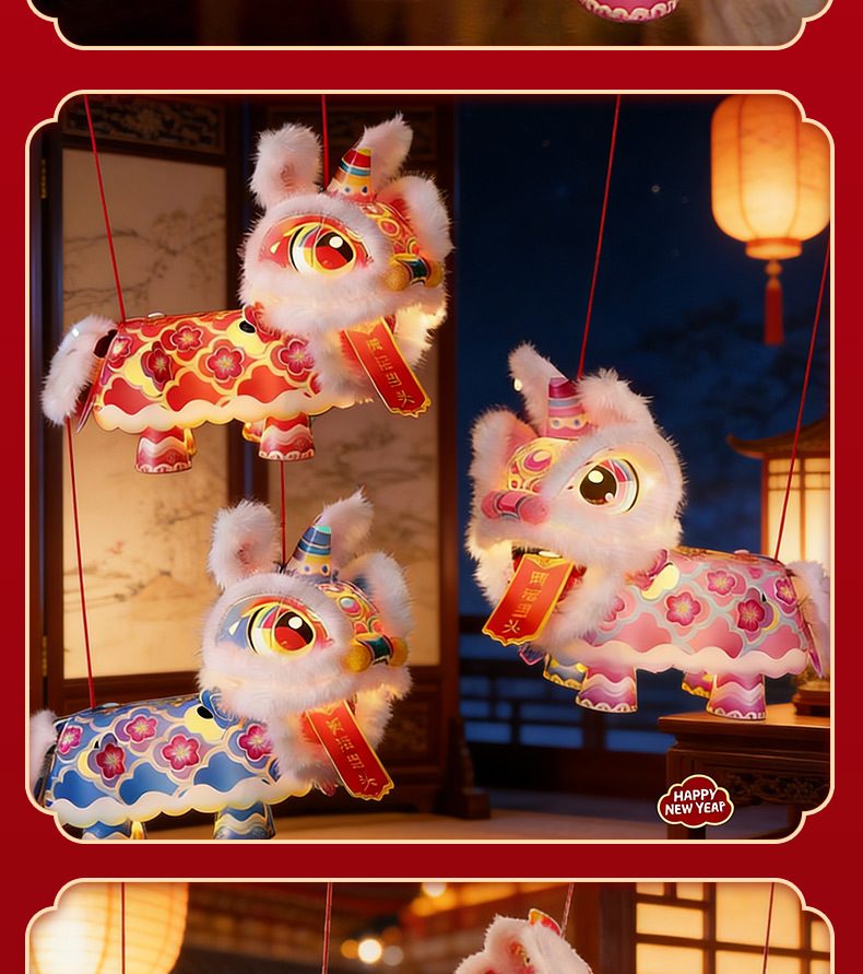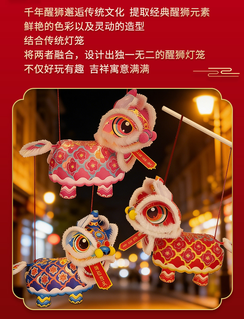 元旦马年醒狮灯笼手工diy儿童新年春节制作材料包摆摊发光玩具
