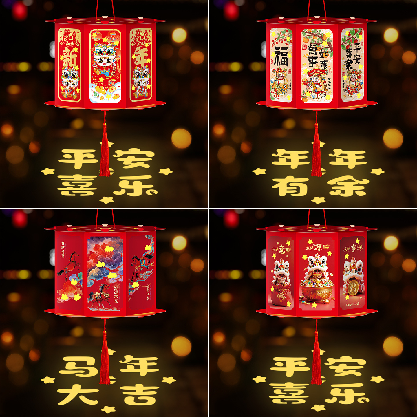 2026马年过新年投影灯笼春节元宵儿童手提diy 古风花灯摆摊小商品