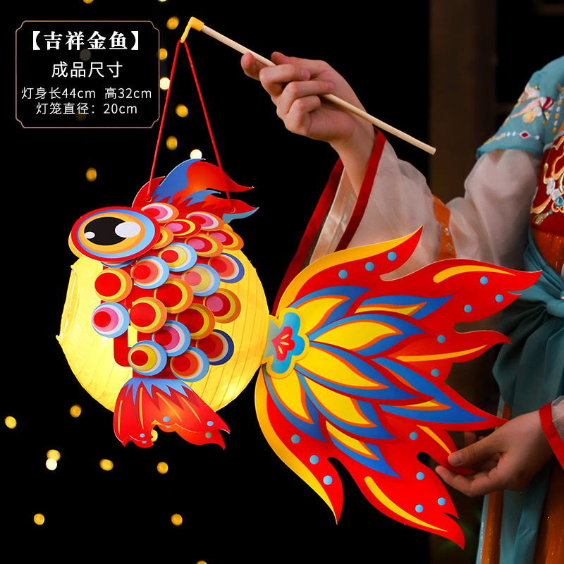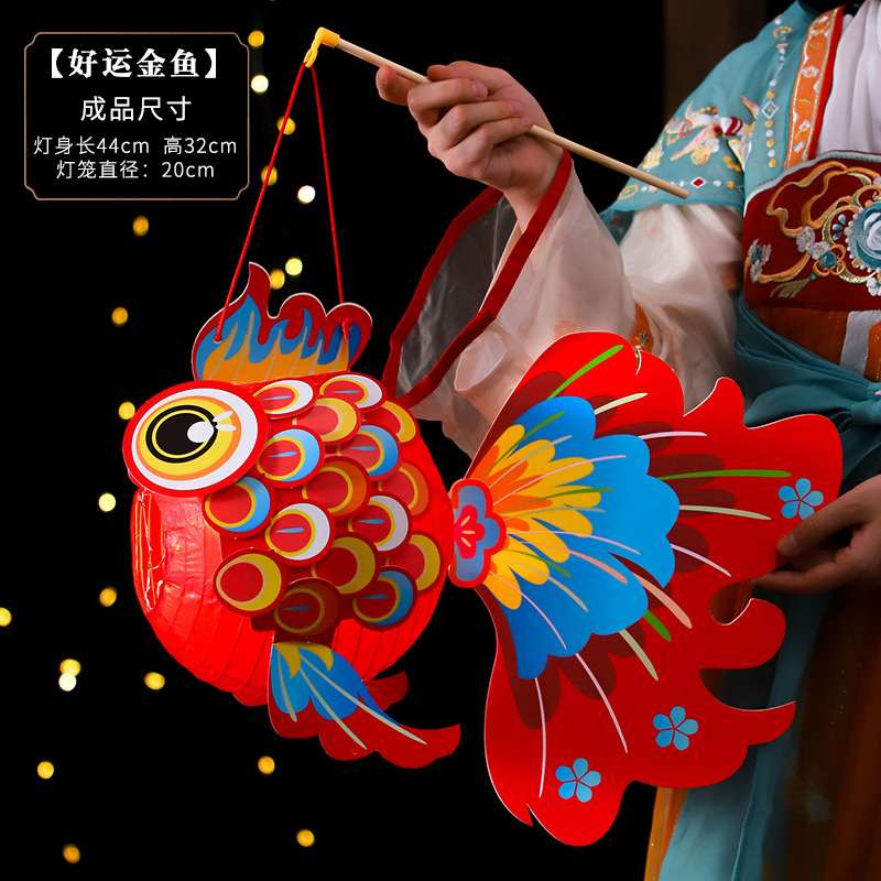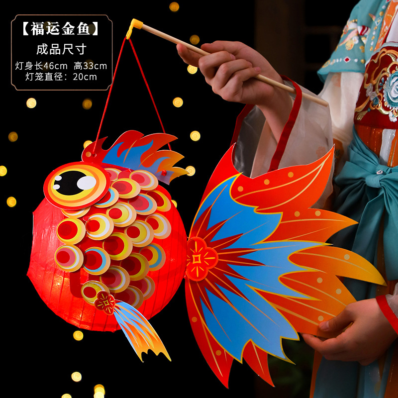 新年国潮灯笼儿童手提发光灯笼手工DIY材料包喜庆地摊摆摊花灯