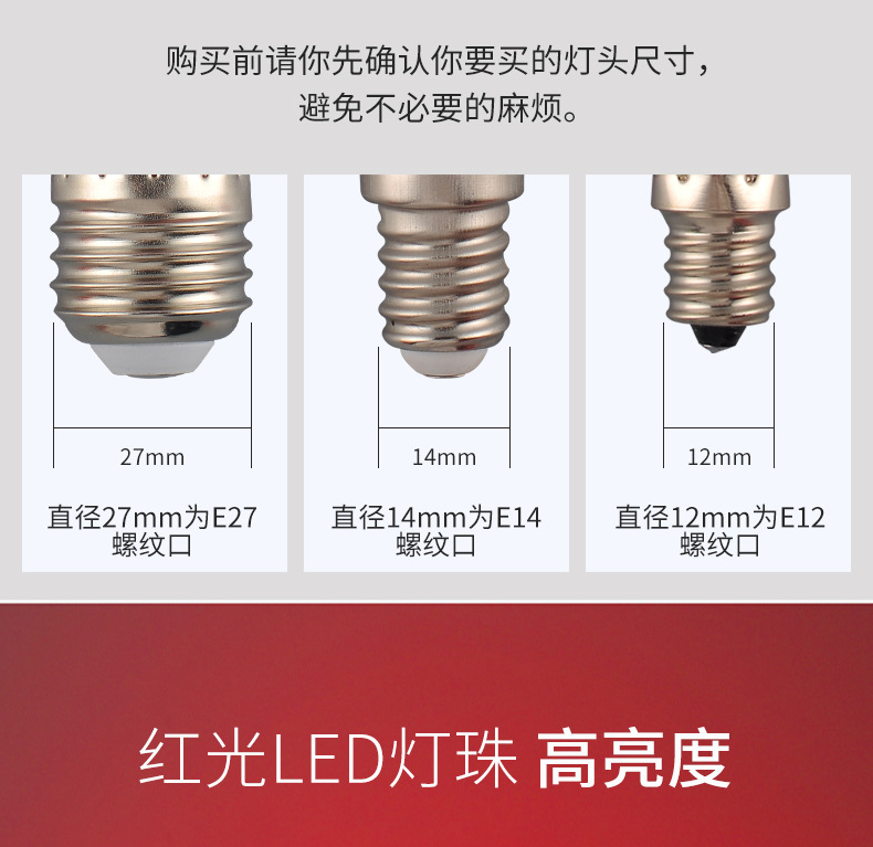 led红色灯泡灯笼e27螺口新年节庆春节日家用灯笼光源神台佛台红光