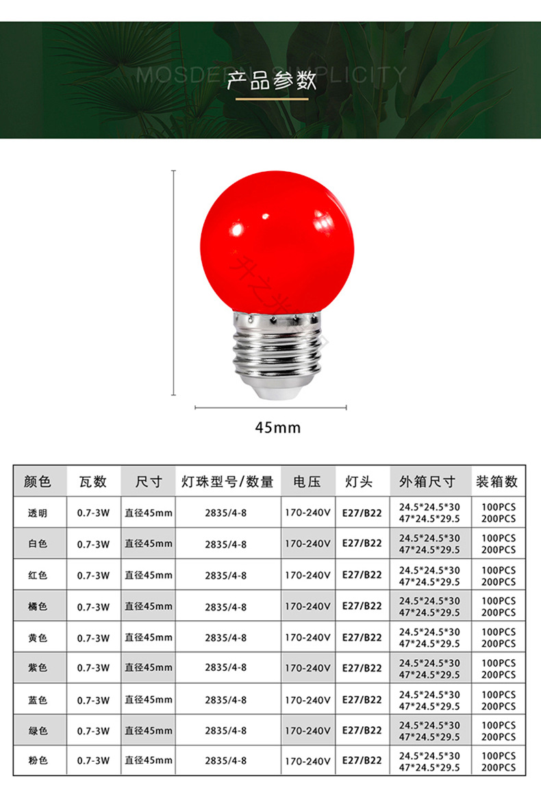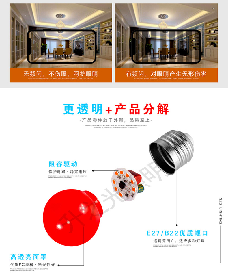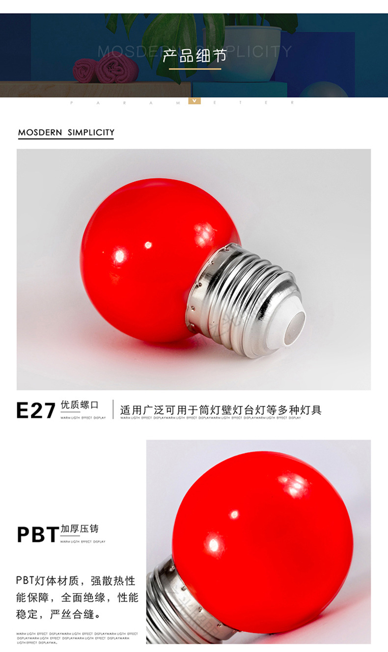 LED彩色球泡g45户外七彩跑马灯泡圣诞装饰E27/B22小彩泡红色灯笼