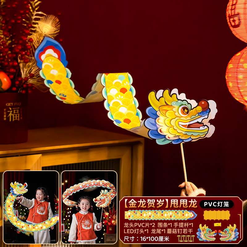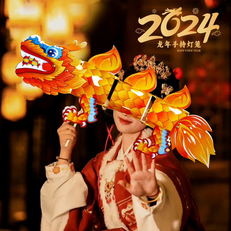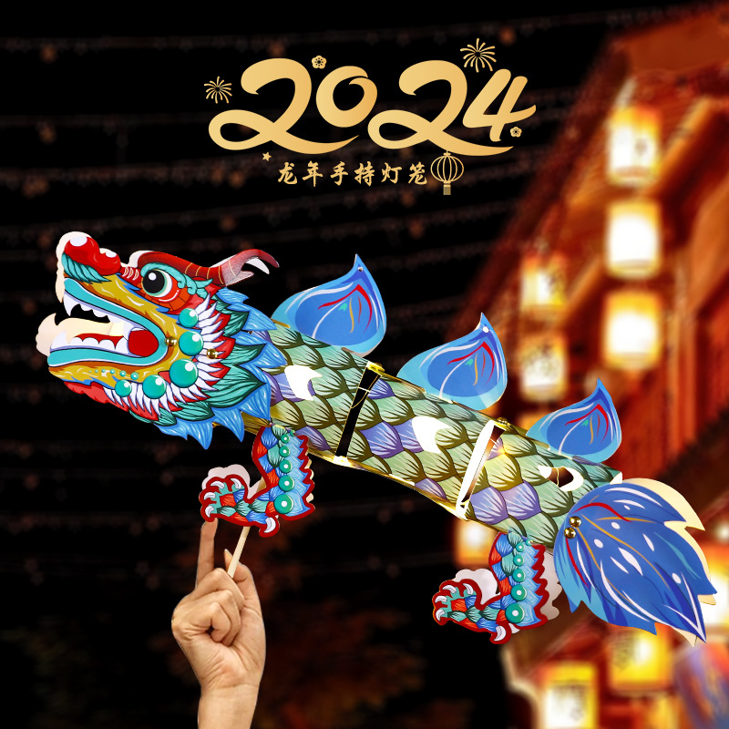DIY发光手提灯笼 龙的传人创意国潮手工材料包摆摊飞天龙甩甩龙灯