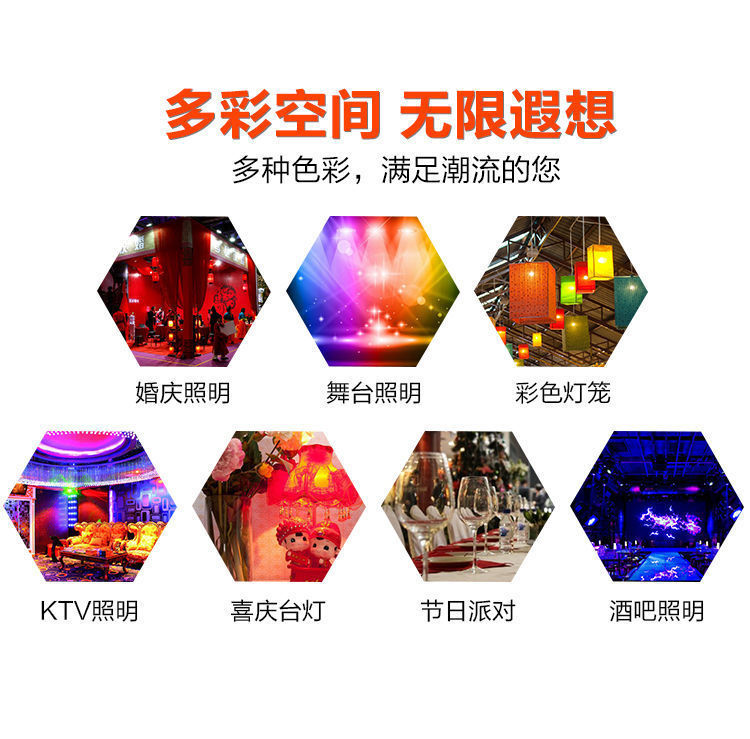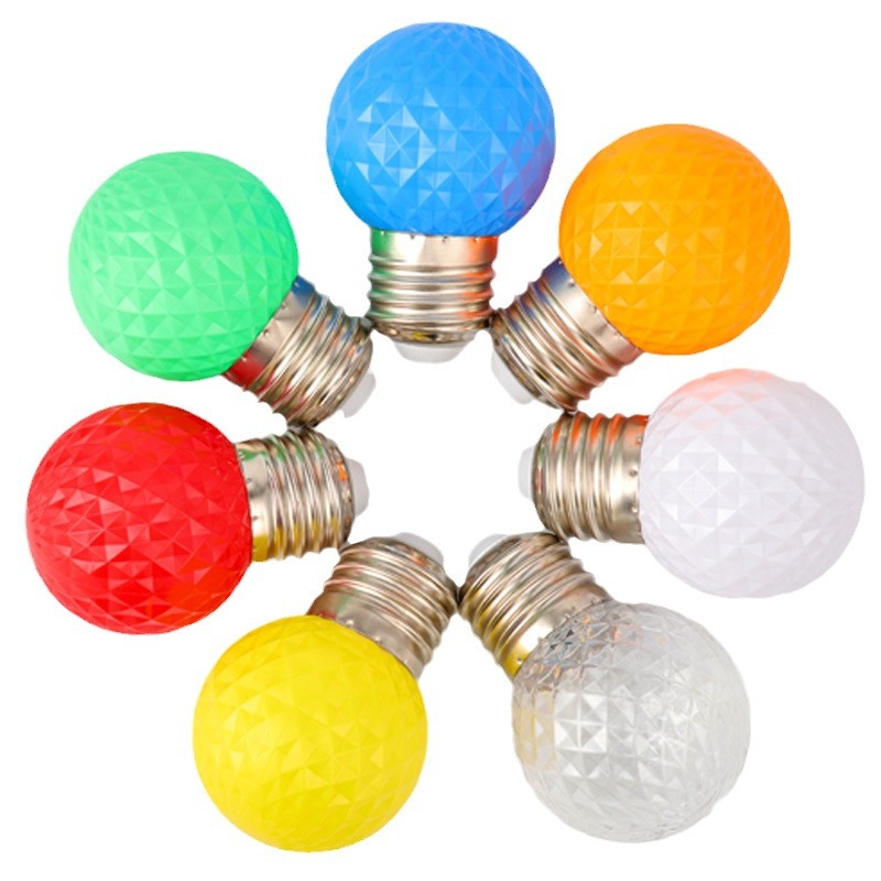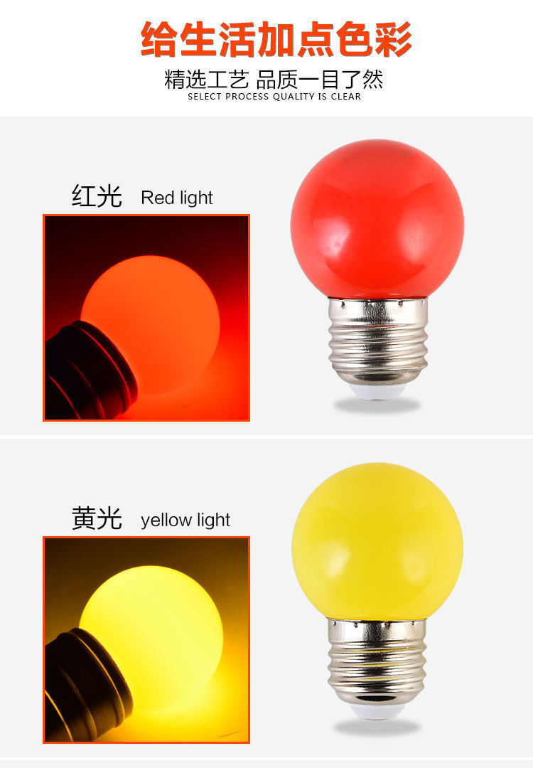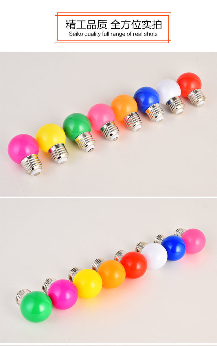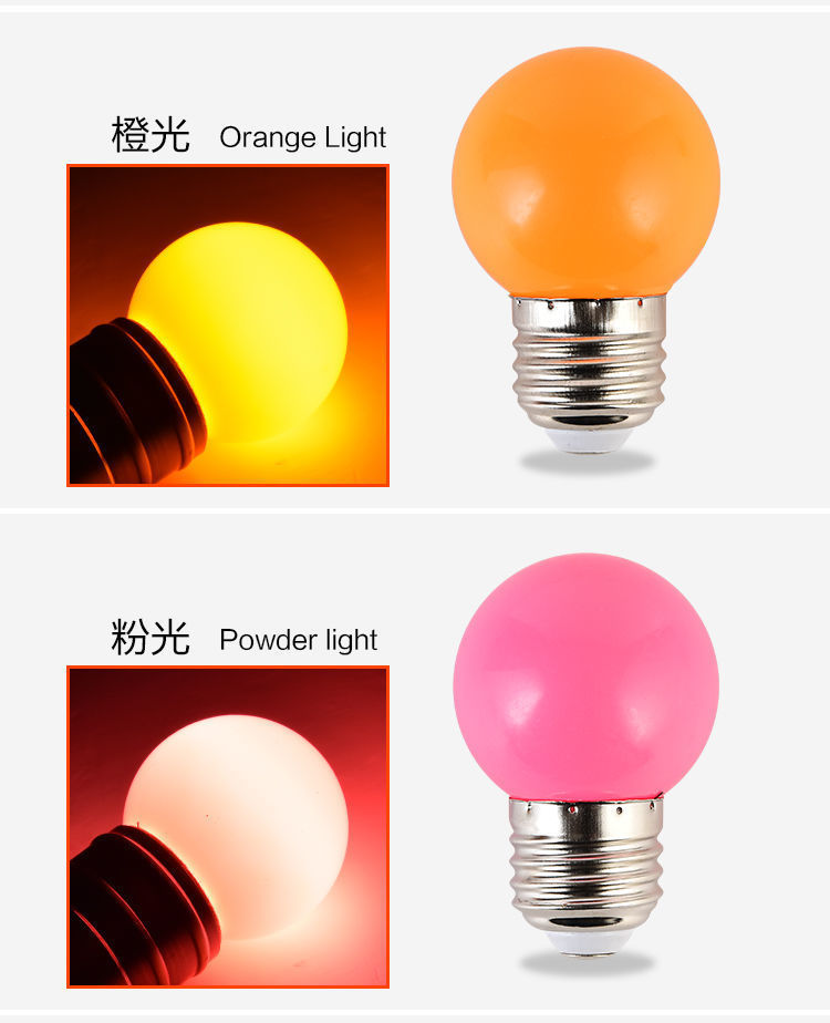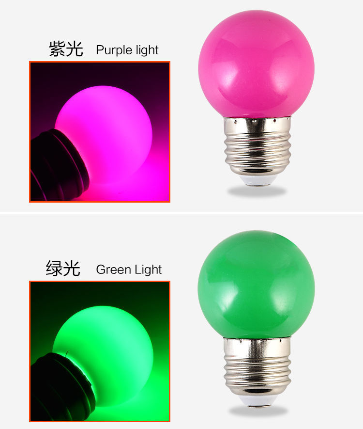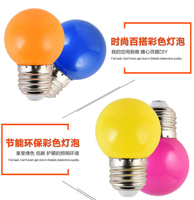 LED彩色灯泡E27螺口红蓝绿黄粉紫色七彩节能迷你台灯卧室灯笼家用