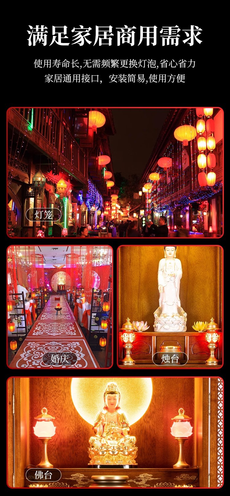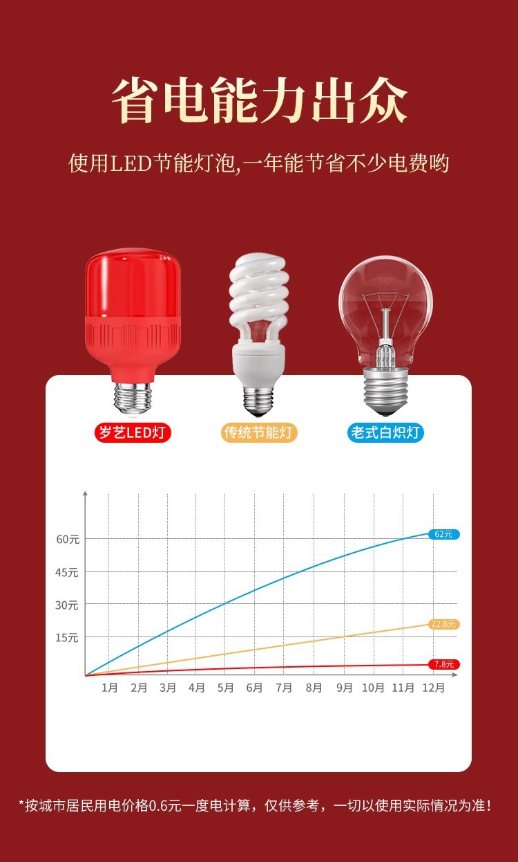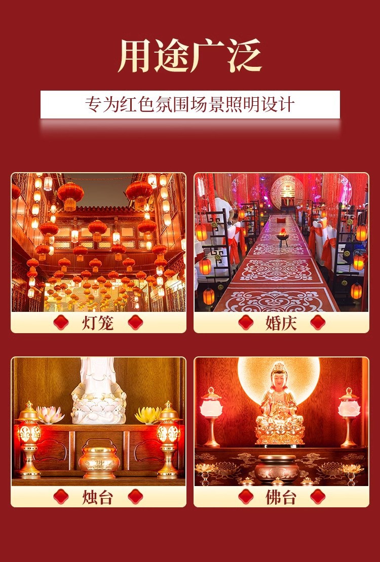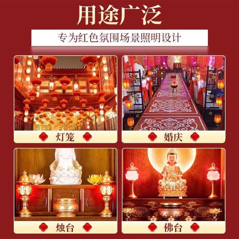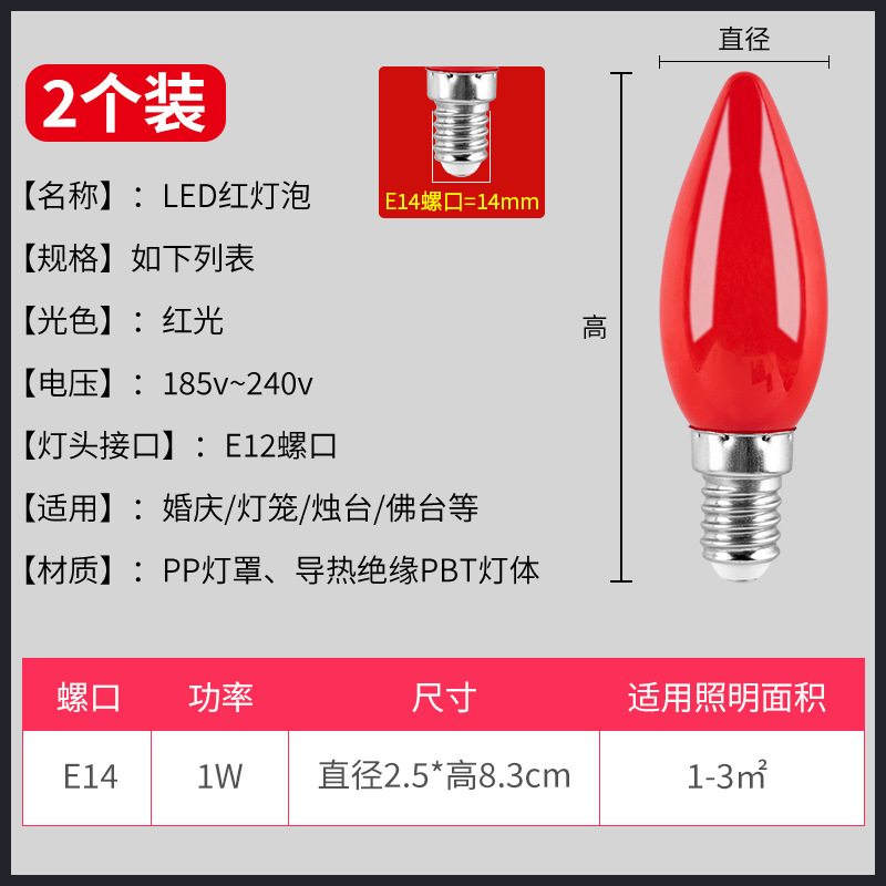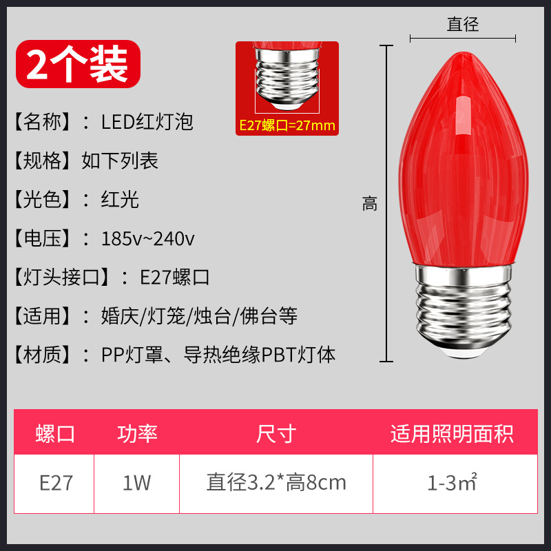 LED红色灯泡e27螺口灯笼灯芯财神爷神台蜡烛红光节能灯红色尖泡灯