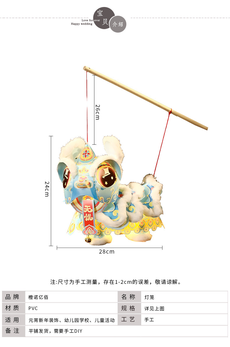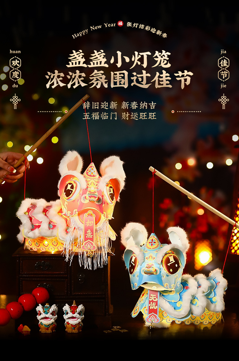 2026马年元宵醒狮灯笼儿童手提diy材料包花灯新年过年摆摊小商品