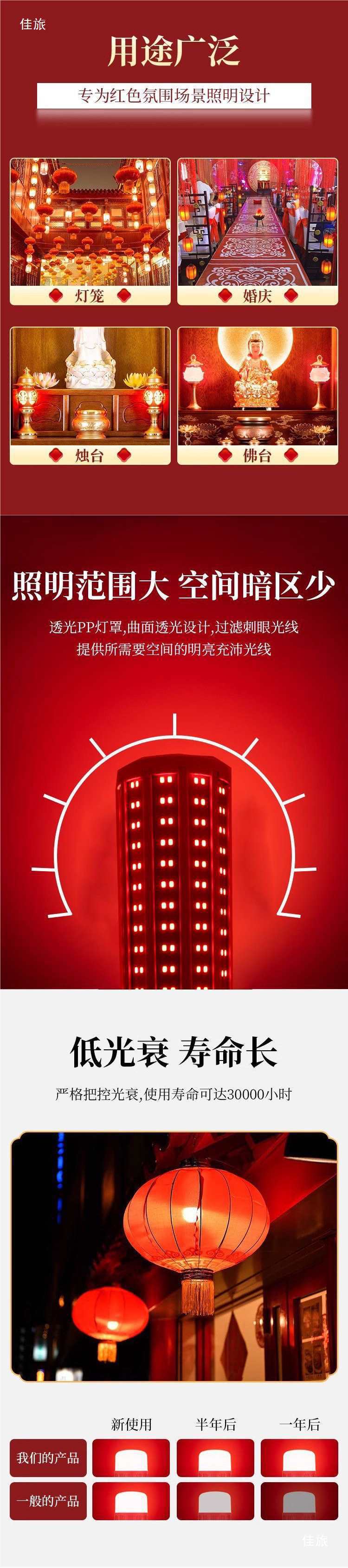 超亮春节灯笼红色LED灯泡E27螺口红光玉米灯阳台灯红光灯