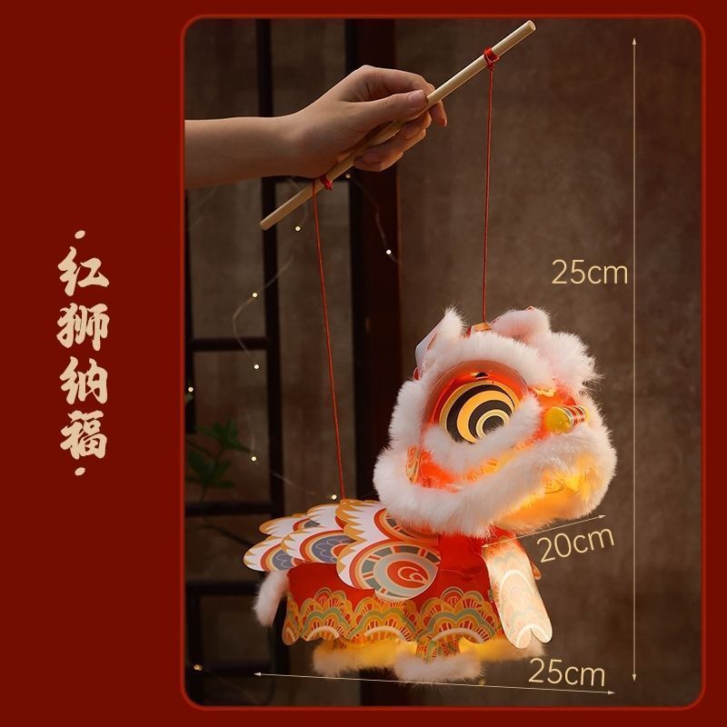 新春马年瑞宝醒狮灯笼手工DIY材料幼儿园古风花灯舞狮手提摆摊
