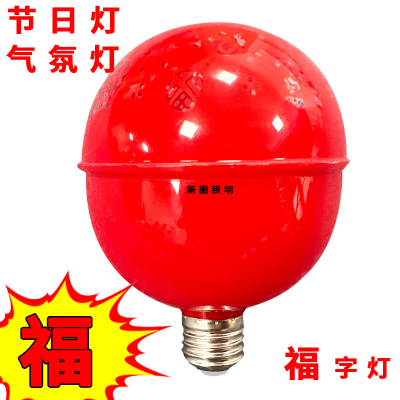 福字灯 红灯泡 红色圆形灯笼灯泡 节日喜庆灯泡装饰 气氛氛围球泡