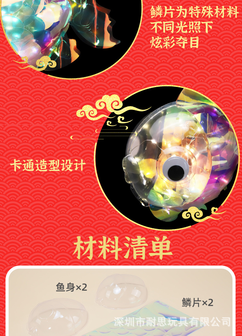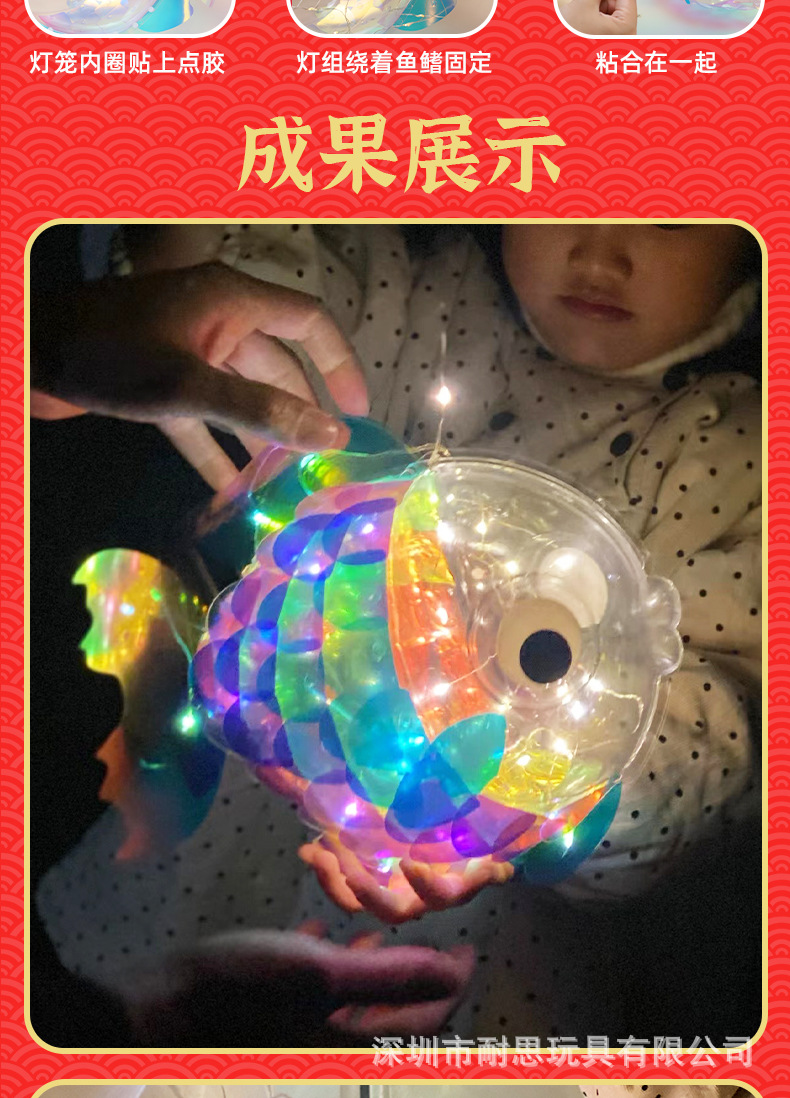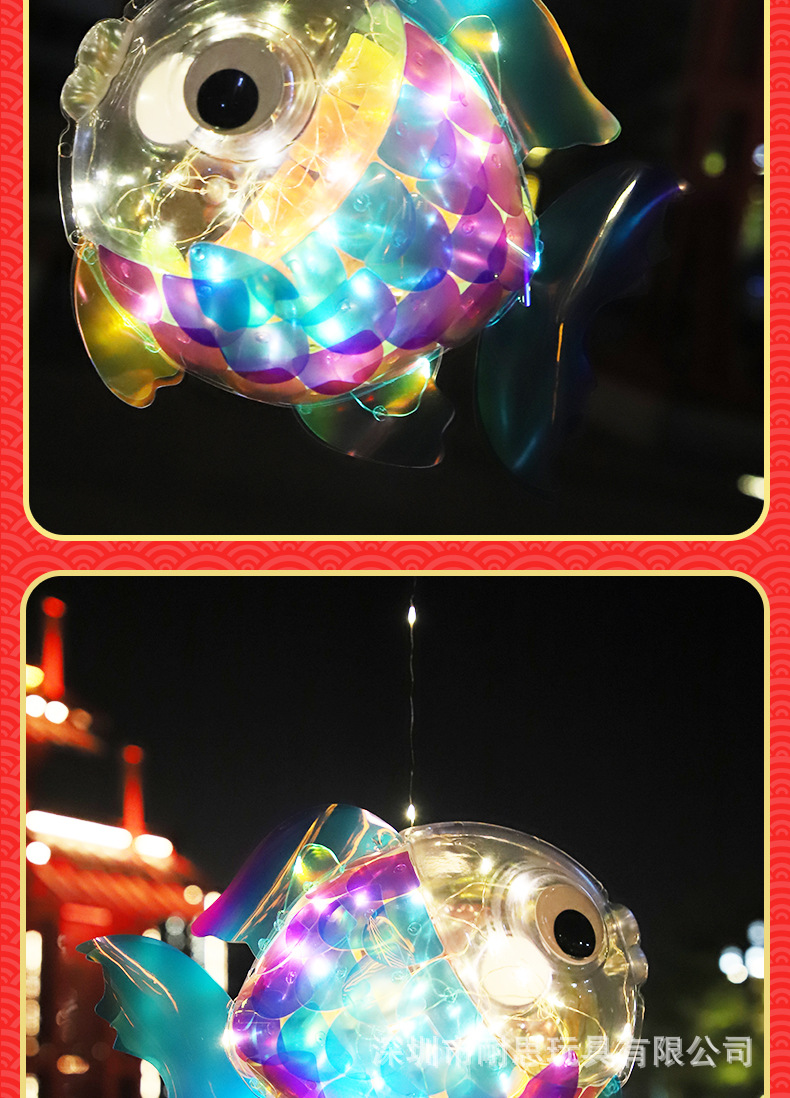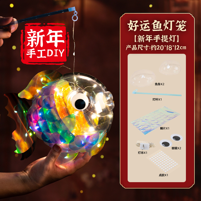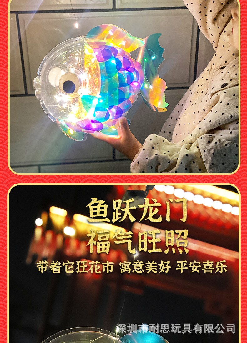 儿童新款手提灯笼幻彩镭射胖头鱼DIY手工多变LED花灯玩具夜市摆摊