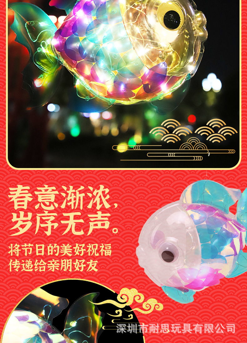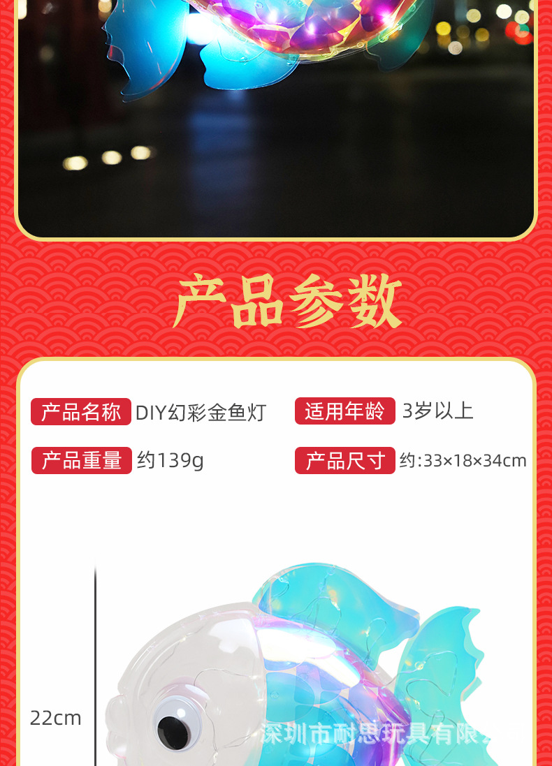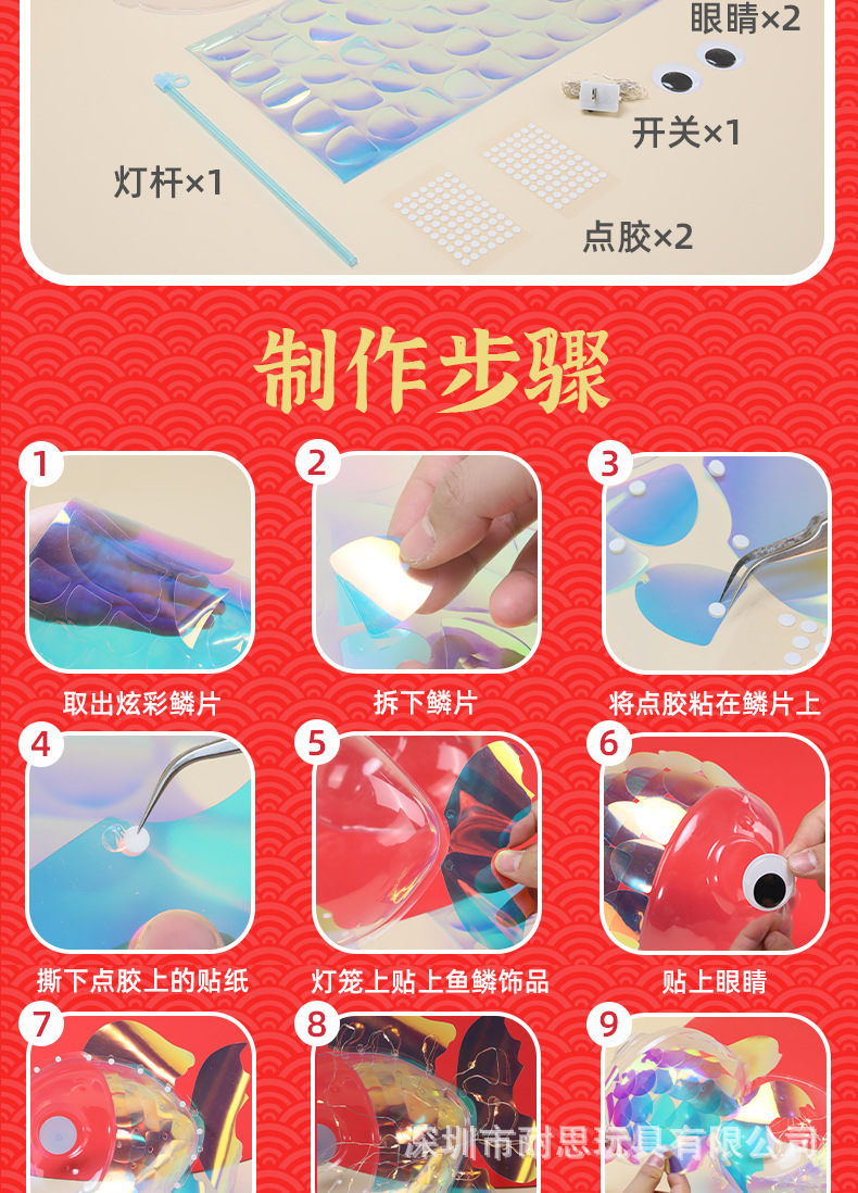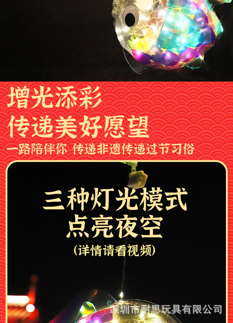 儿童新款手提灯笼幻彩镭射胖头鱼DIY手工多变LED花灯玩具夜市摆摊