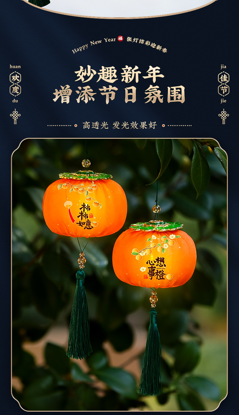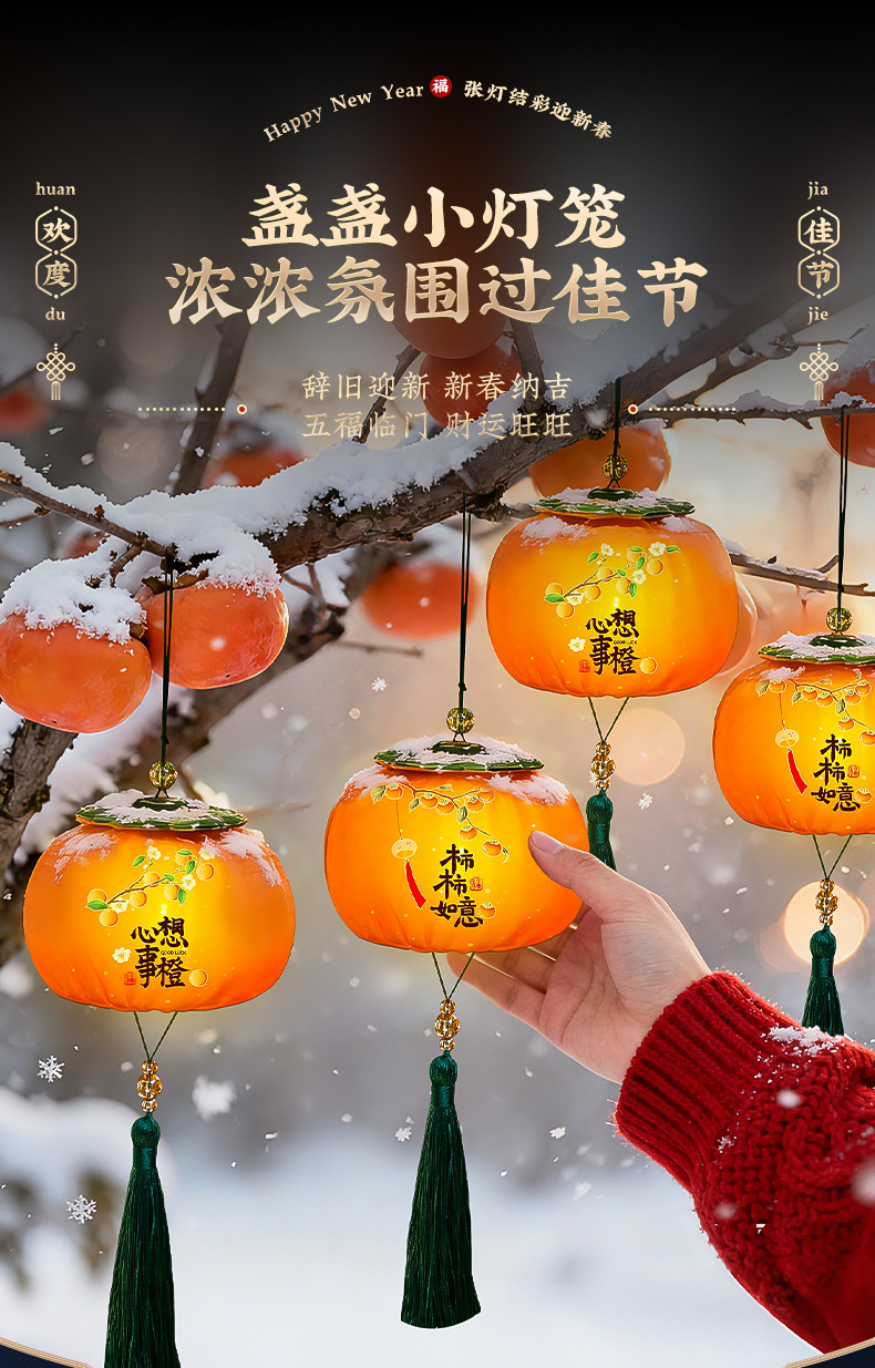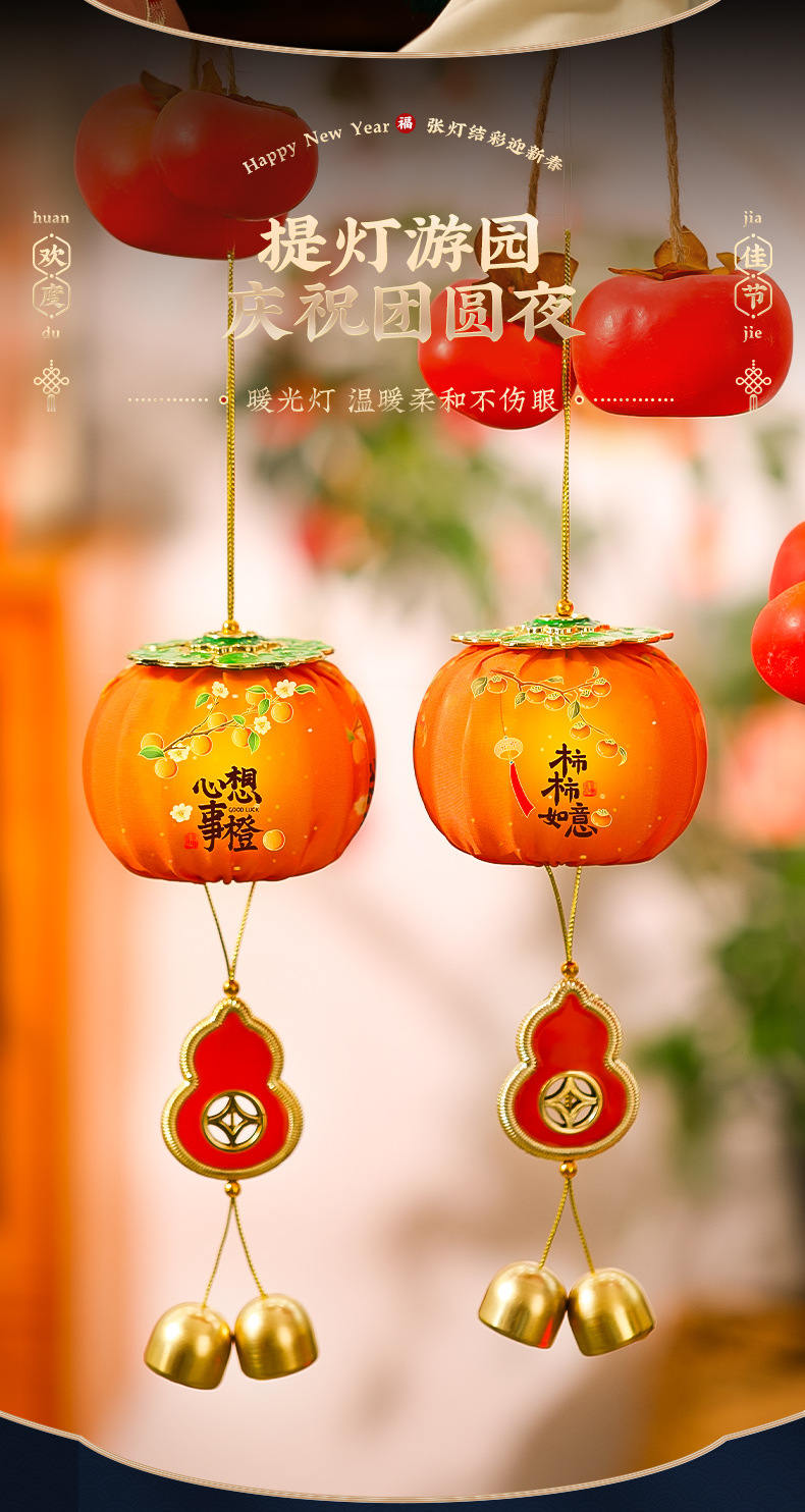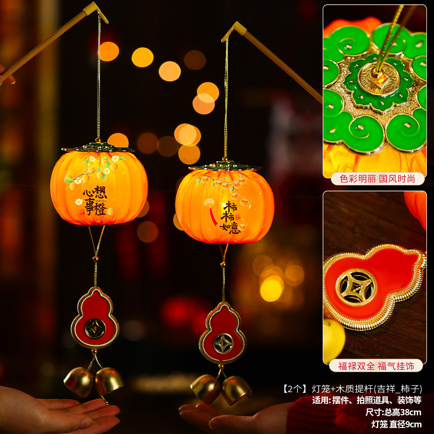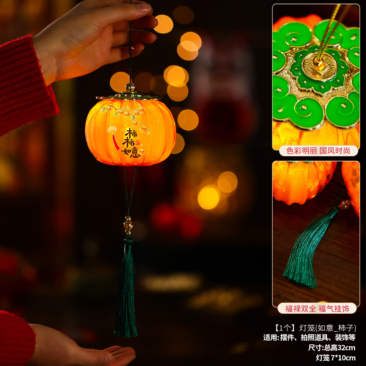 新年灯笼2026新款马年柿柿如意发光小花灯挂饰春节过年摆摊小商品