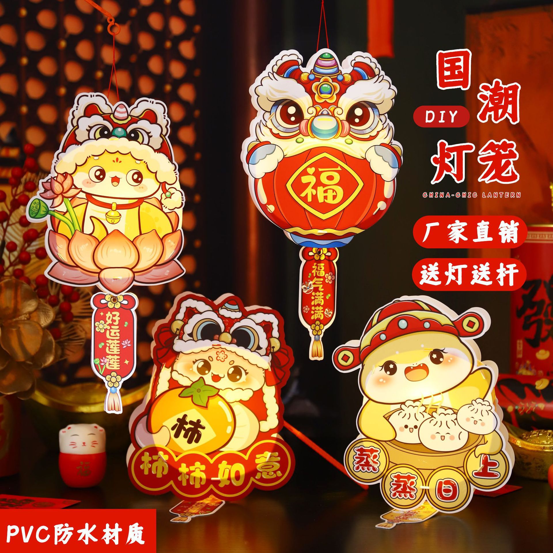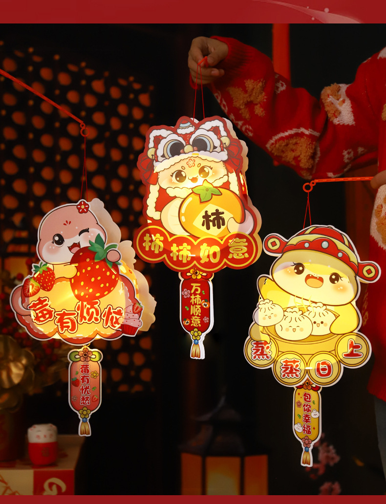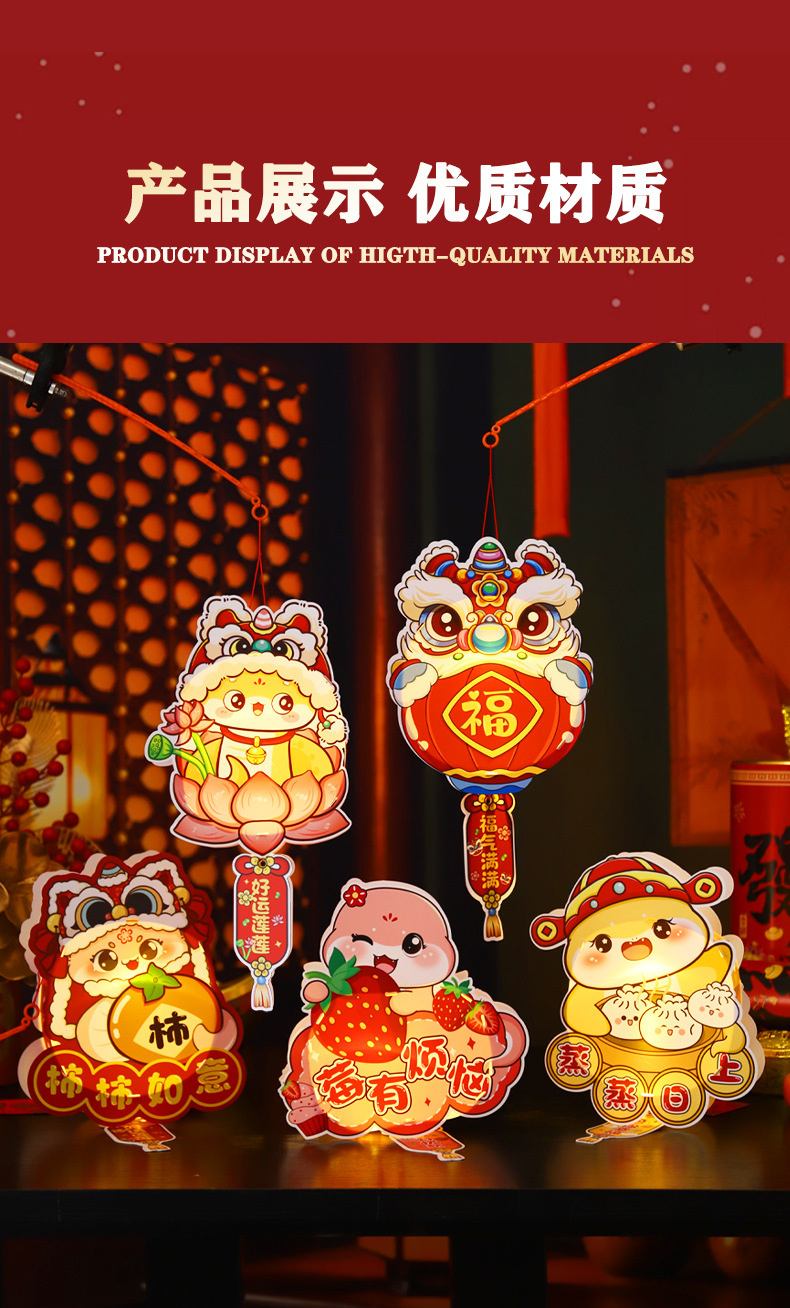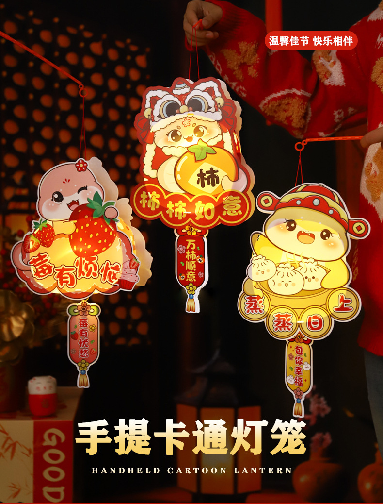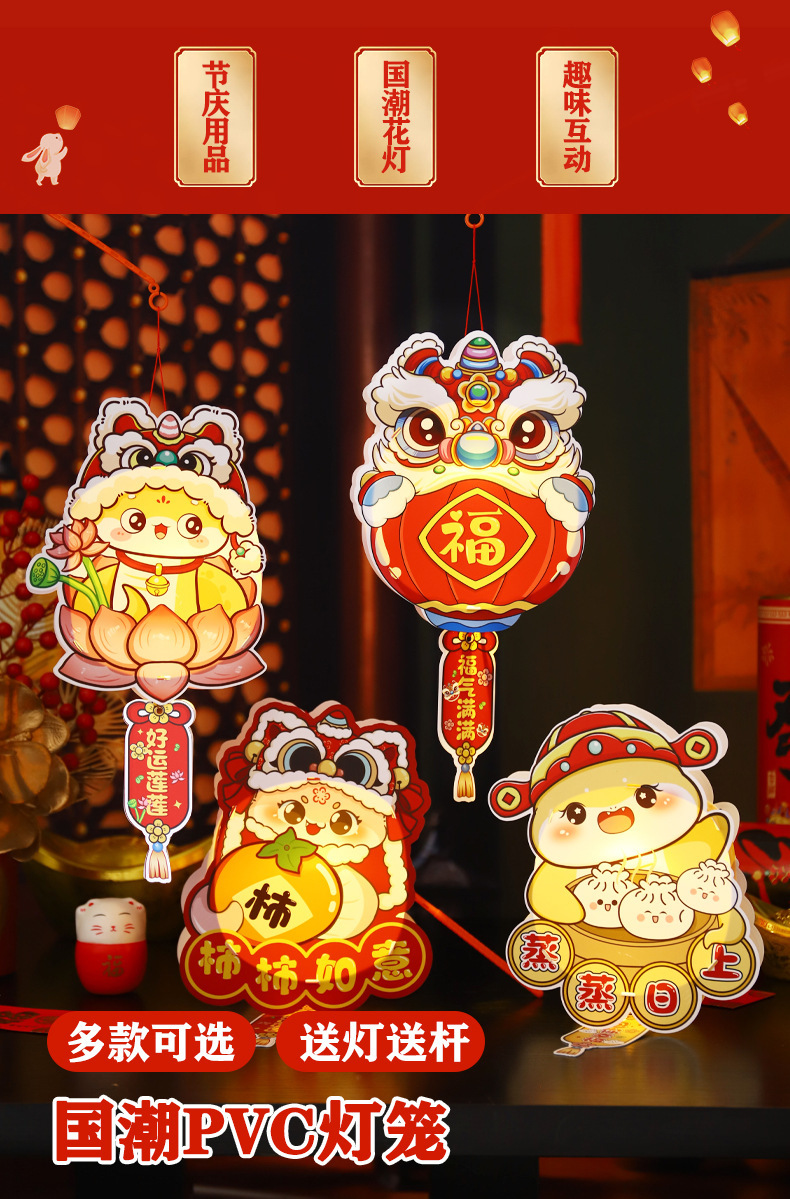 2026新年儿童手提diy灯笼PVC卡通发光元宵摆摊宫灯走马灯材料包