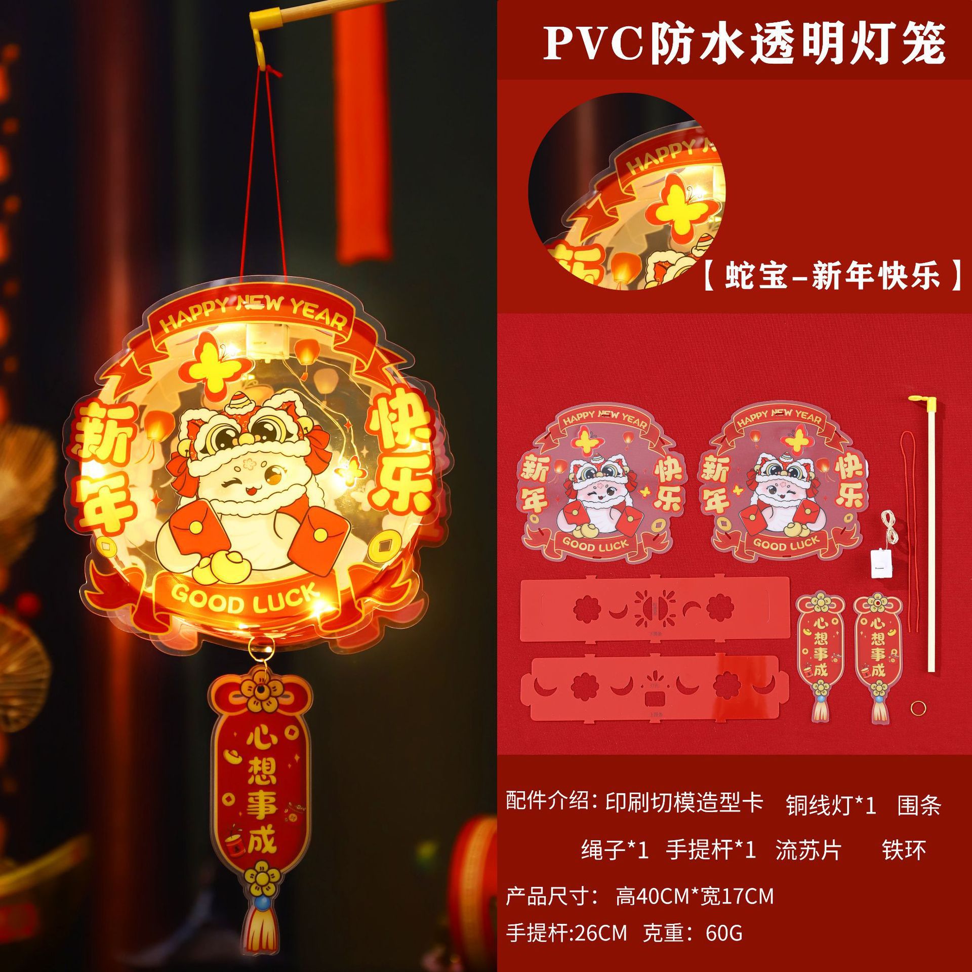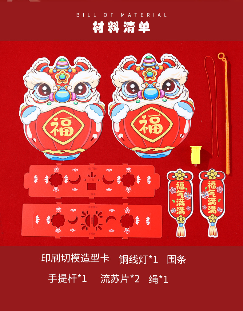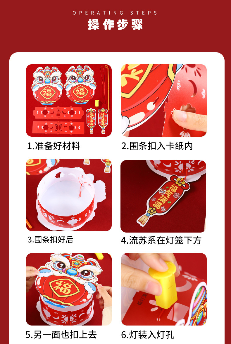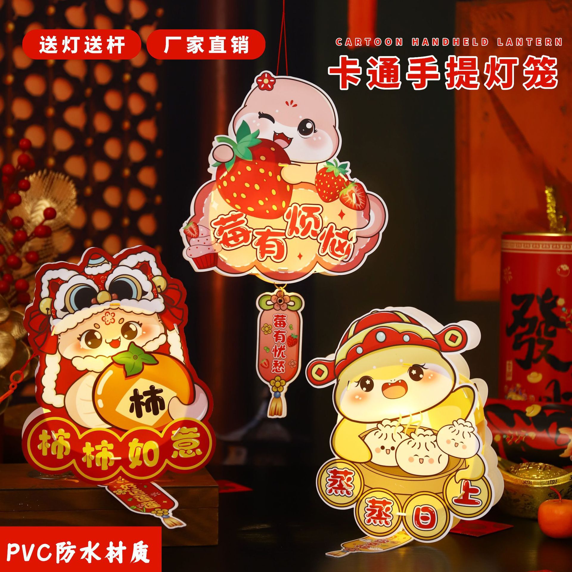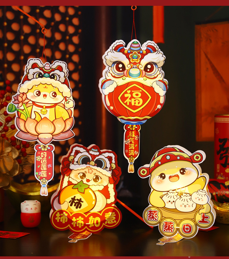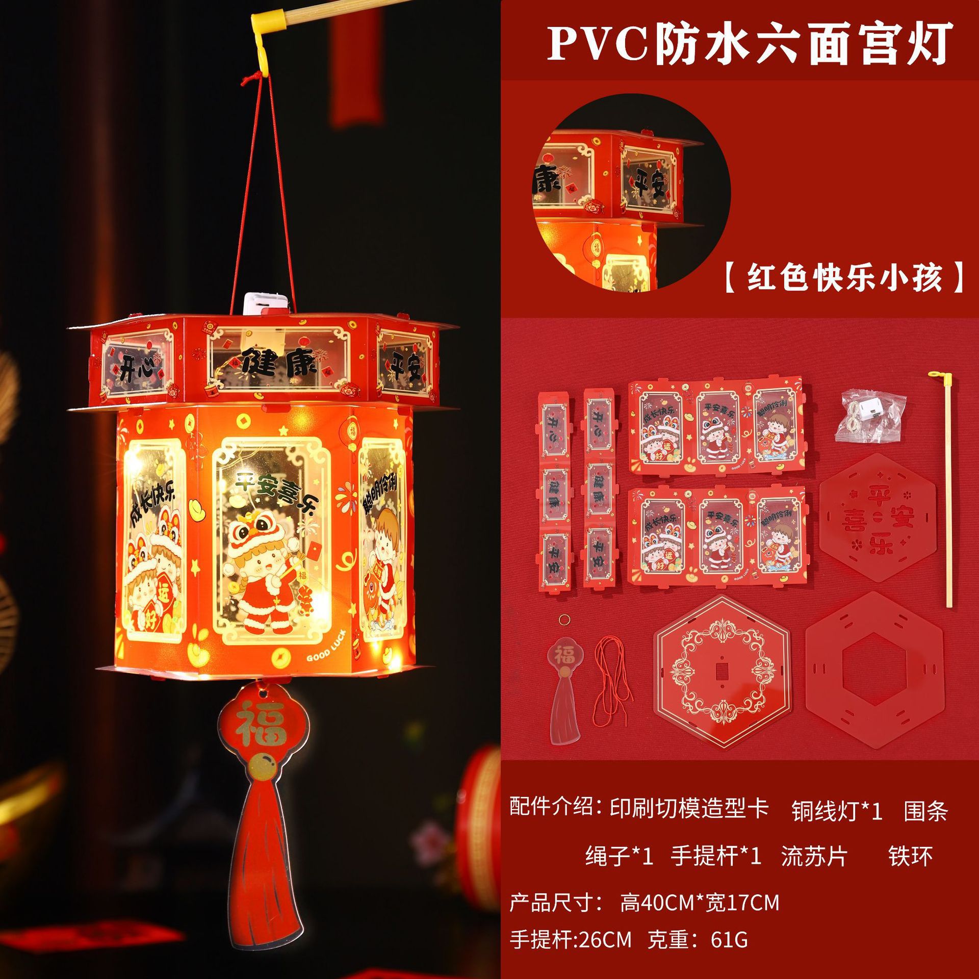 2026新年儿童手提diy灯笼PVC卡通发光元宵摆摊宫灯走马灯材料包