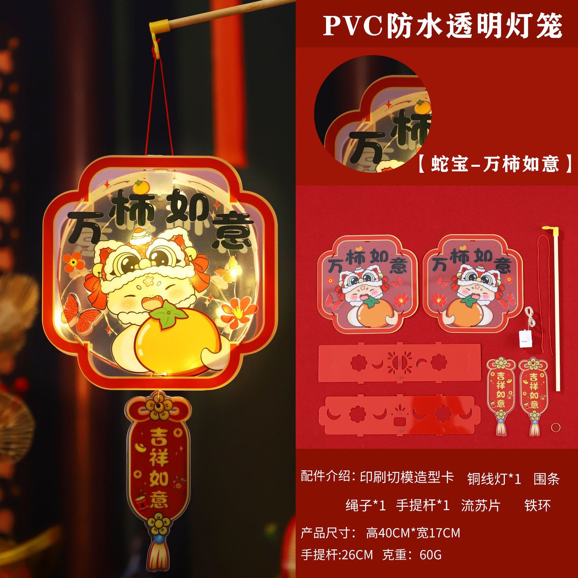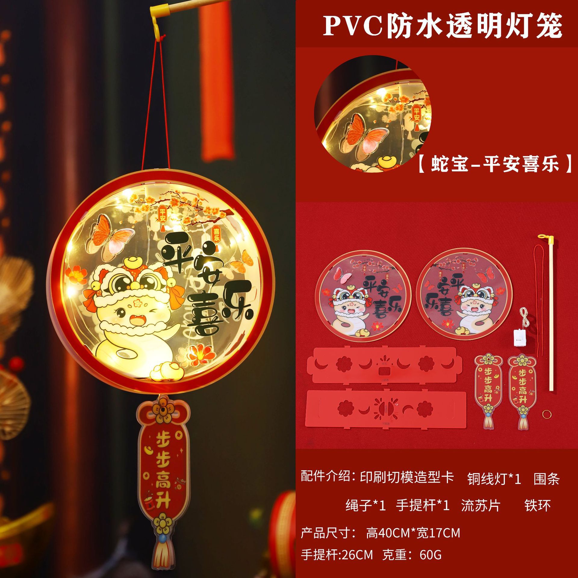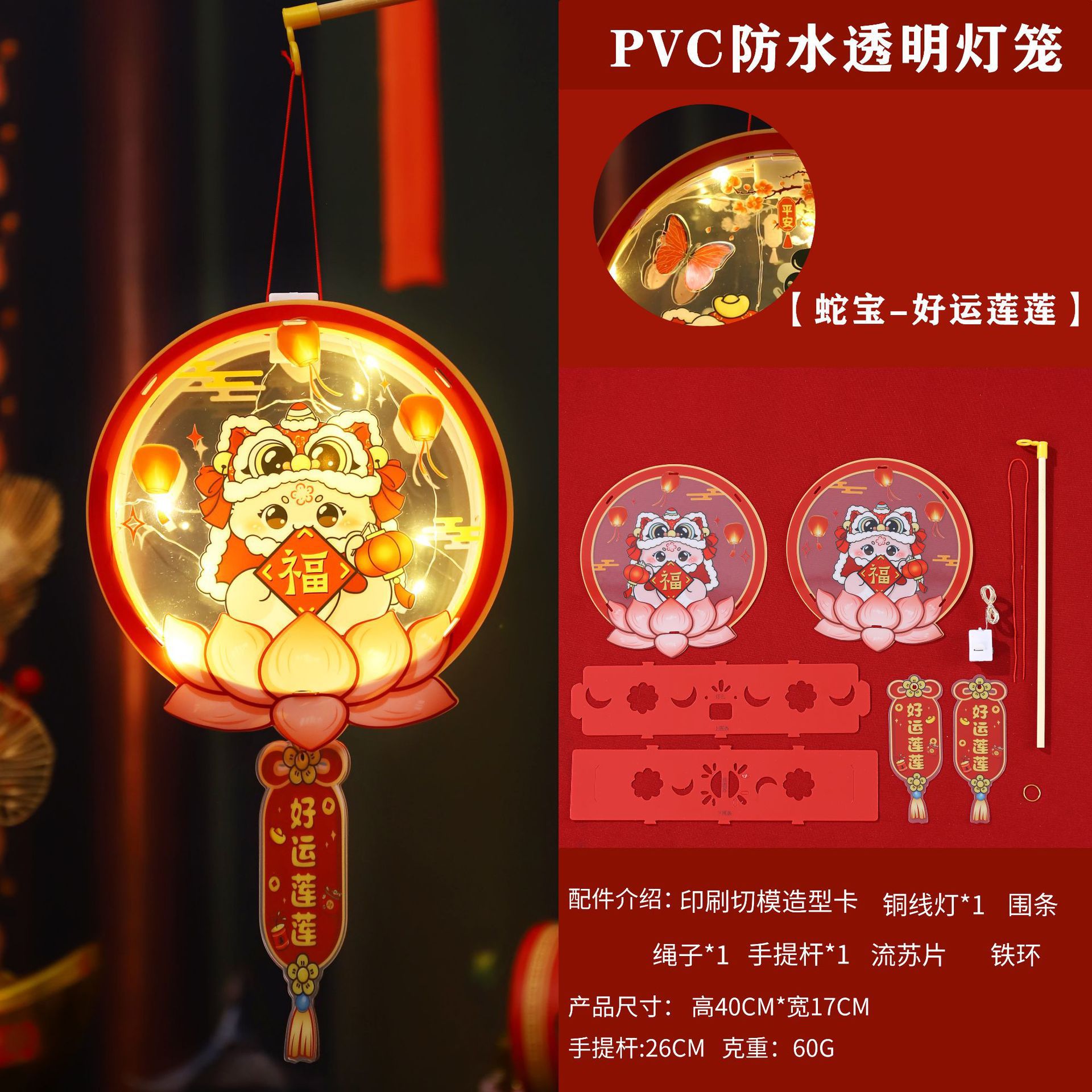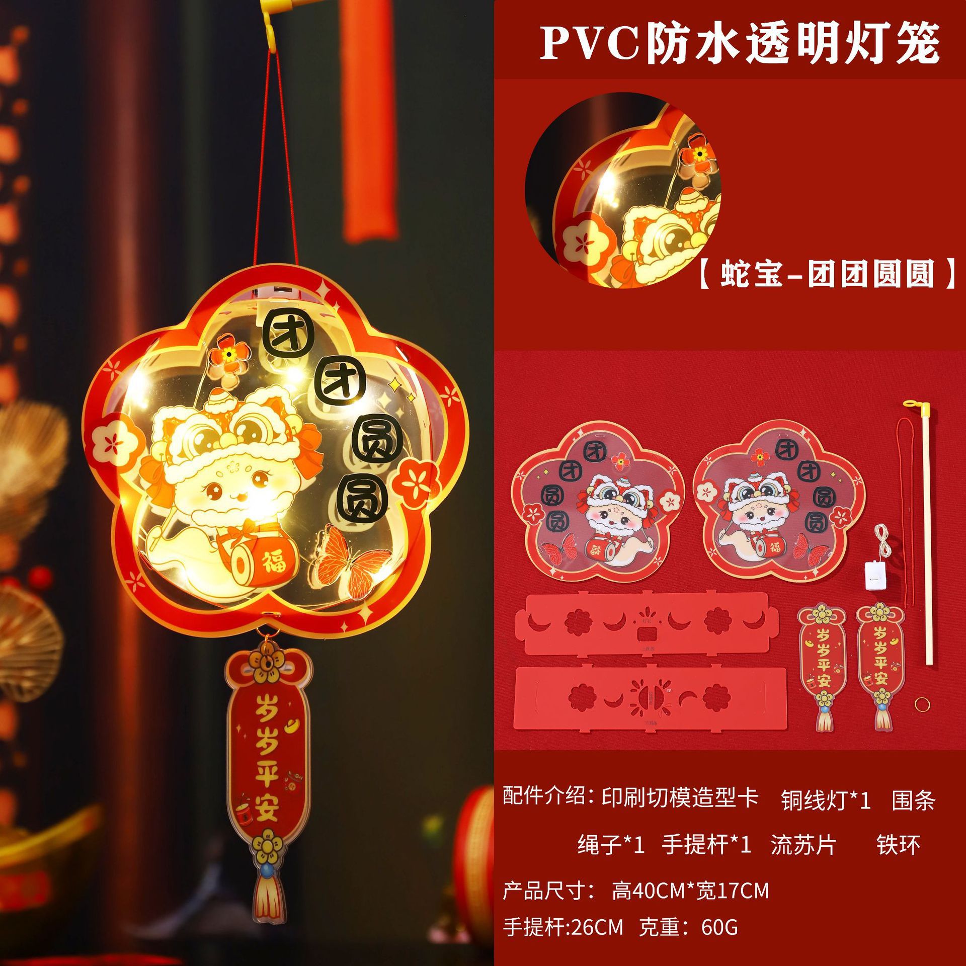 2026新年儿童手提diy灯笼PVC卡通发光元宵摆摊宫灯走马灯材料包