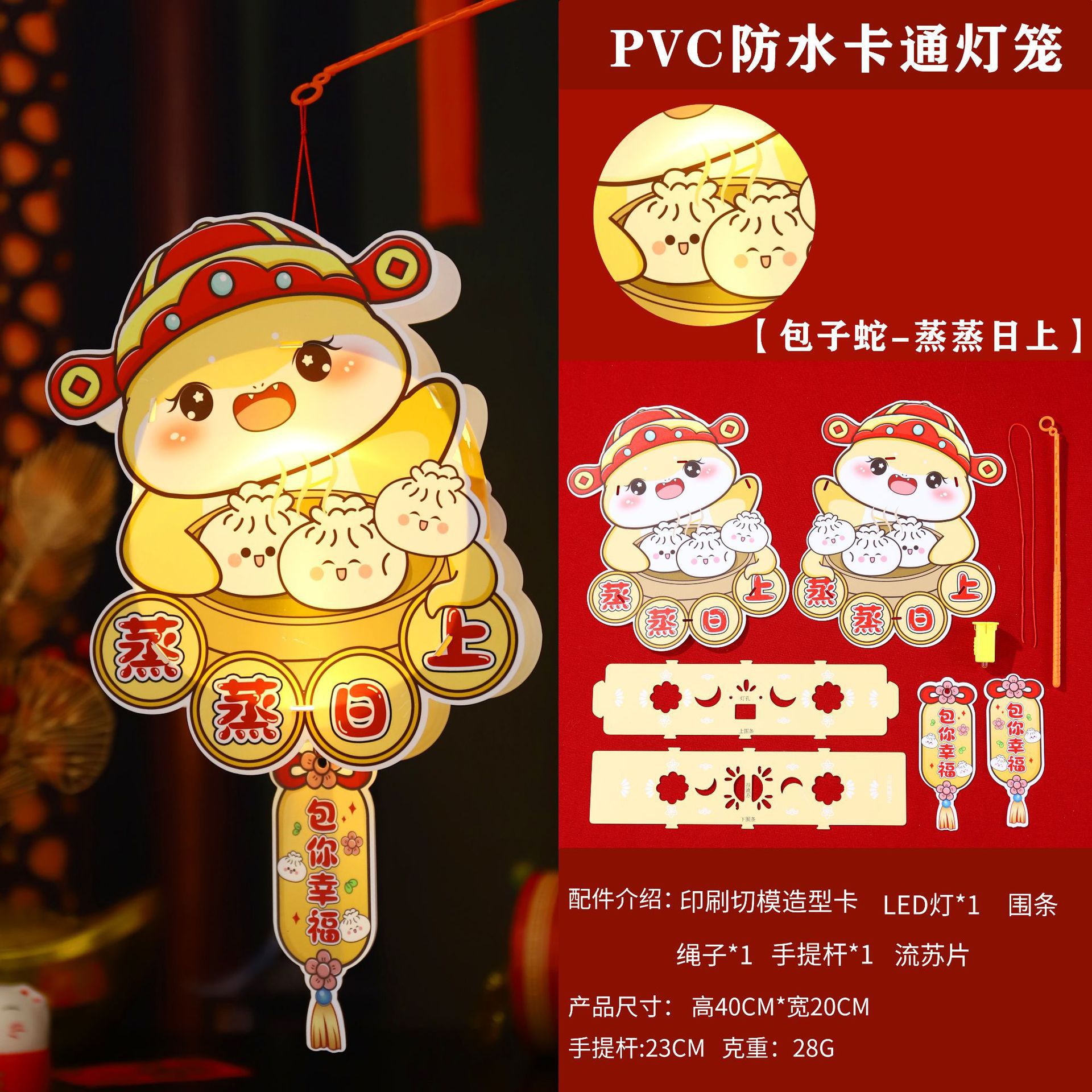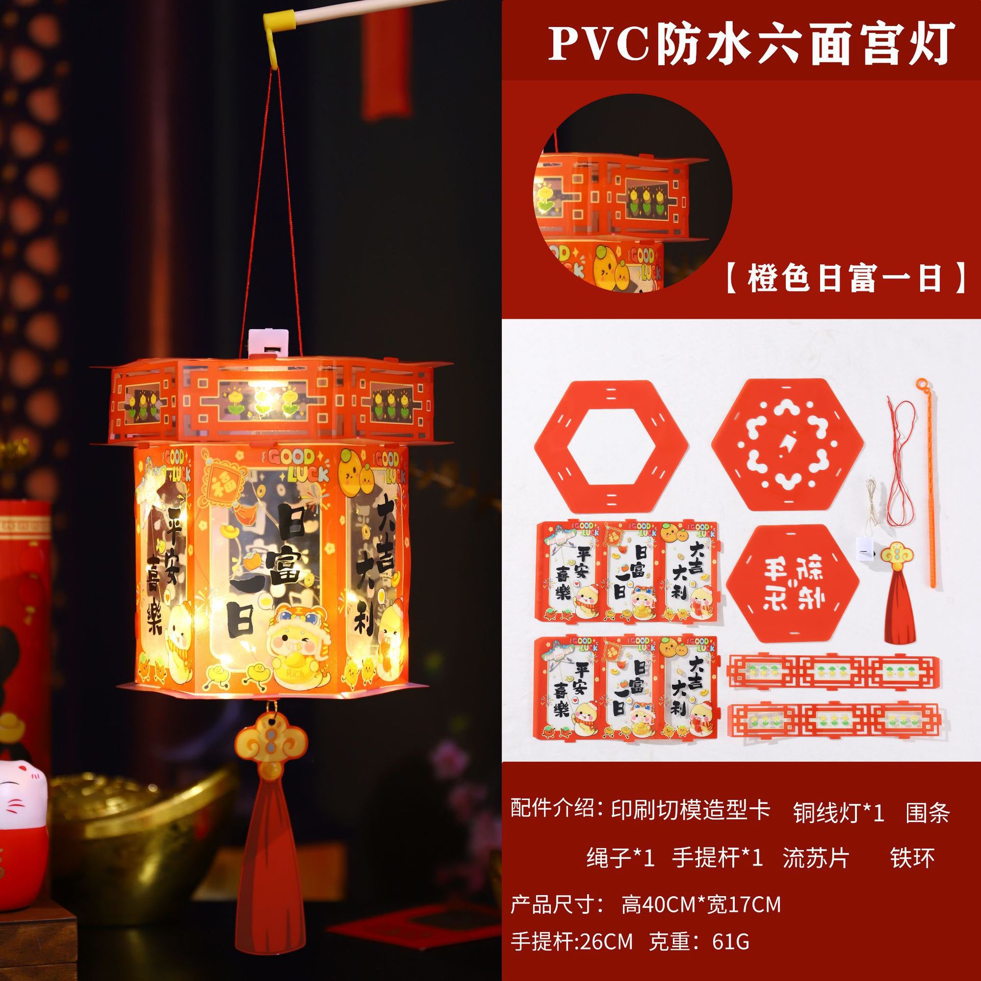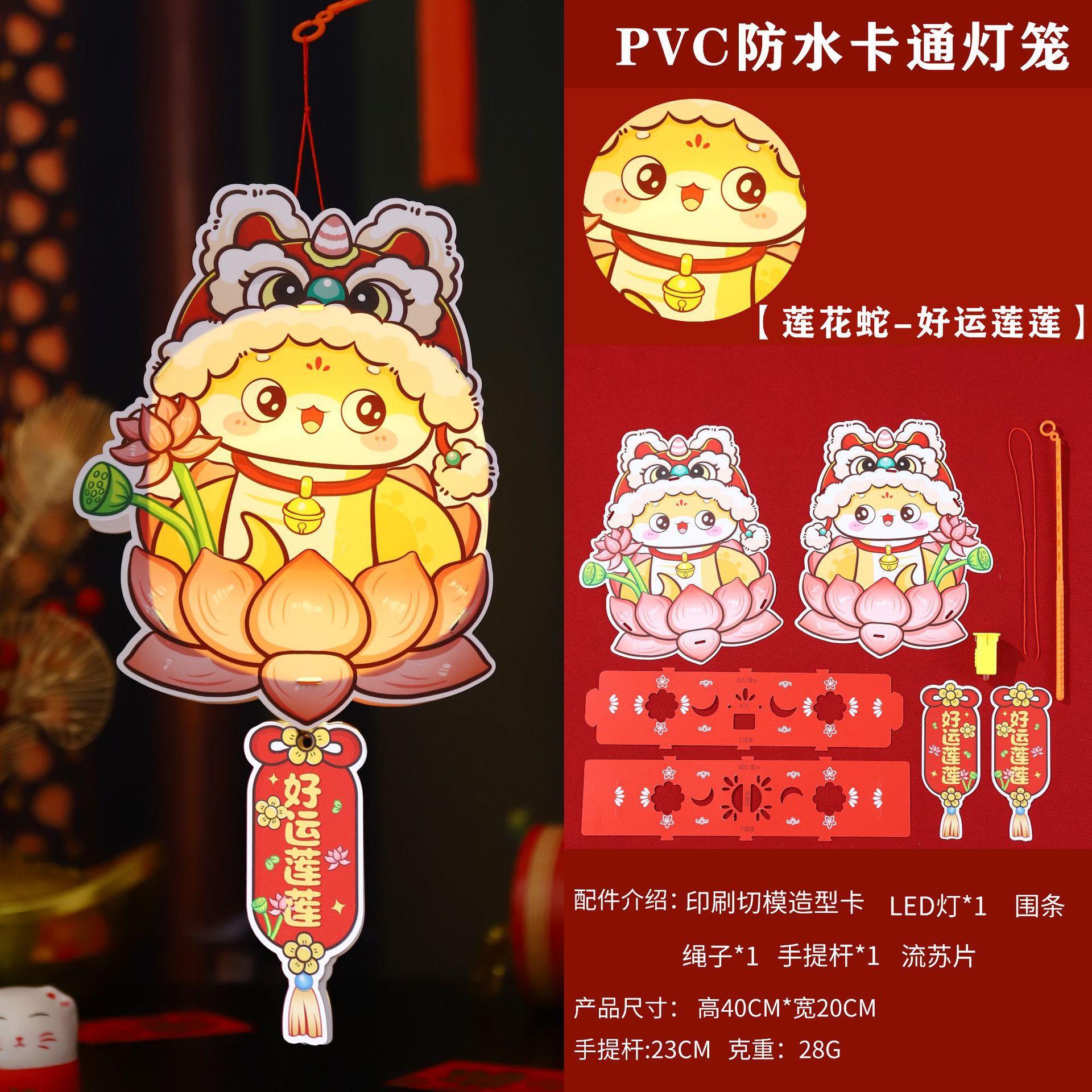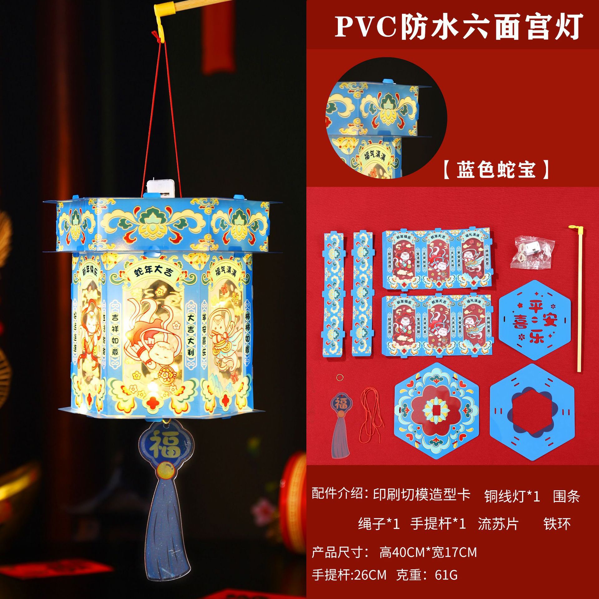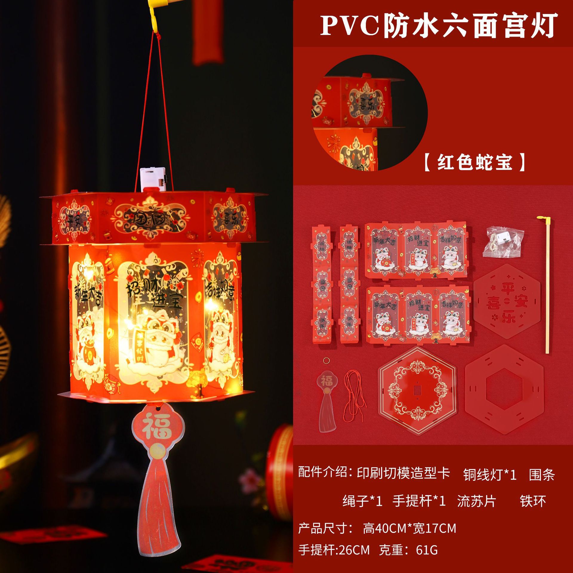 2026新年儿童手提diy灯笼PVC卡通发光元宵摆摊宫灯走马灯材料包