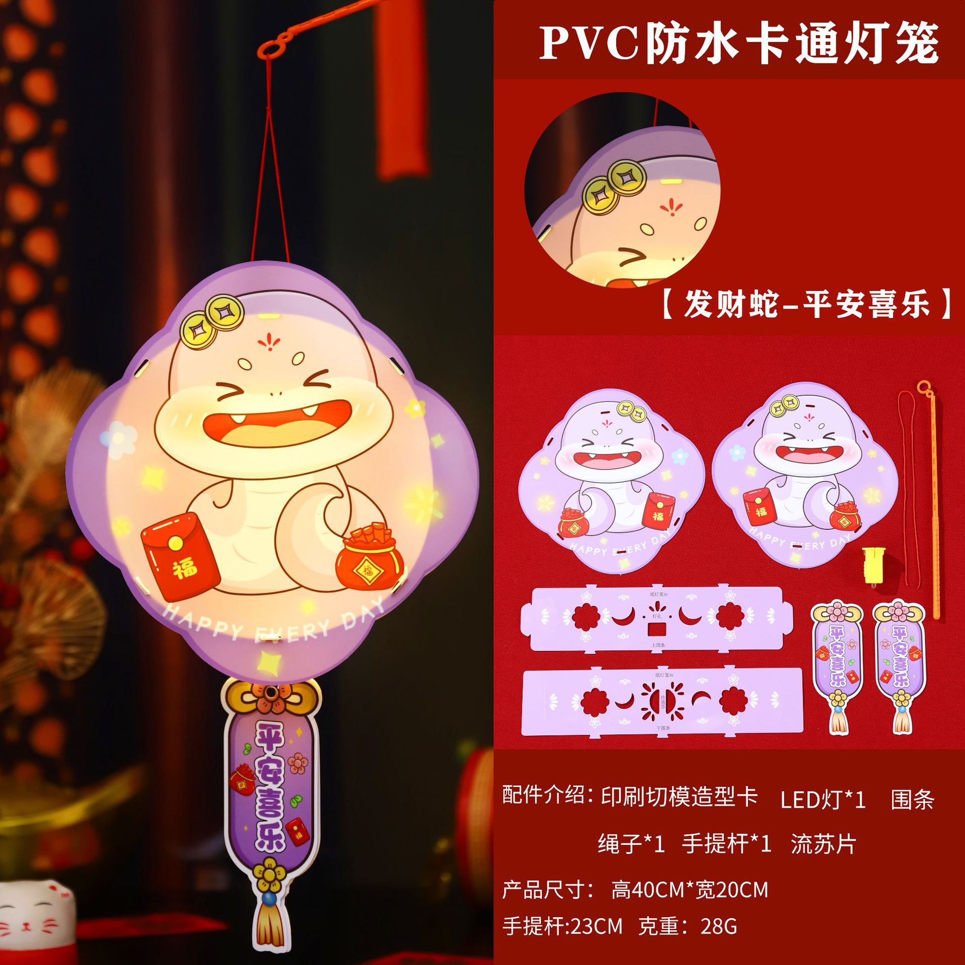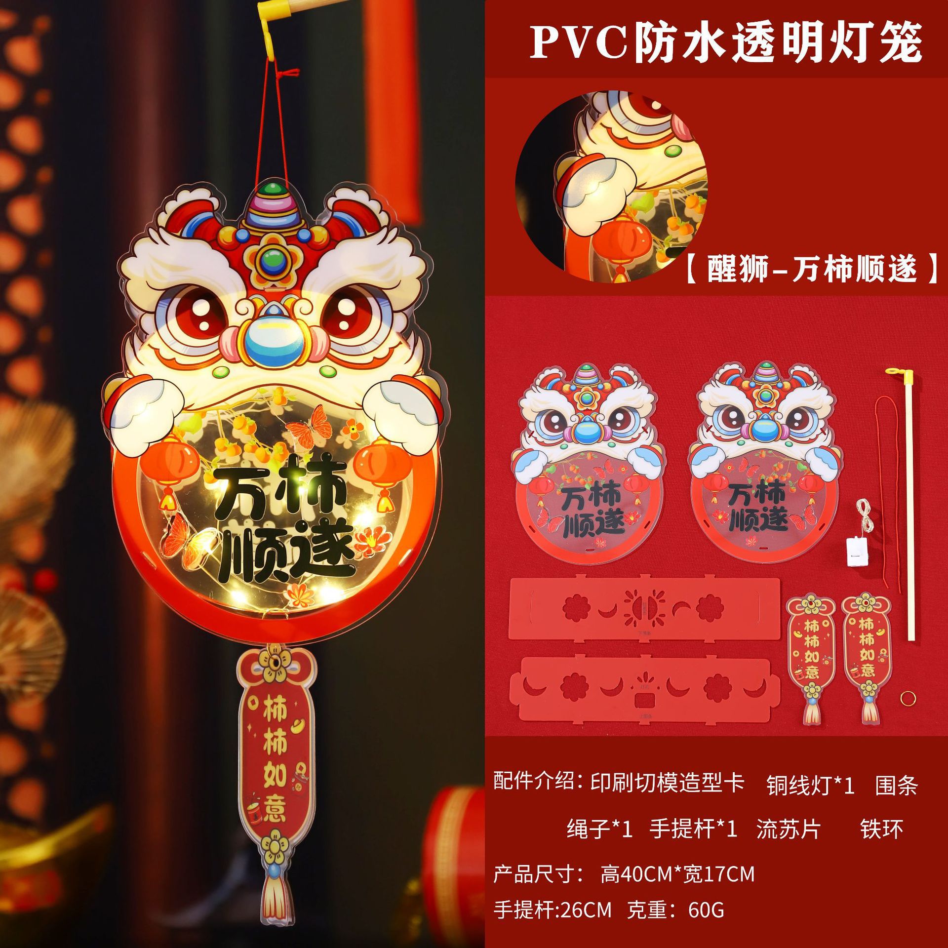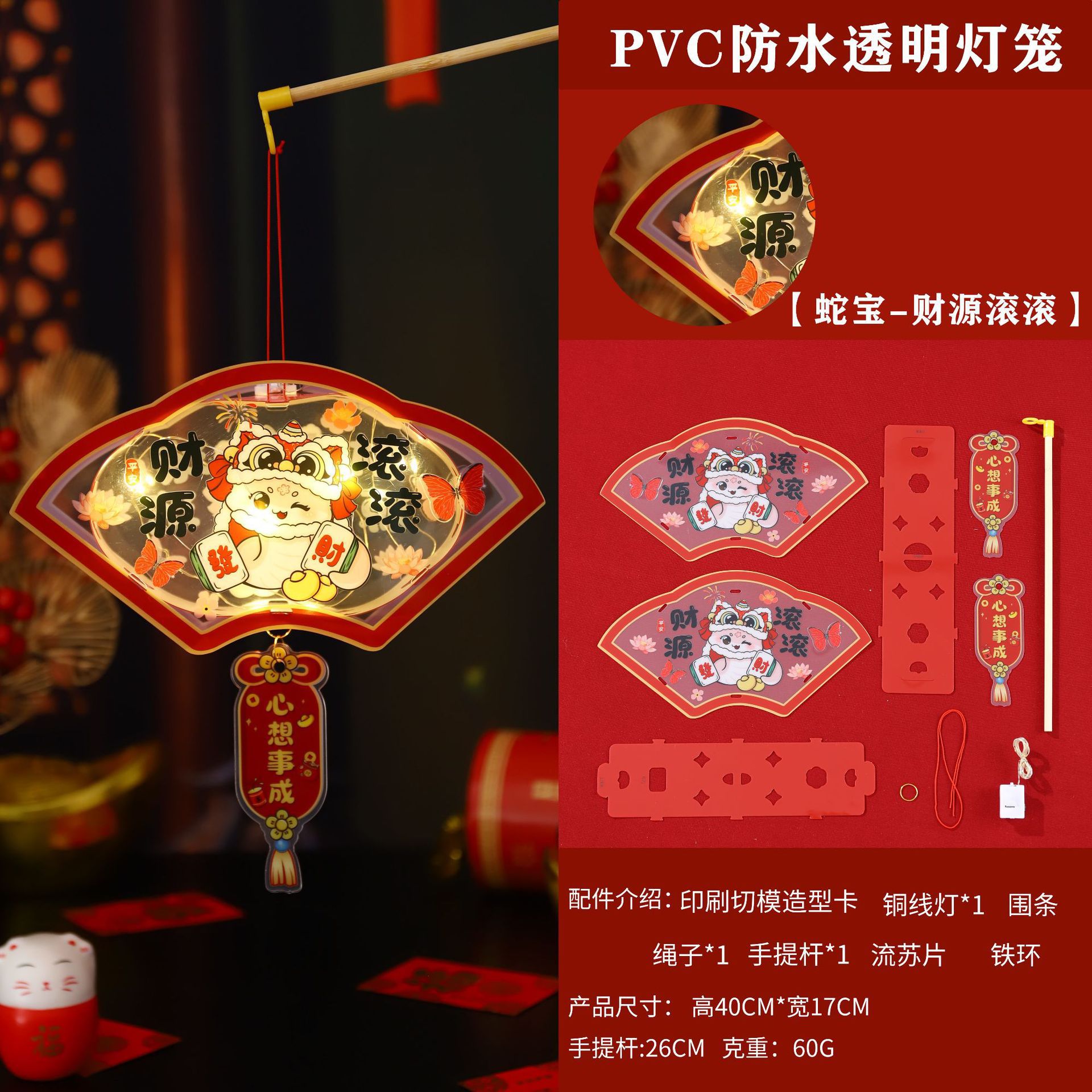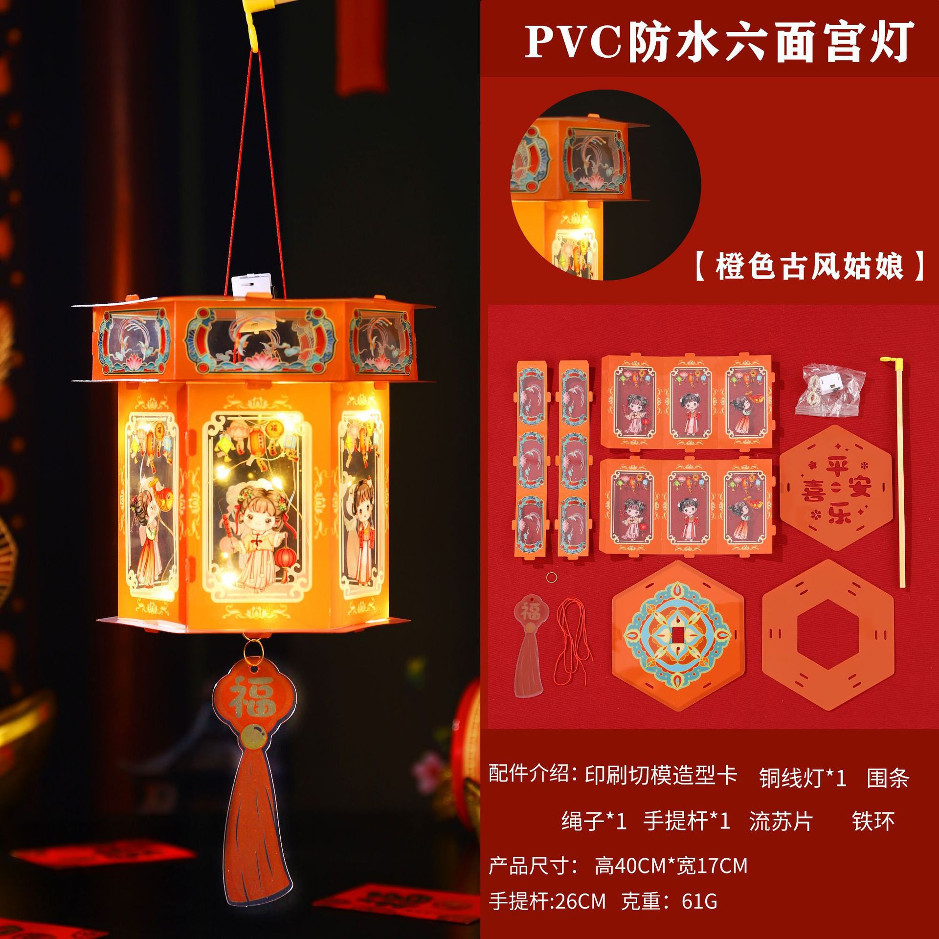 2026新年儿童手提diy灯笼PVC卡通发光元宵摆摊宫灯走马灯材料包