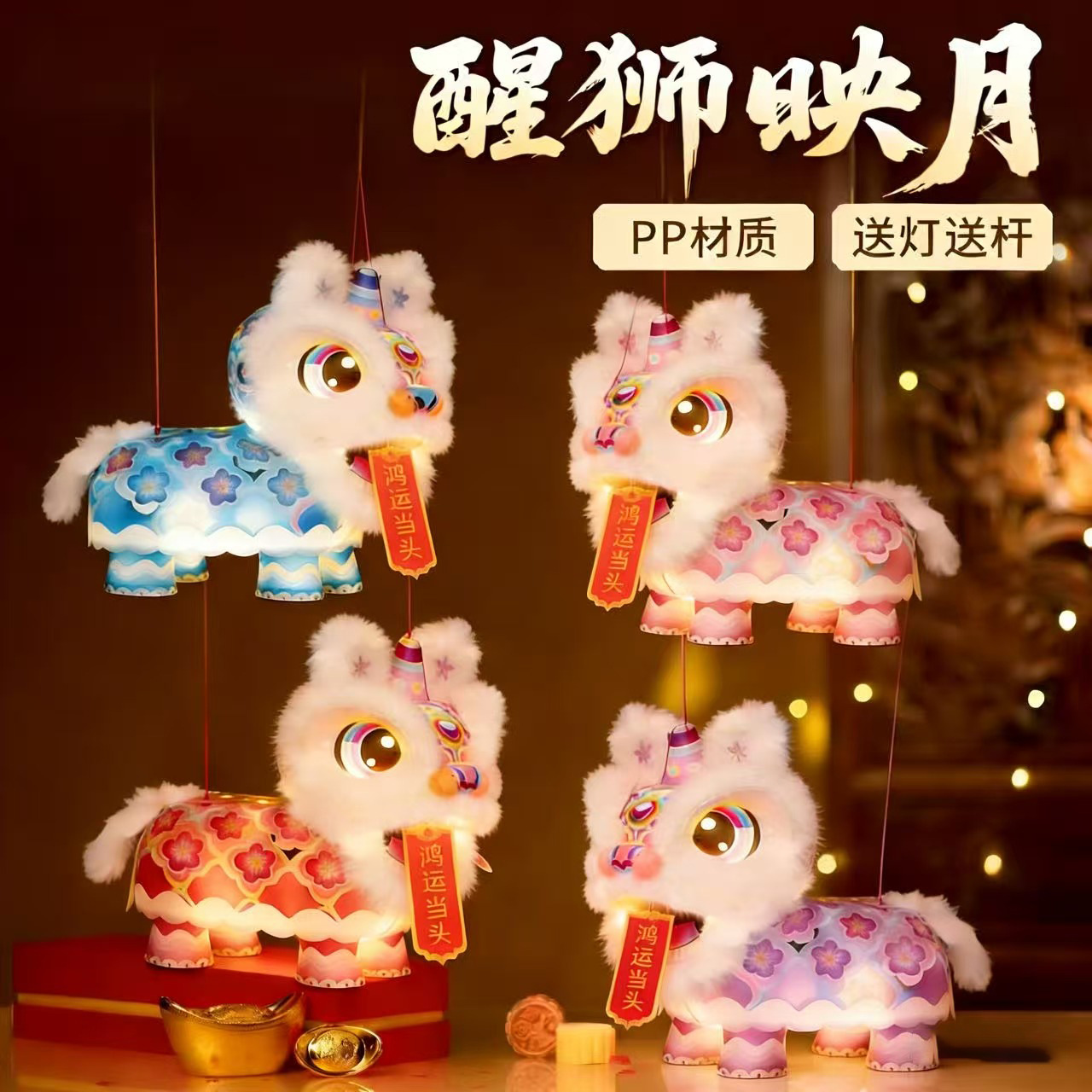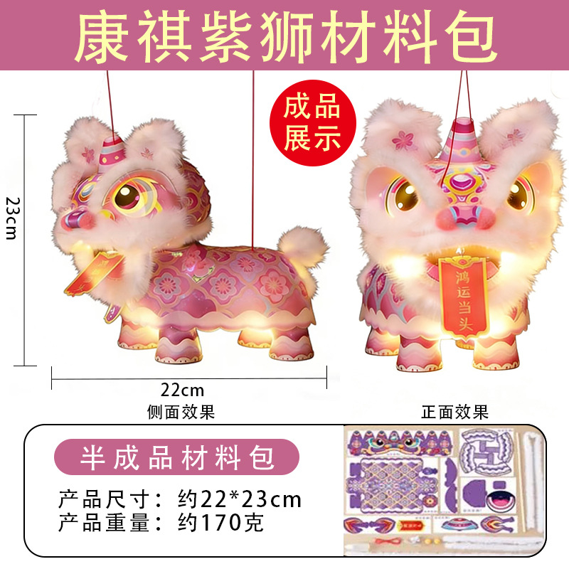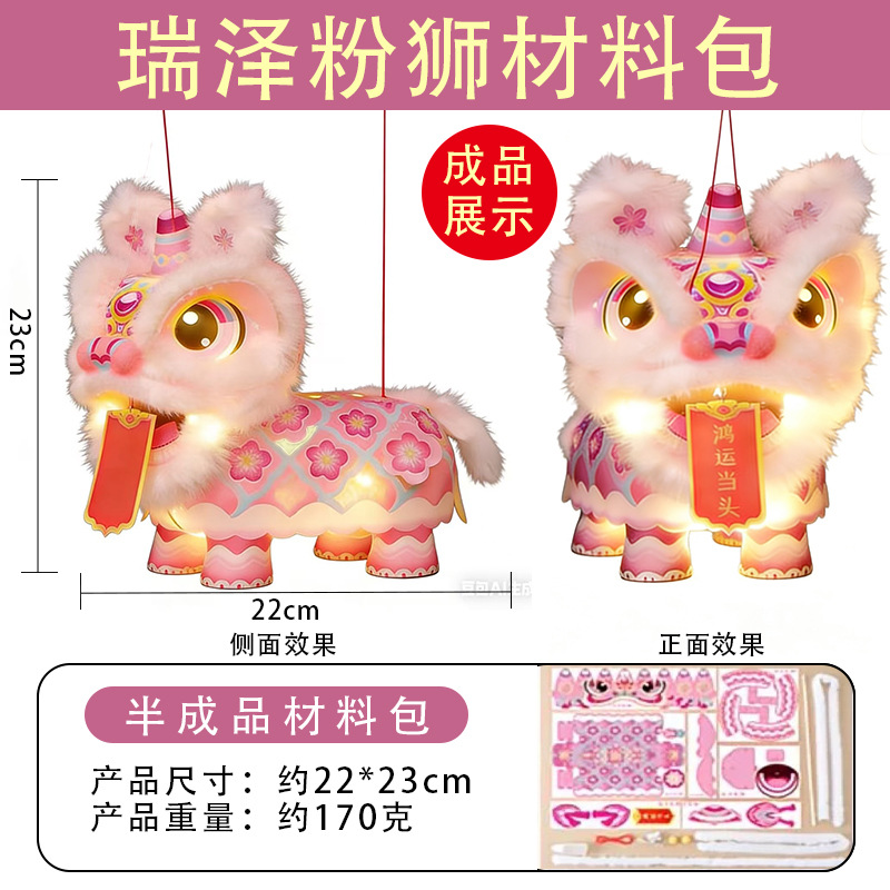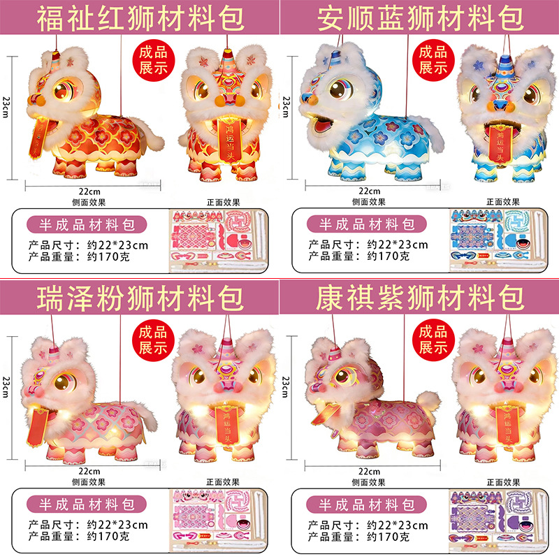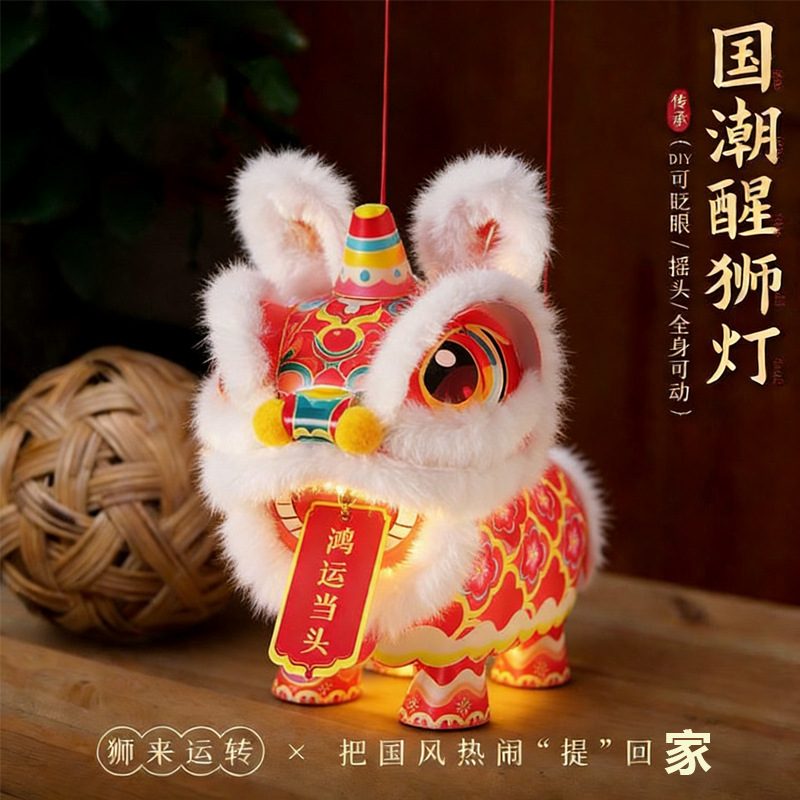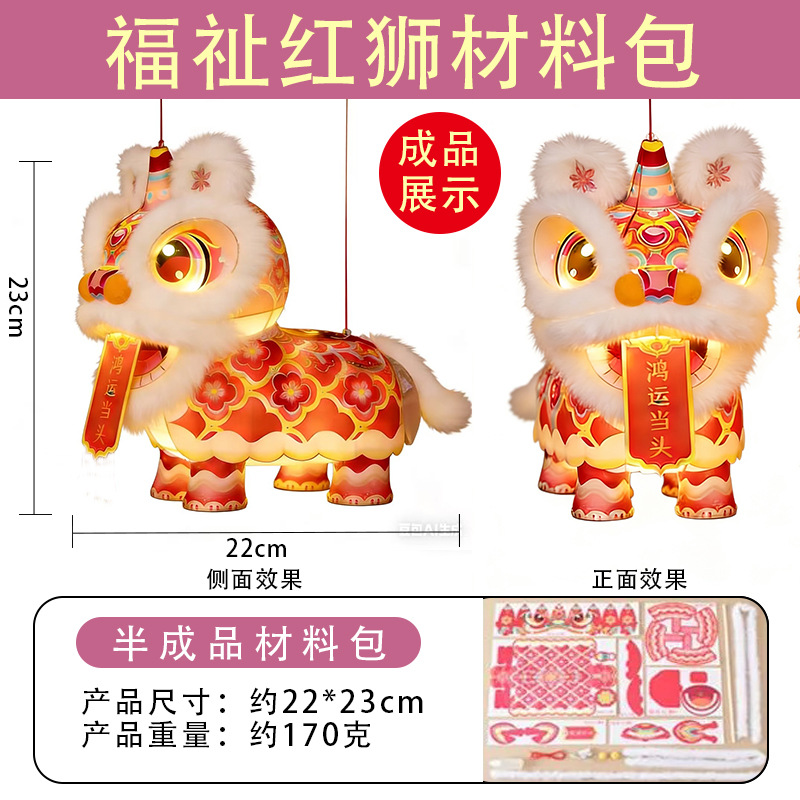 2026马年醒狮灯笼发光儿童手工diy材料过年手提花灯春节摆摊瑞狮