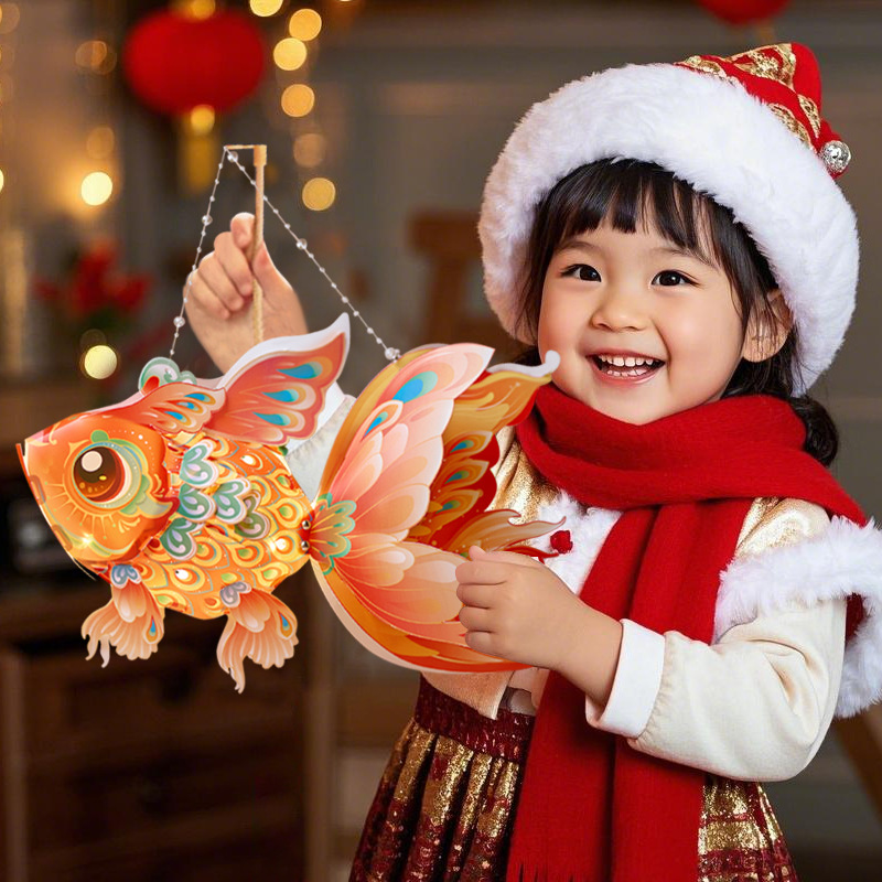 2026马年灯笼玲珑鱼灯儿童diy手工花灯材料春节夜市摆摊发光玩具