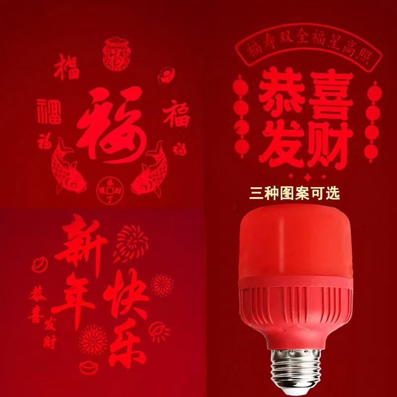 led灯笼灯泡 红色光源新年花灯装饰喜庆氛围球泡投影新快乐福字灯