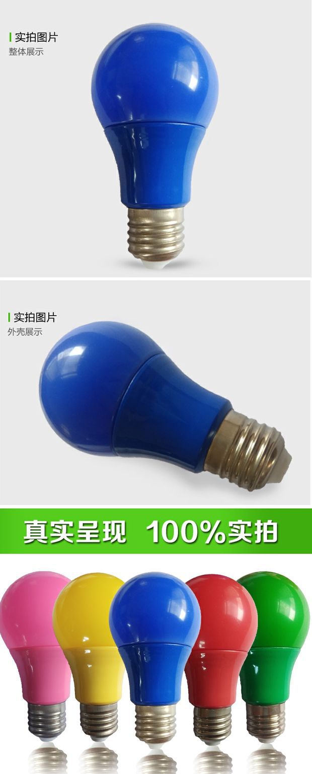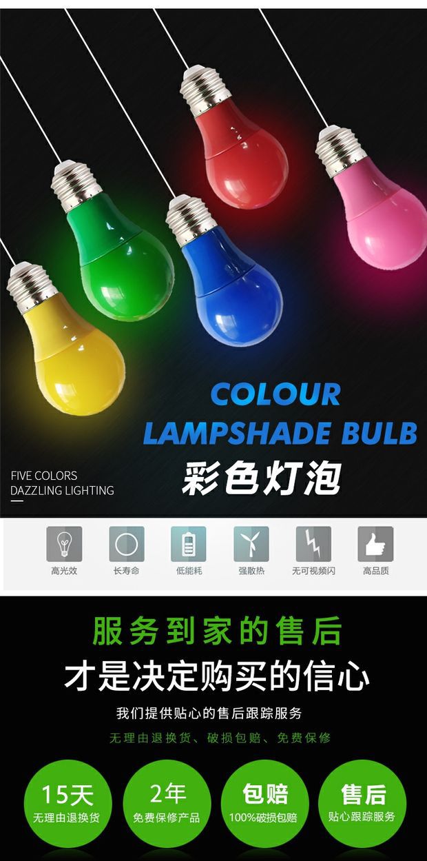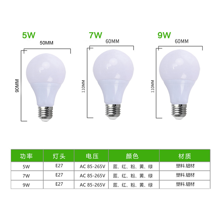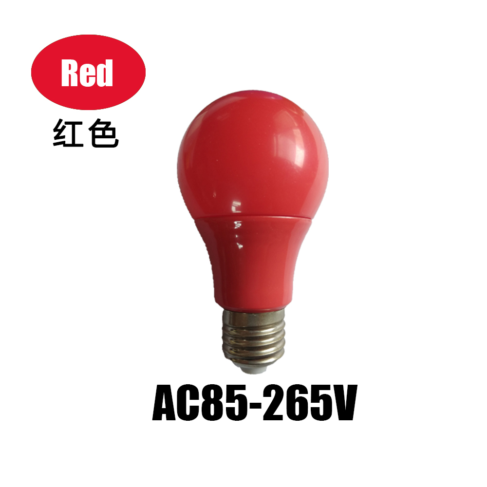 led彩色灯泡e27螺口5w7w9w红色绿蓝色粉黄色装饰灯笼110V220V