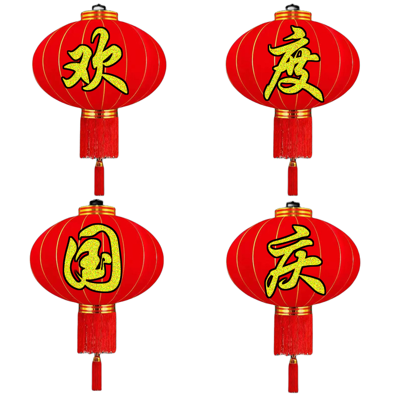 ✅一洋欢度国庆佳节春节灯笼铁口广告节日绸布植绒户外红色灯泡