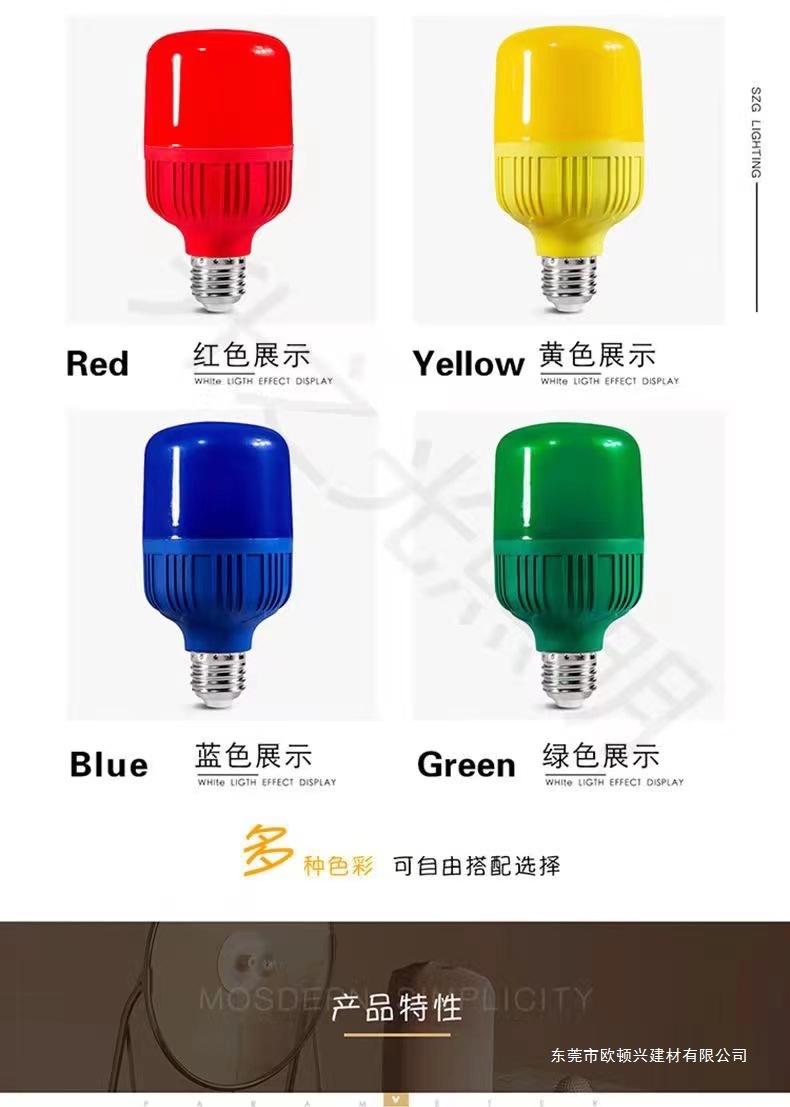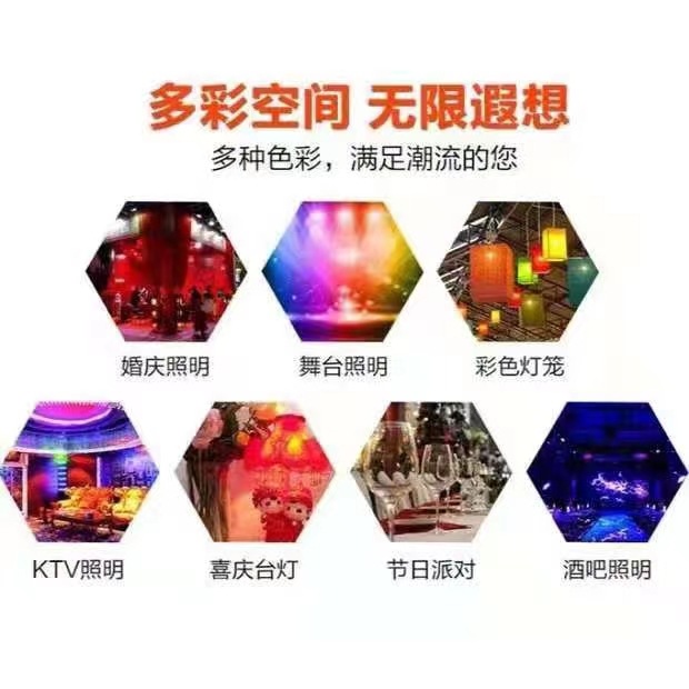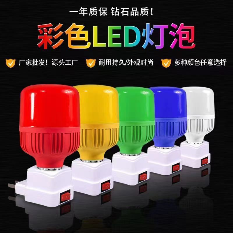 LED彩色灯泡e27螺口红色绿色蓝色黄色家用过节灯笼喜庆装饰节能灯