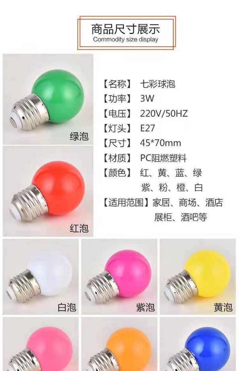 LED彩色灯泡E27螺口红色灯笼浪漫卧室装饰多色七彩光源照明节能灯