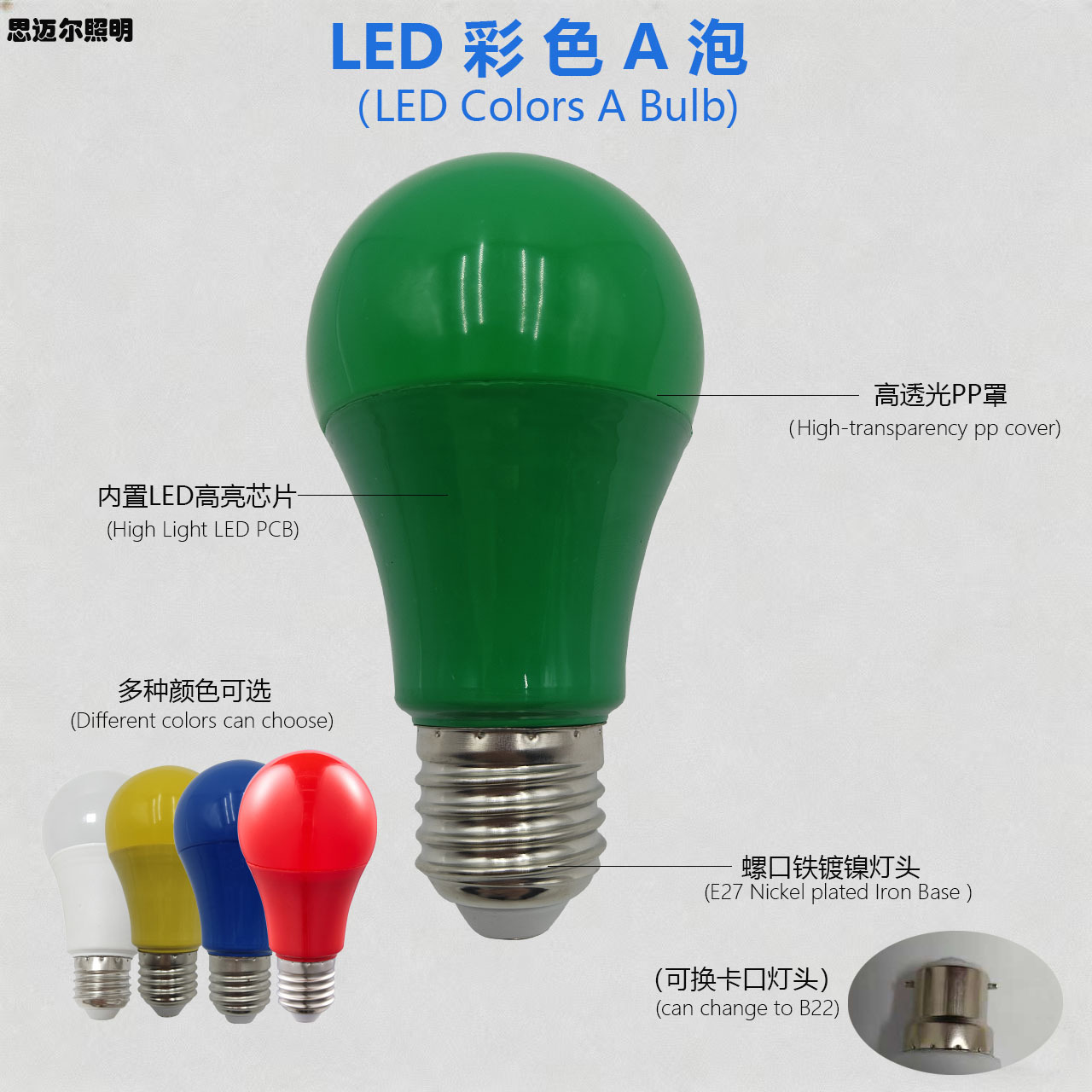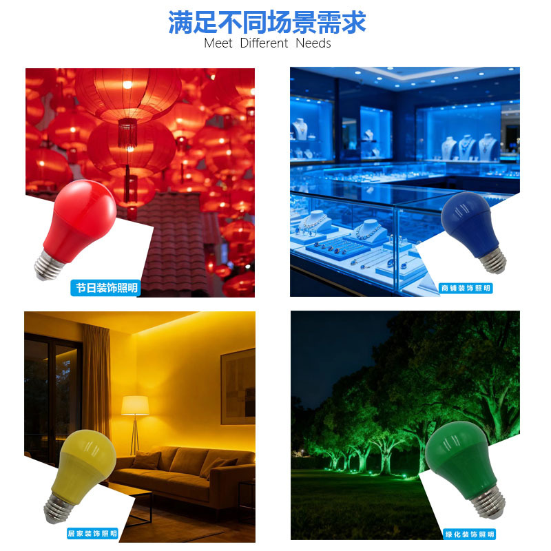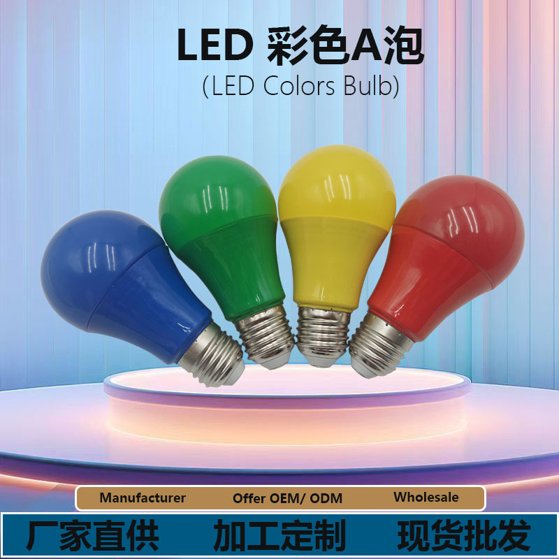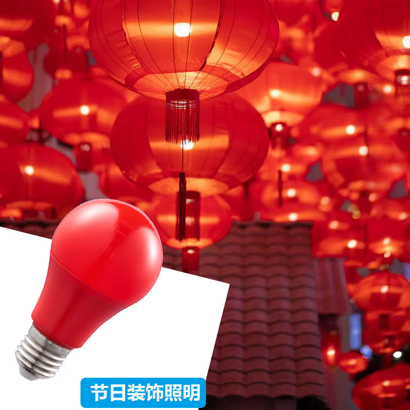 厂家直销A60塑包铝彩色灯泡LED户外节能装饰彩灯红色气氛灯笼光源
