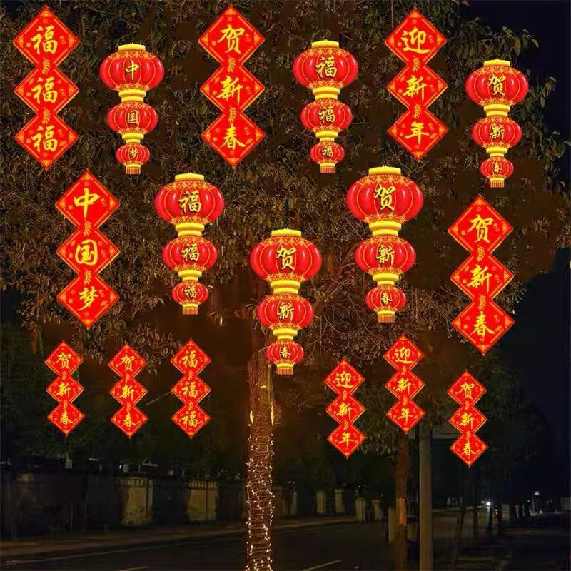 户外挂树彩灯公园景区亮化过年元旦中国结装饰灯led发光方福灯笼