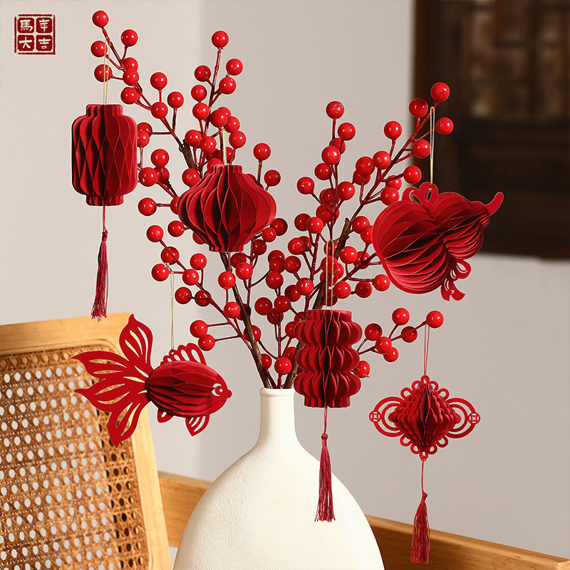 马年2026新款新年盆景绿植挂饰装饰盆栽过年春节布置喜庆挂件用品