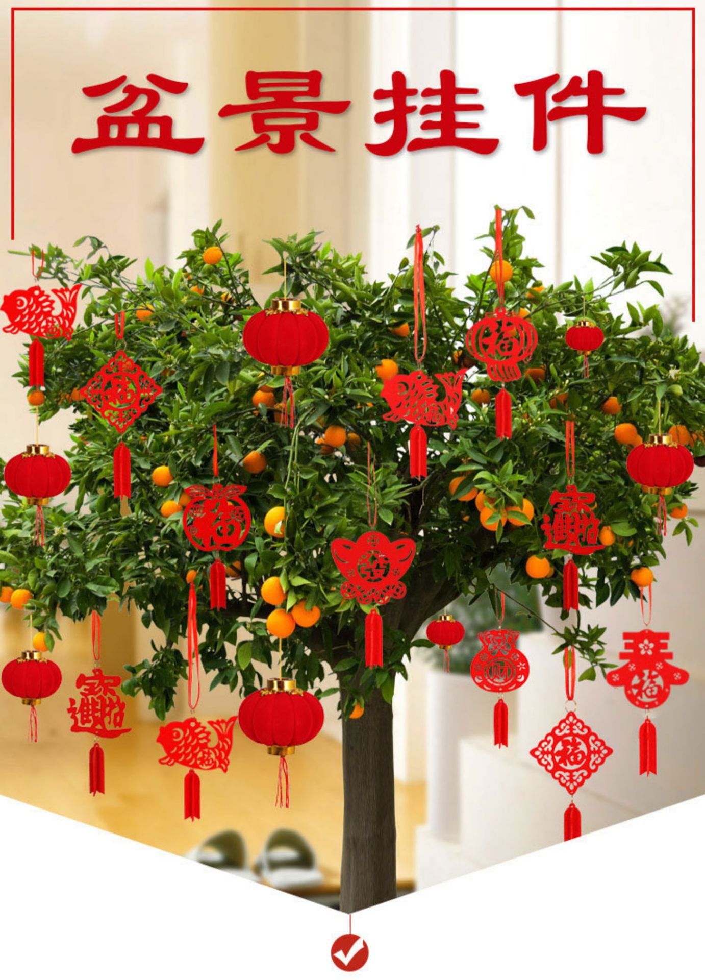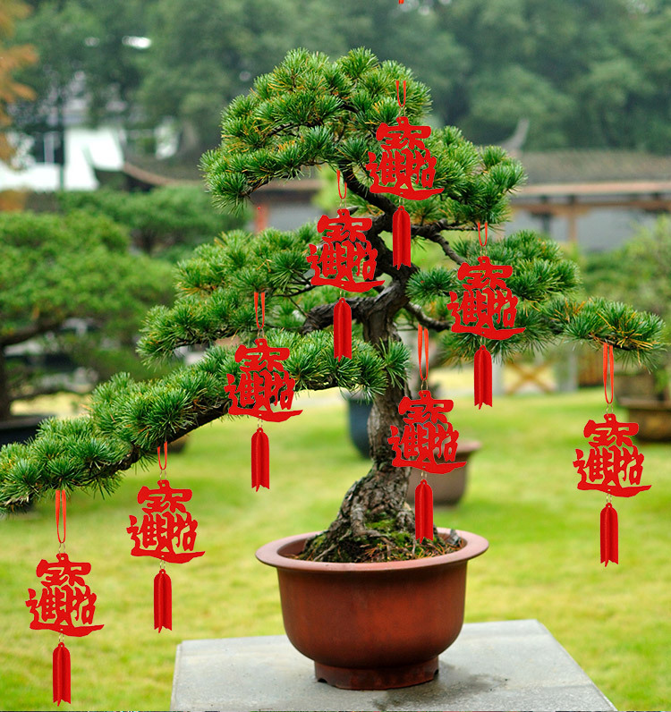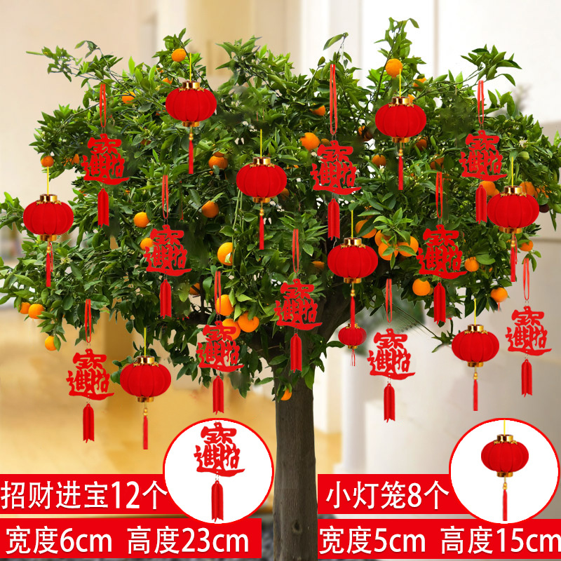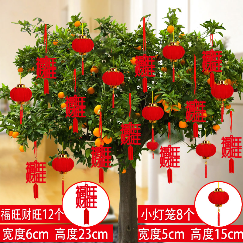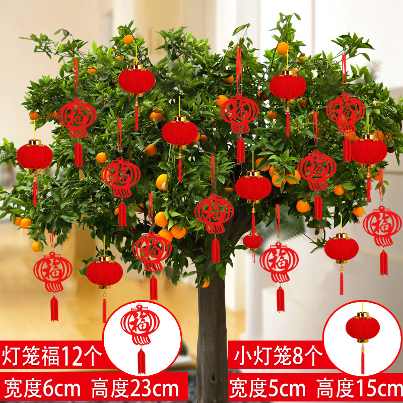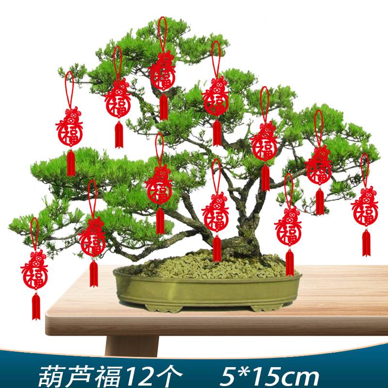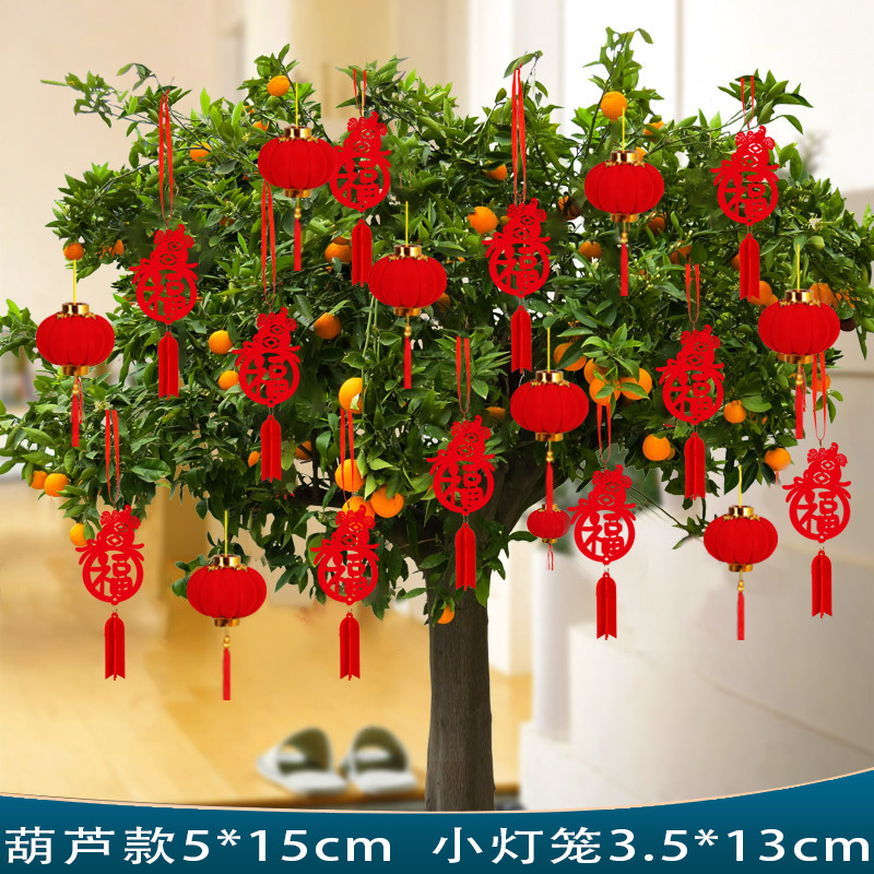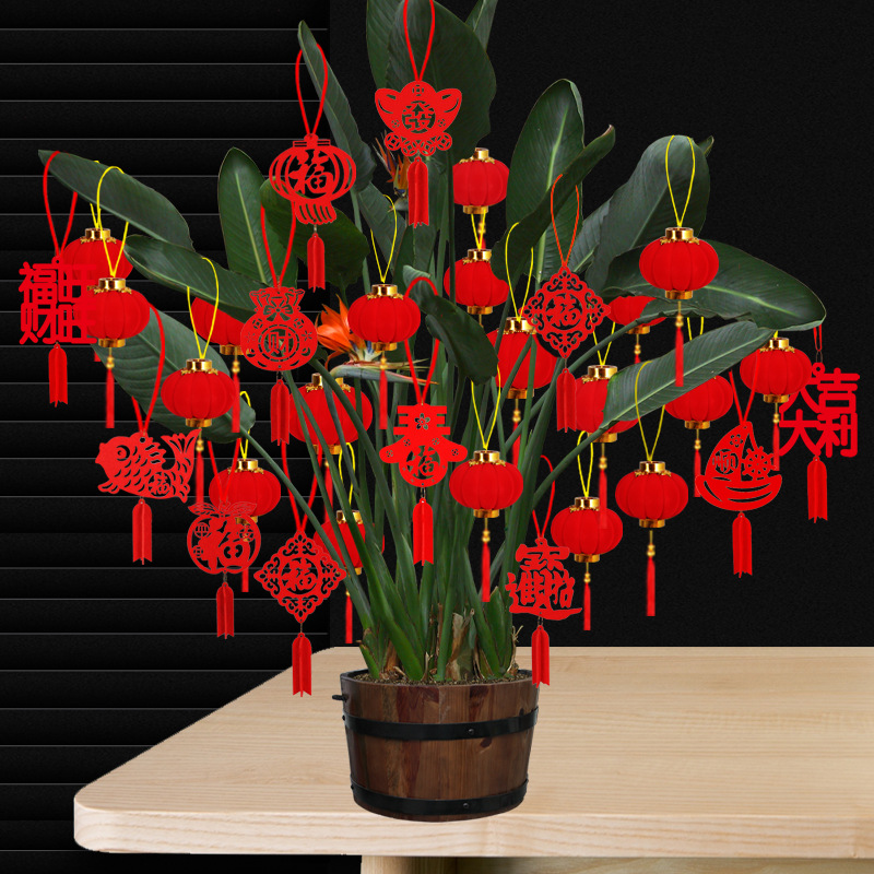 新年装饰盆景摆件小福字挂件植物挂树上小红灯笼挂饰新年布置挂件