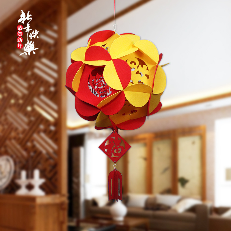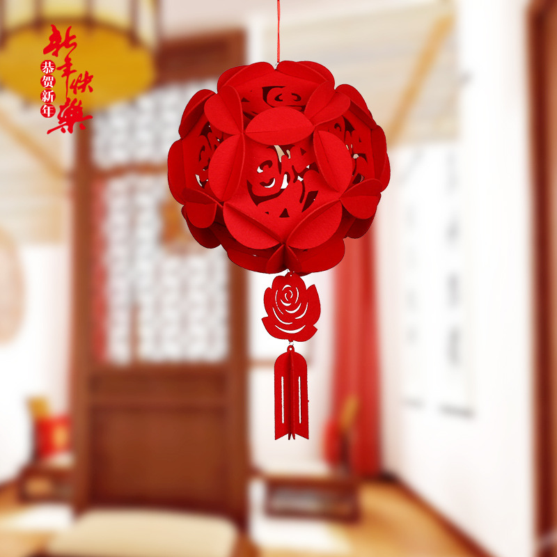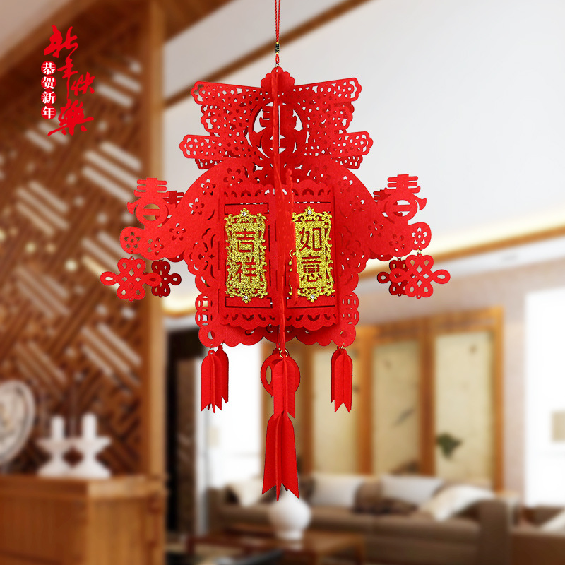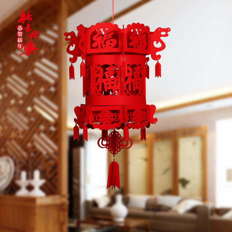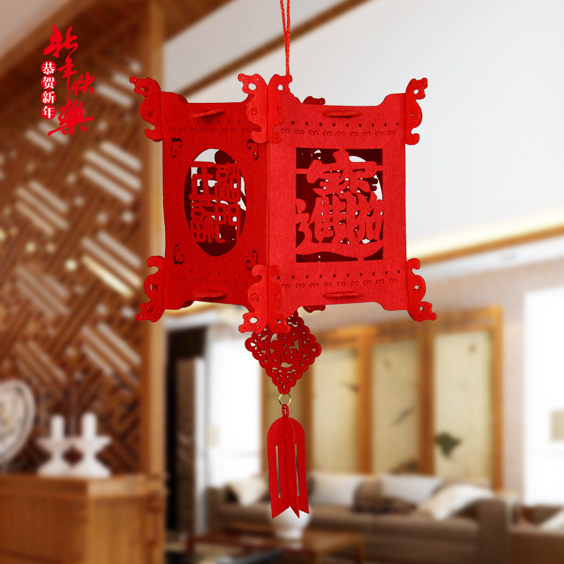 国庆挂饰小灯笼布置福字宫灯春字植绒布结婚婚庆灯笼福字挂饰装饰