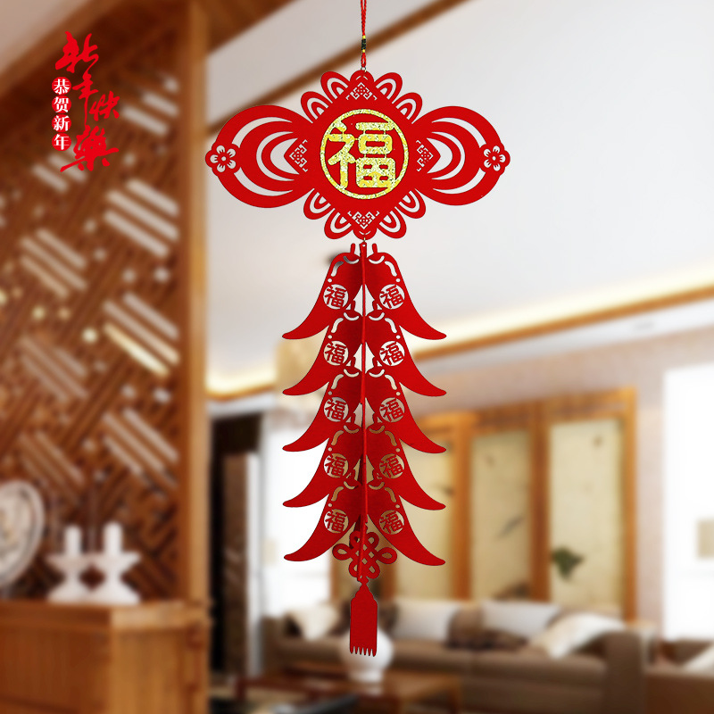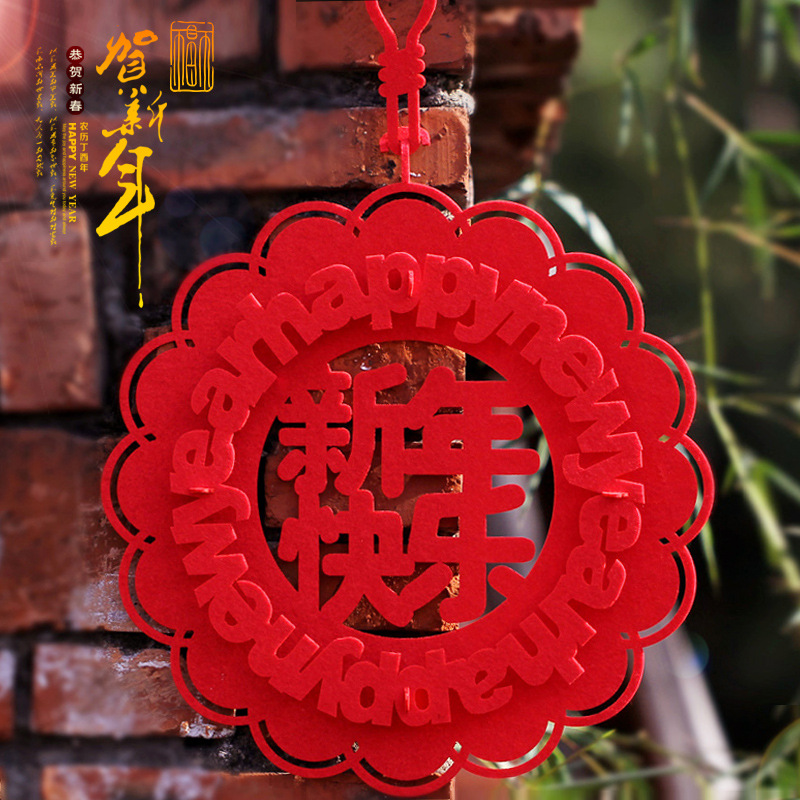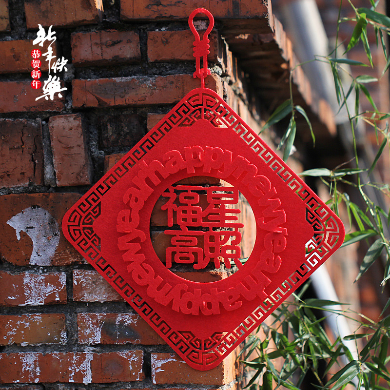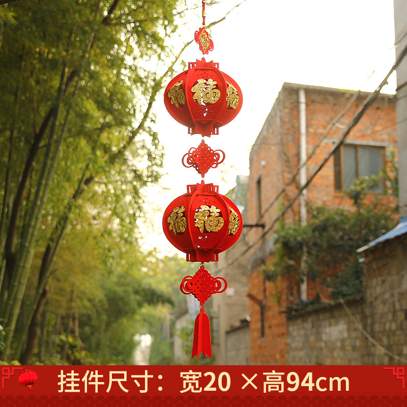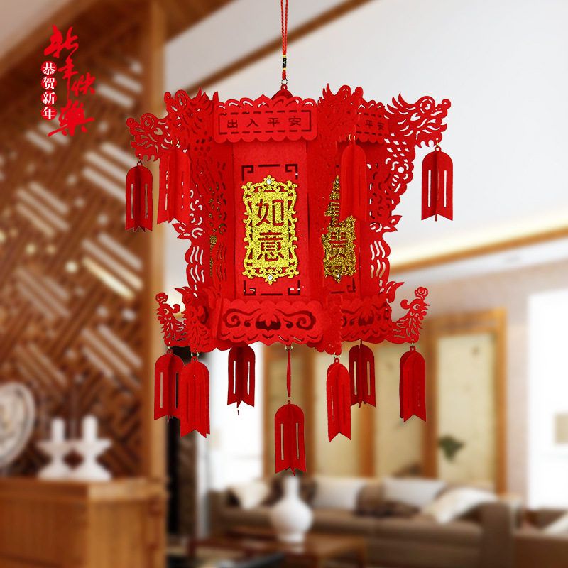 国庆挂饰小灯笼布置福字宫灯春字植绒布结婚婚庆灯笼福字挂饰装饰