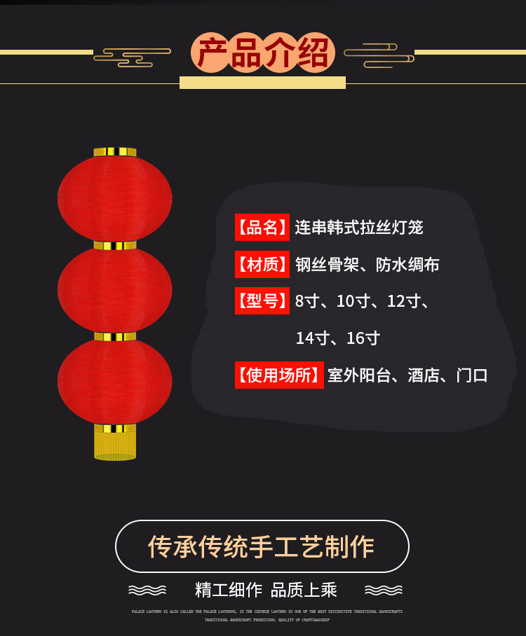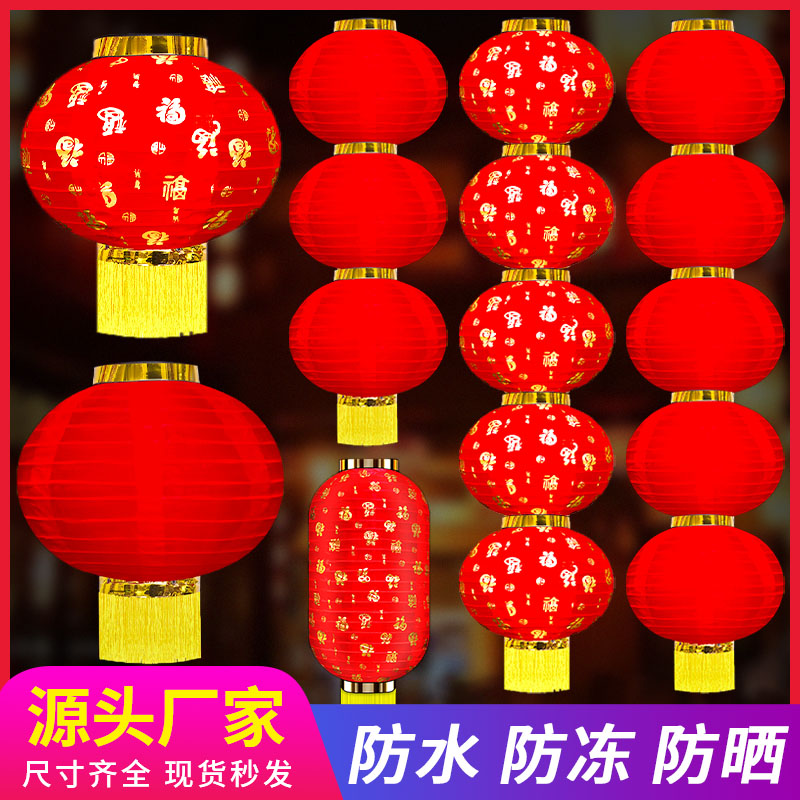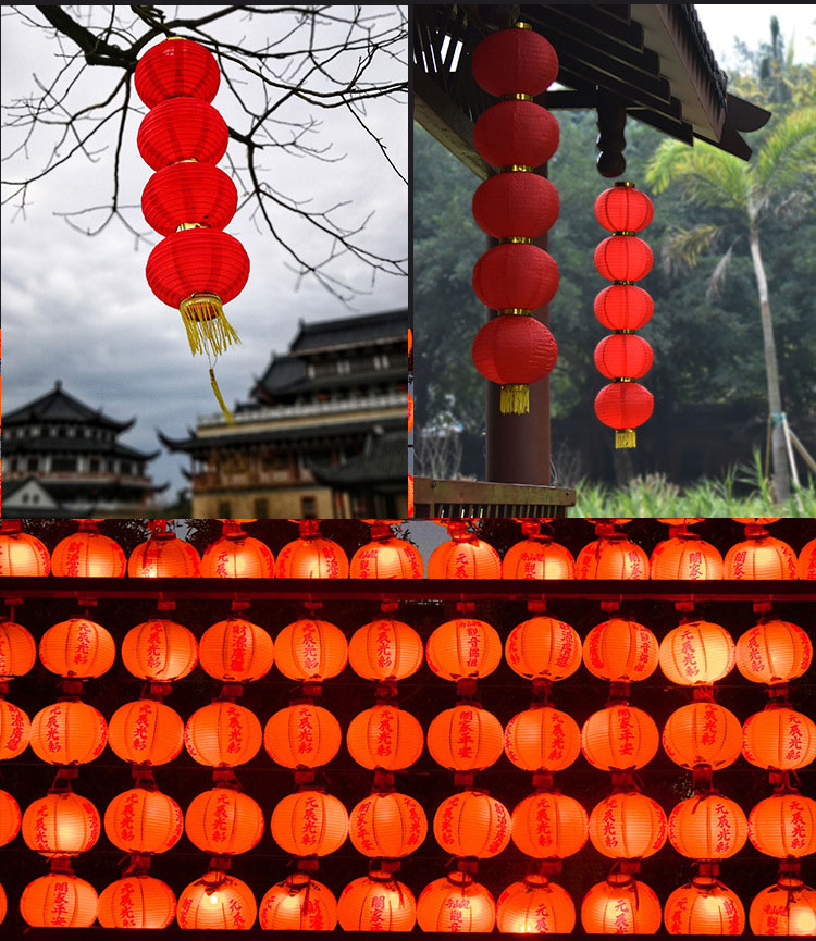 ✅元宵春节新年装饰大红灯笼串户外防水绸布折叠三四五连串挂树宫