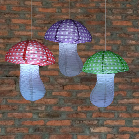 勾脚自然异形大蘑菇纸灯笼可折叠手工吊饰田园野炊挂树装饰40公分