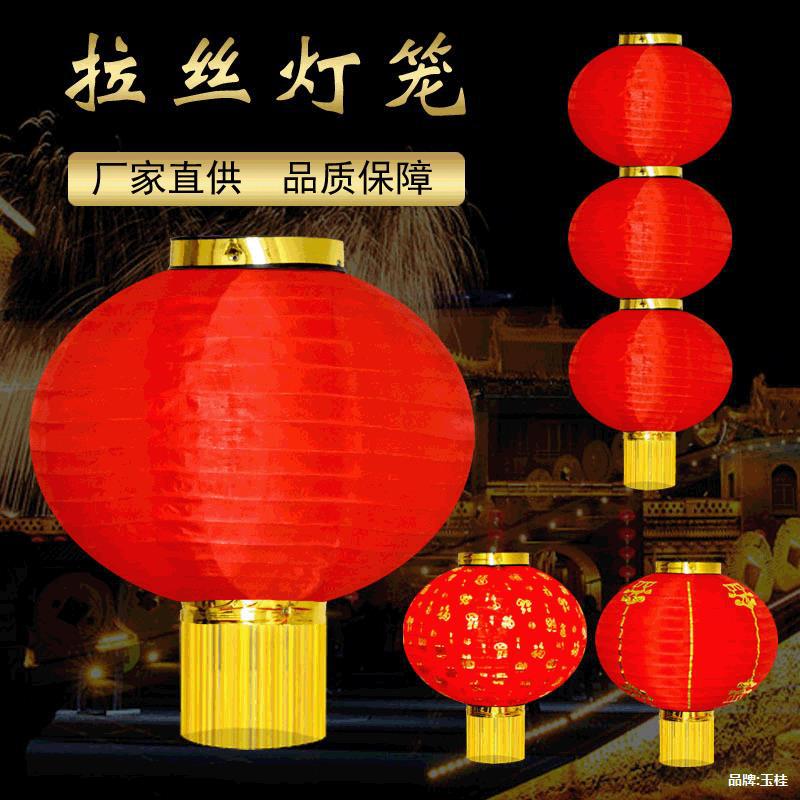 拉丝灯笼折叠灯笼韩式大红灯笼广告灯笼庙会节日街道春节灯笼挂树