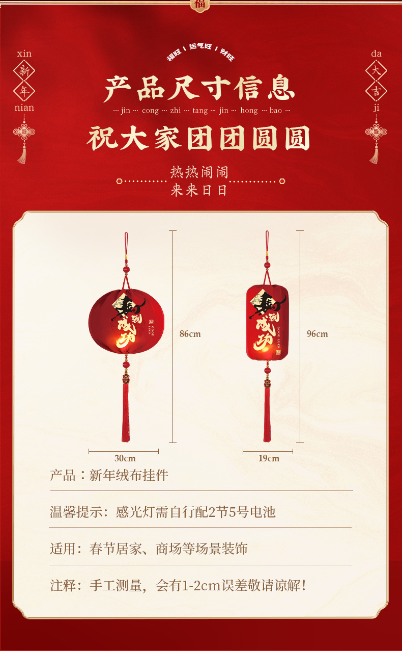 2026新年大红福字灯笼树上中式红色过年春节挂件场景布置装饰挂饰