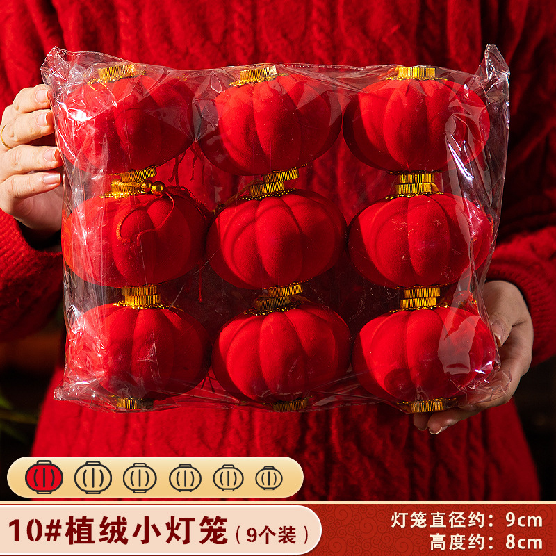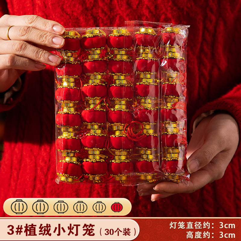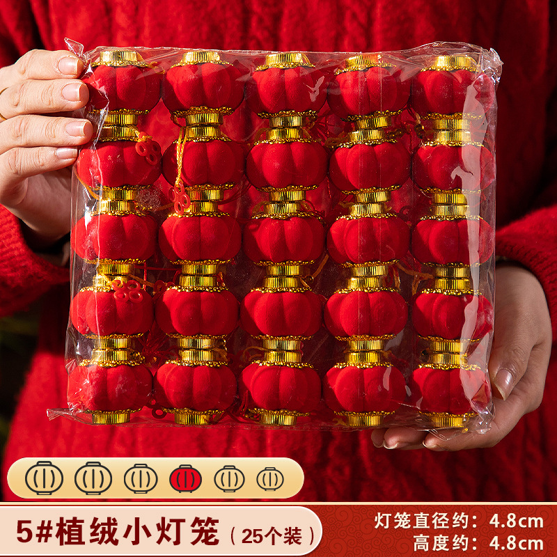新年植绒灯笼挂饰过年红灯笼盆景树上挂件装饰春节户外喜庆小灯笼