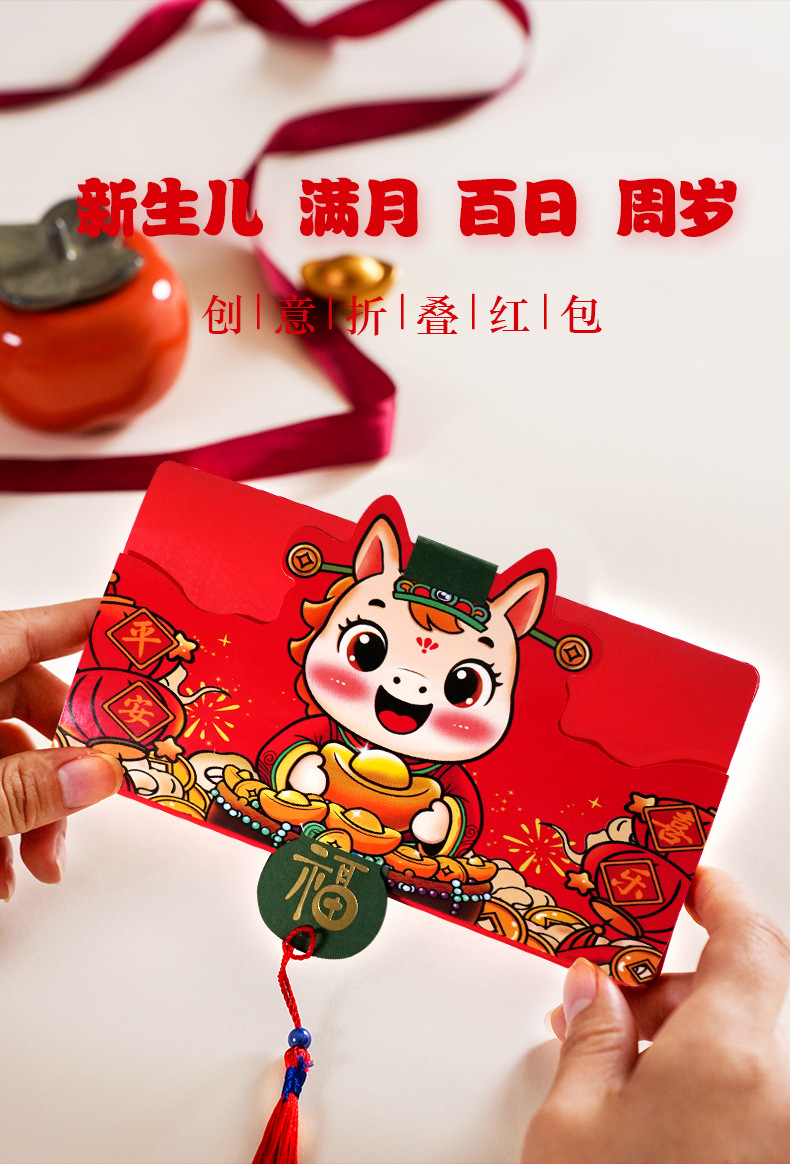 2026新款马年折叠红包新年卡位红包袋创意儿童过年春节压岁钱封包
