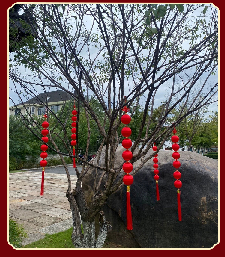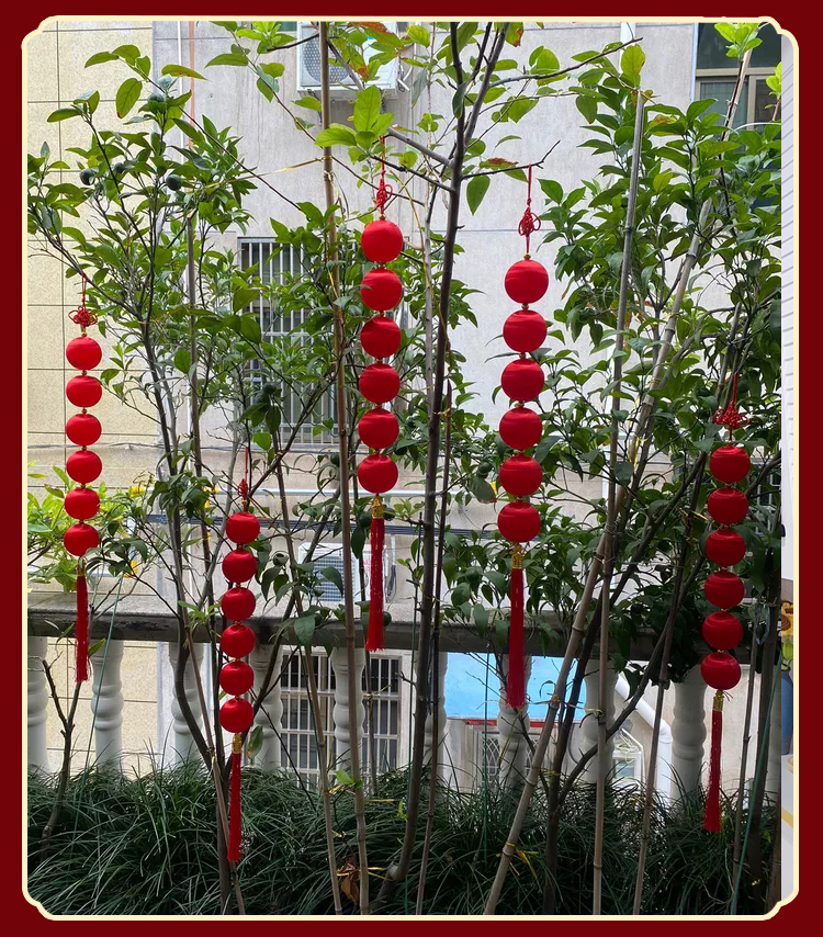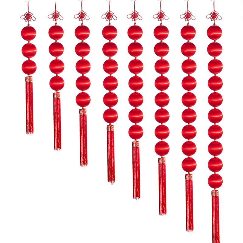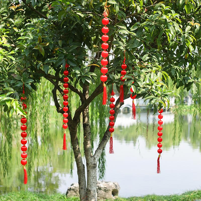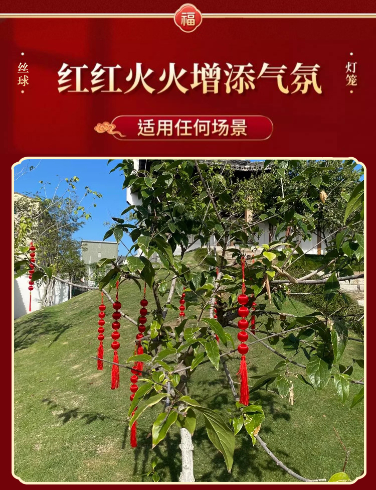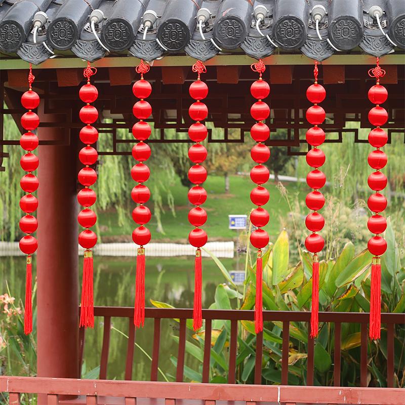 2025新年丝光红球串小灯笼挂饰商场春节结婚喜庆橱窗盆景挂件