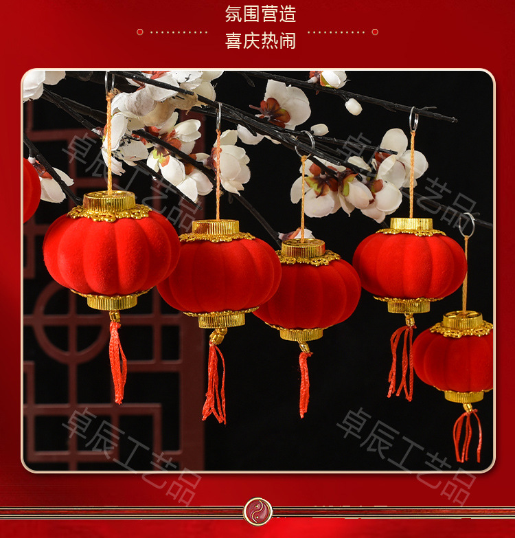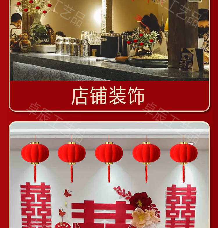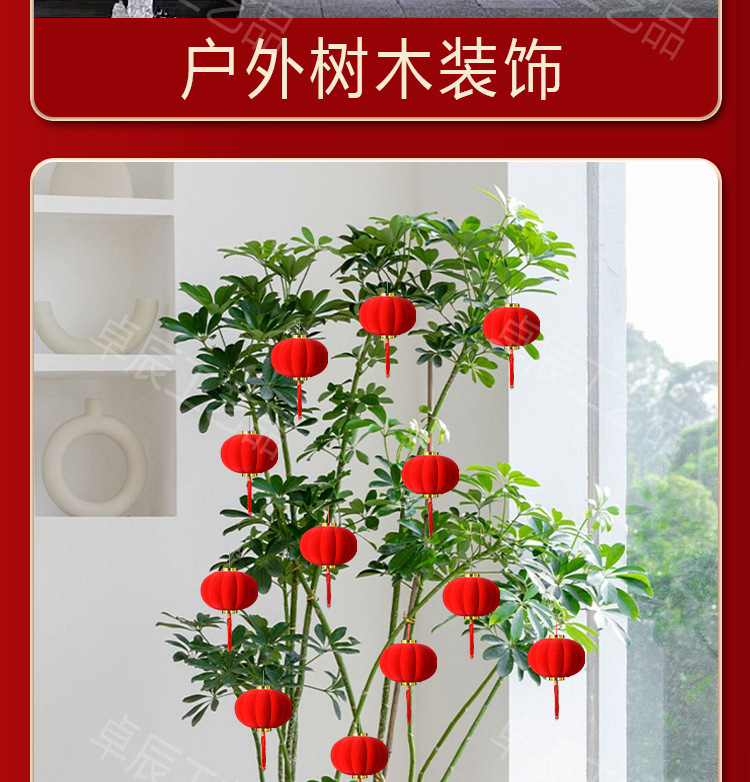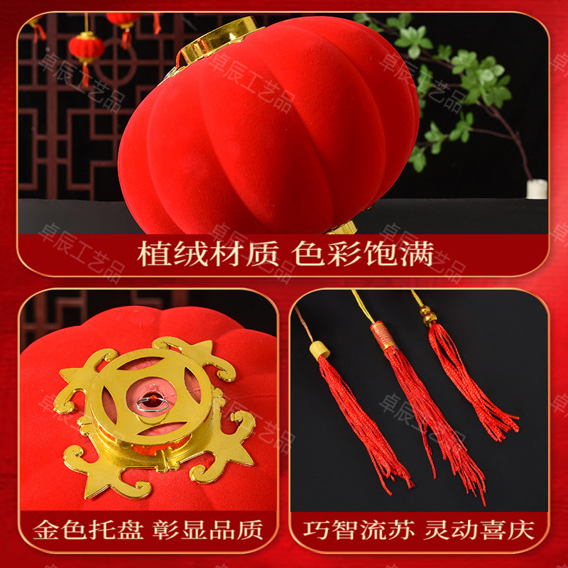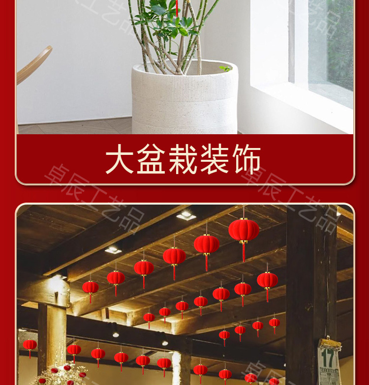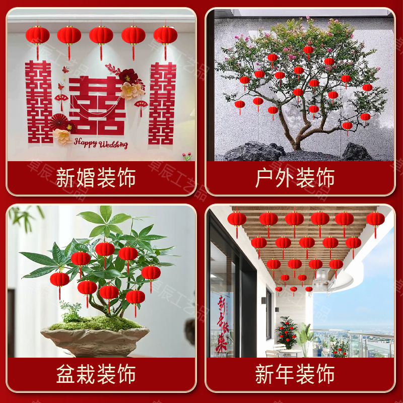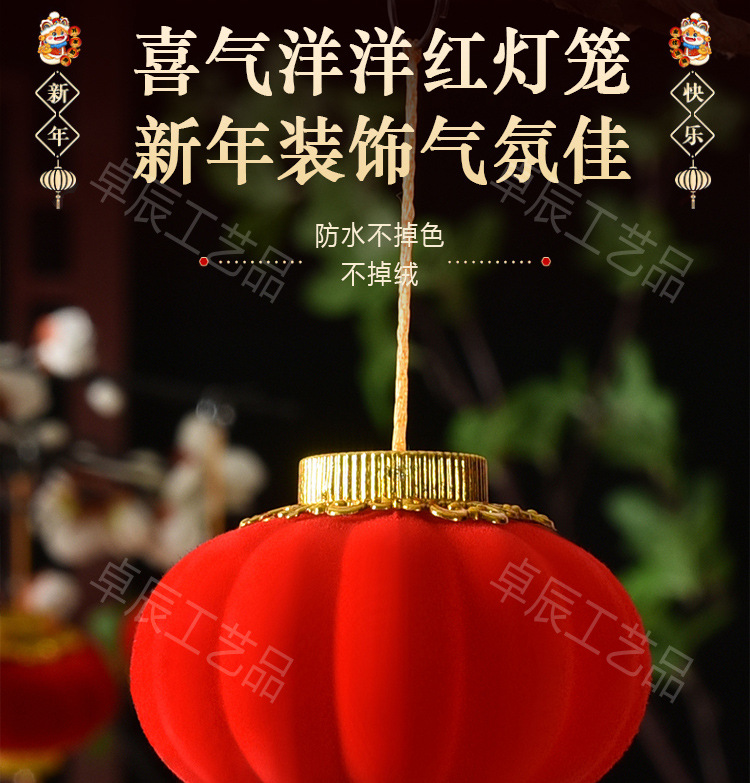 新年植绒灯笼挂饰中式红灯笼过年盆景挂件装饰春节户外喜庆
