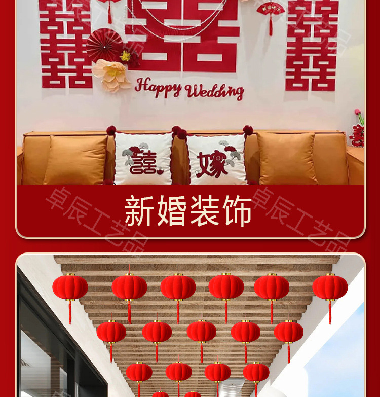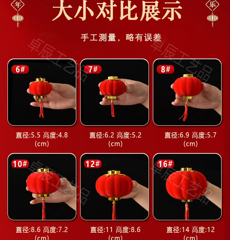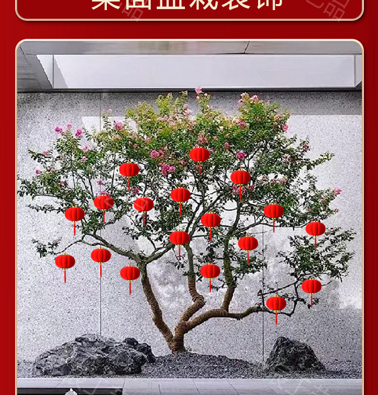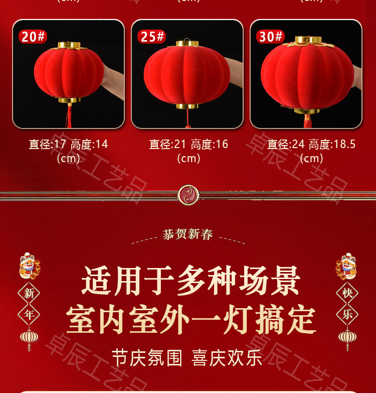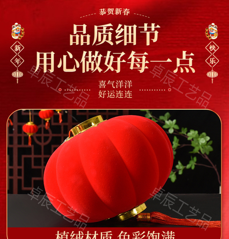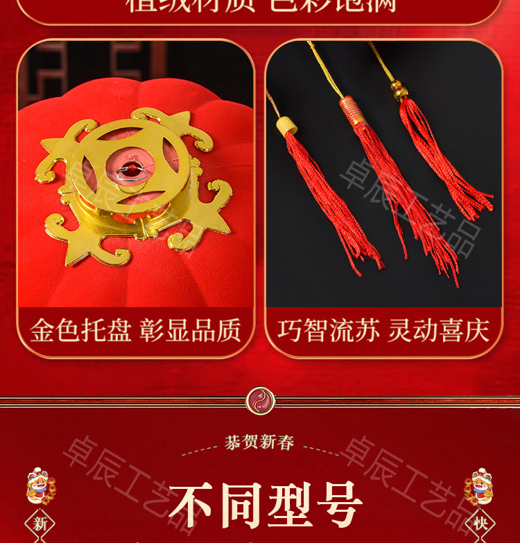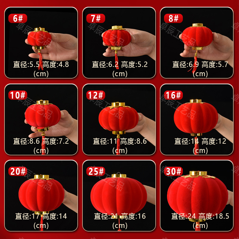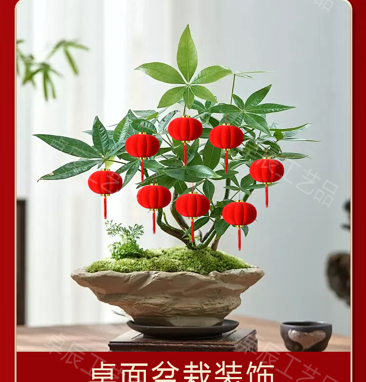 新年植绒灯笼挂饰中式红灯笼过年盆景挂件装饰春节户外喜庆