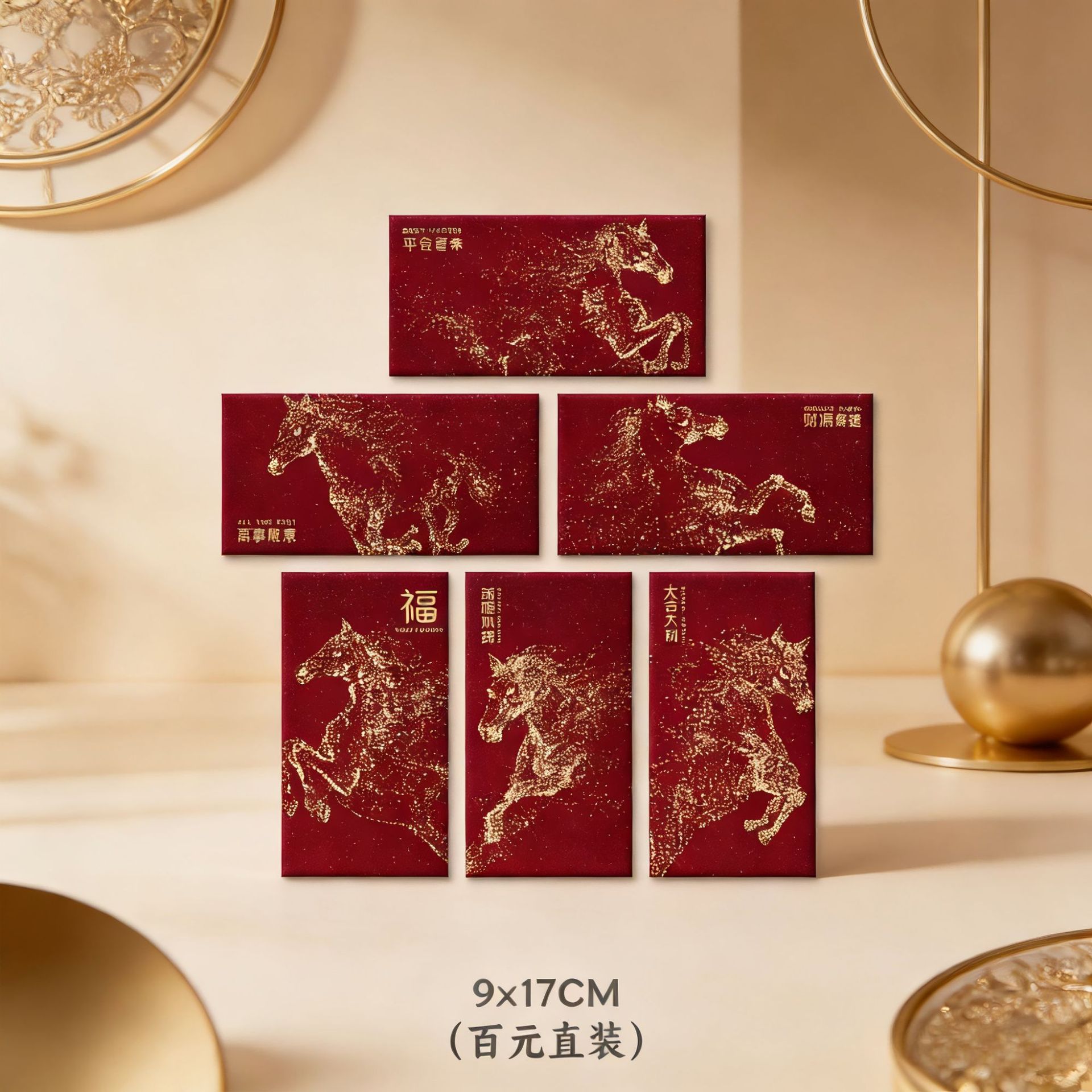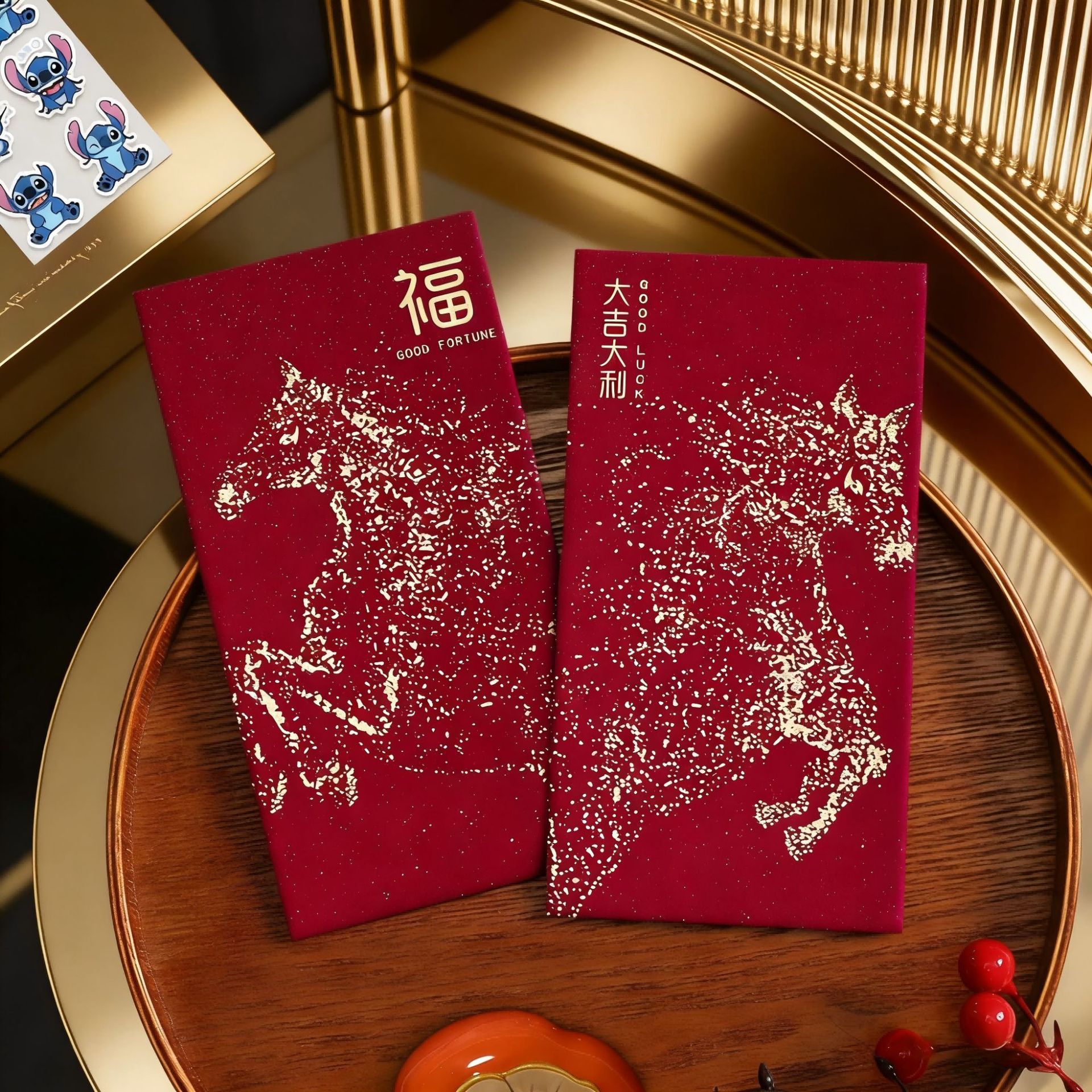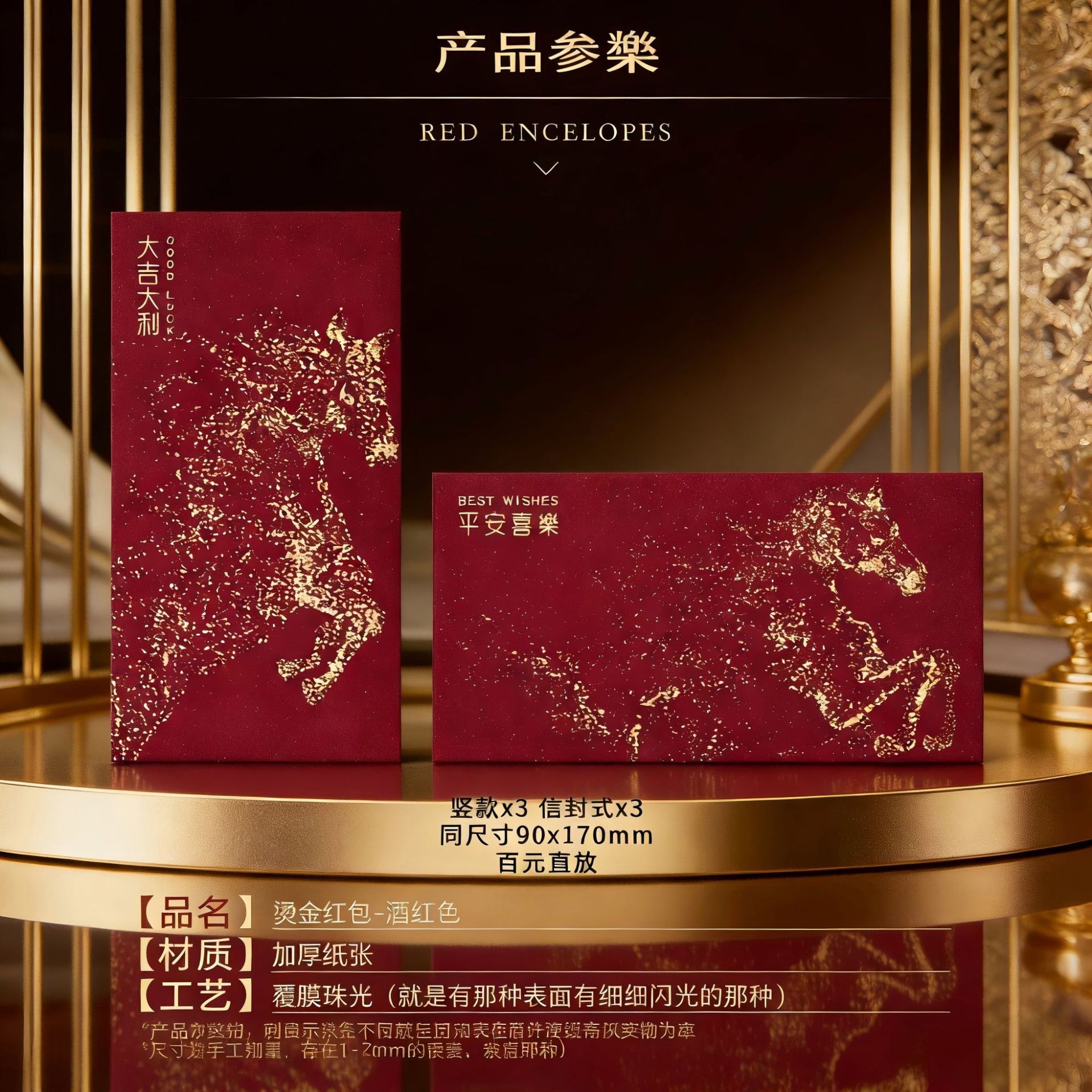 创意压岁红封包酒红轻奢新年红包袋2026年马年通用利是封高端