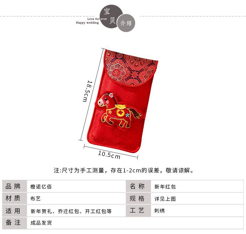 | 马年布艺红包袋 | USD $2.56 | 599 piece available |