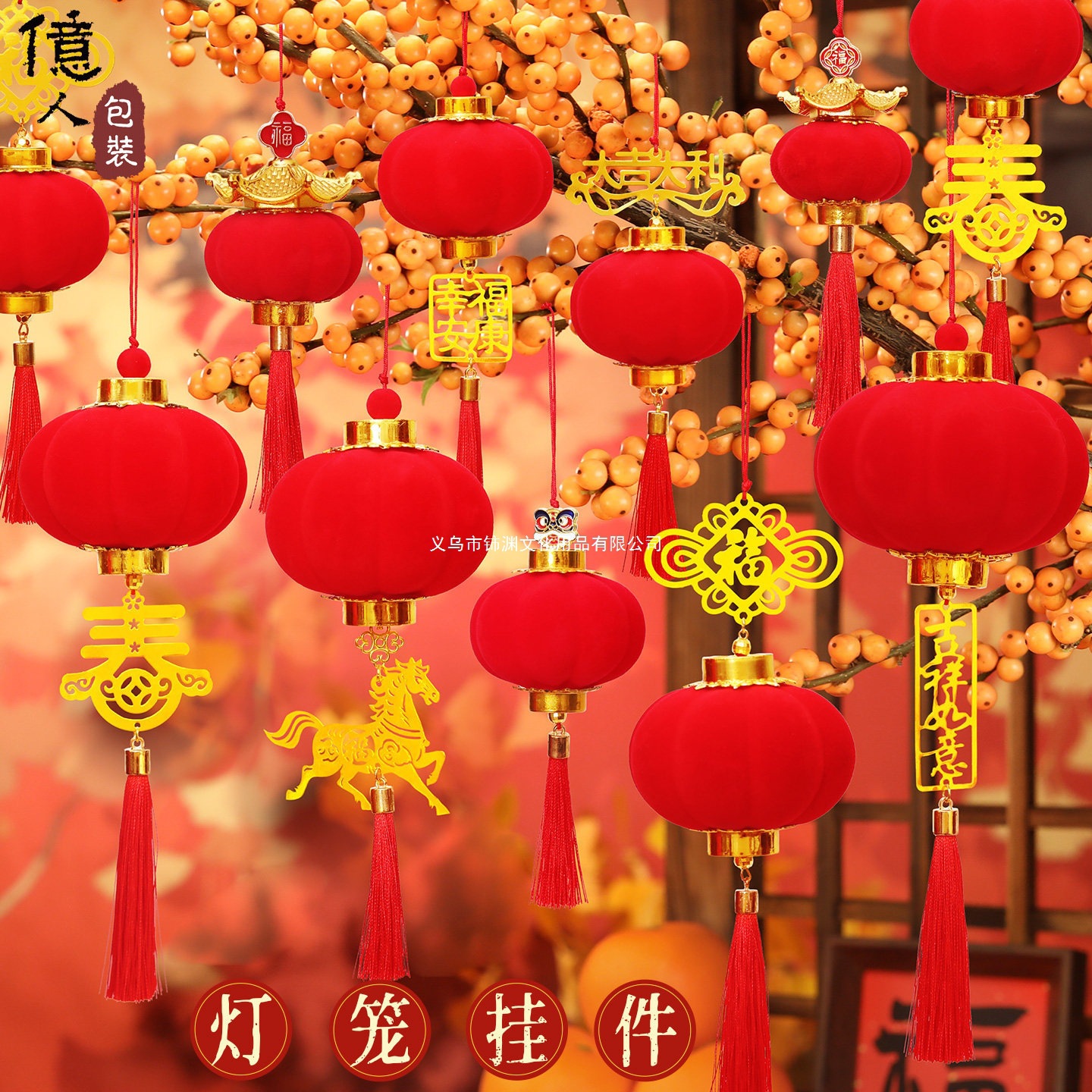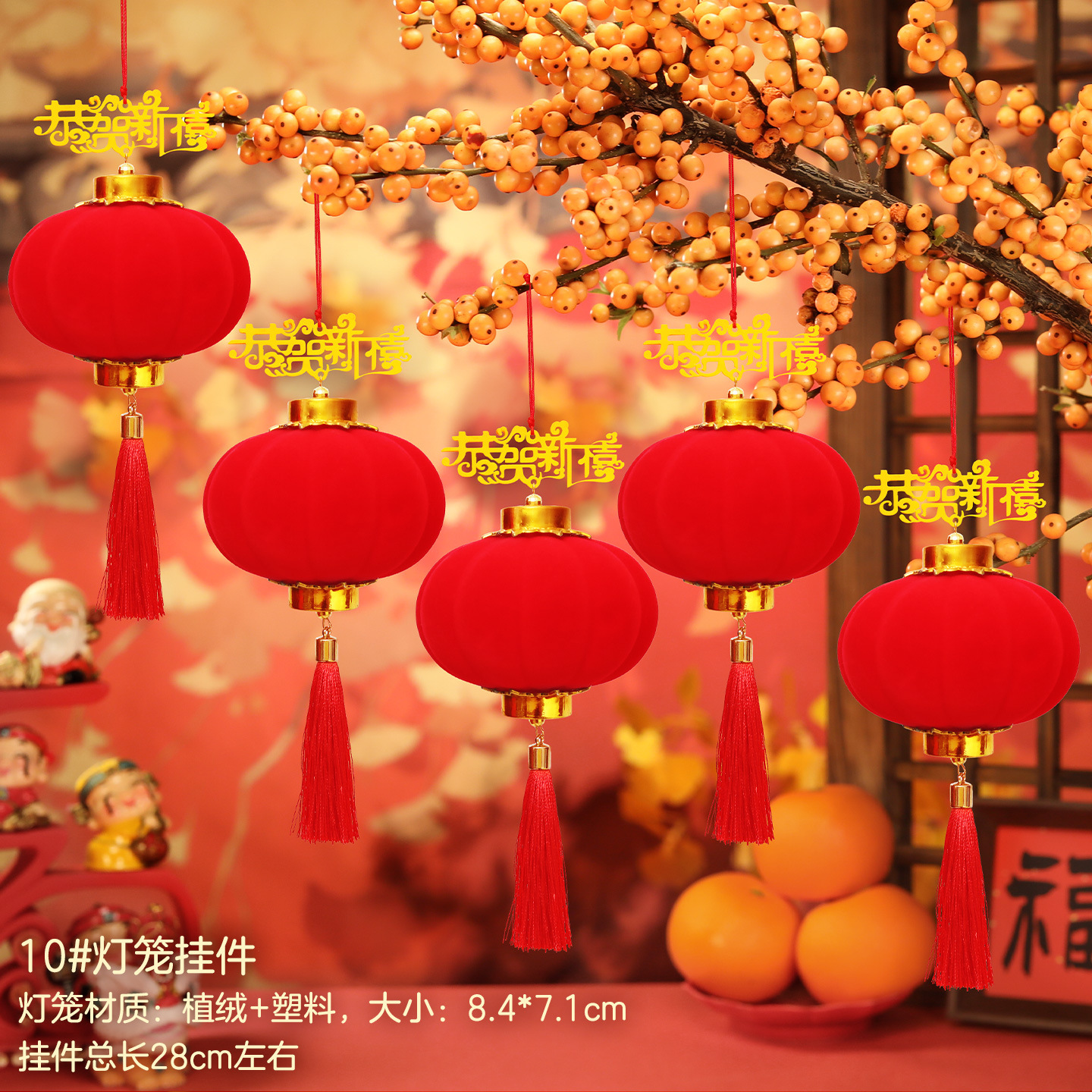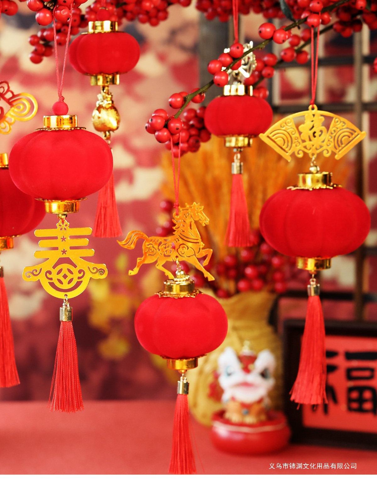 马年春节新年过年户外树木街道红灯笼元旦挂件玄关挂饰盆景灯笼中