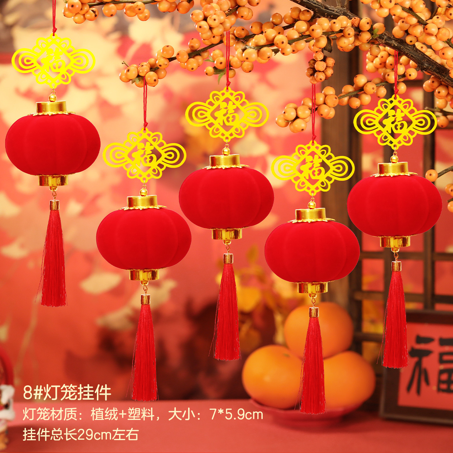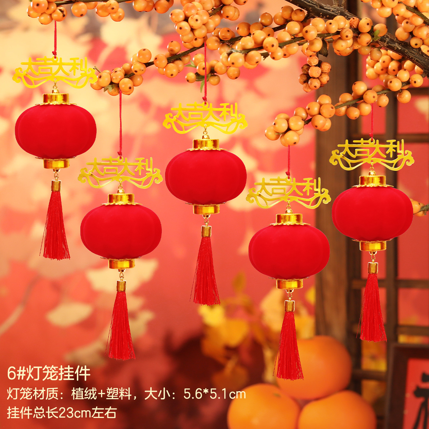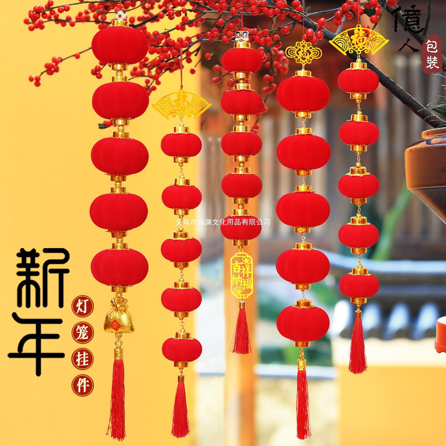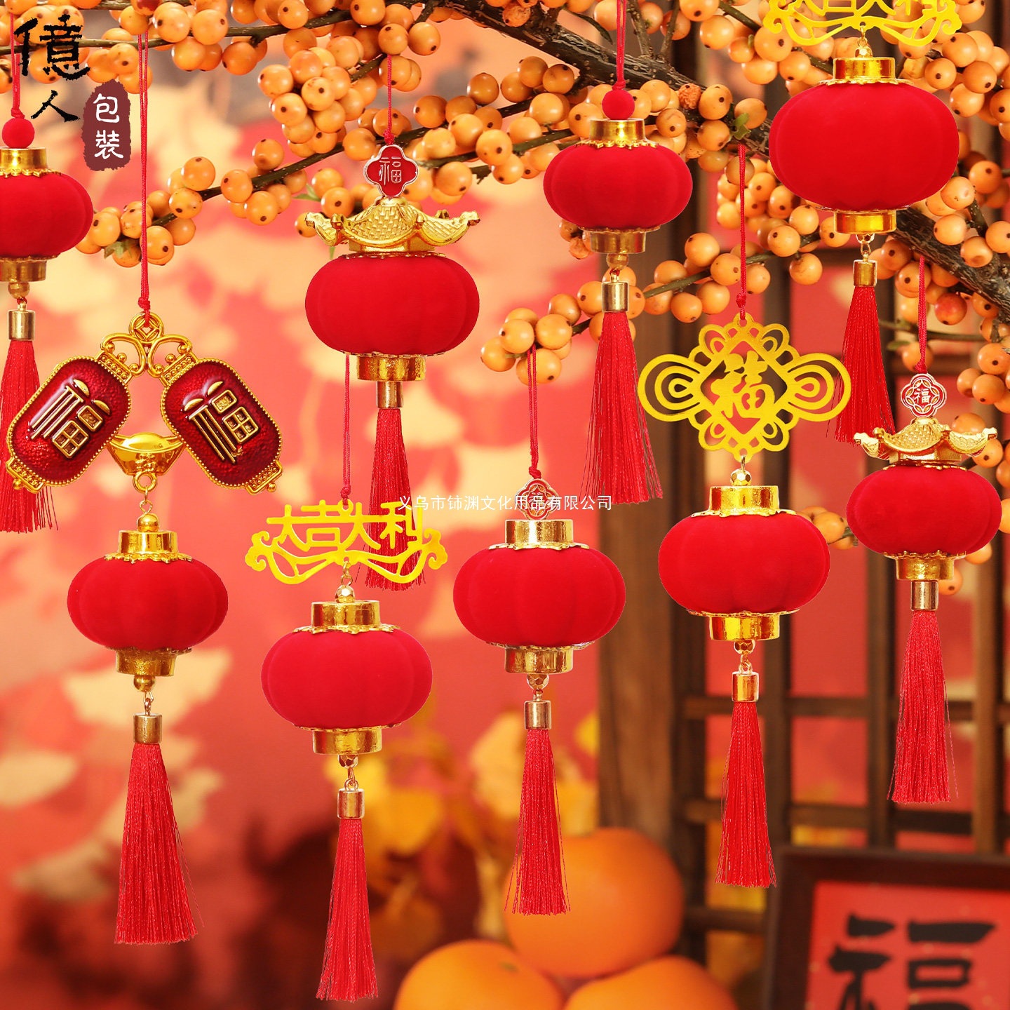 马年春节新年过年户外树木街道红灯笼元旦挂件玄关挂饰盆景灯笼中