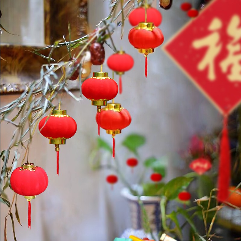✅2025新年蛇年挂件小灯笼装饰盆栽红灯笼喜庆过年灯笼挂饰户外树