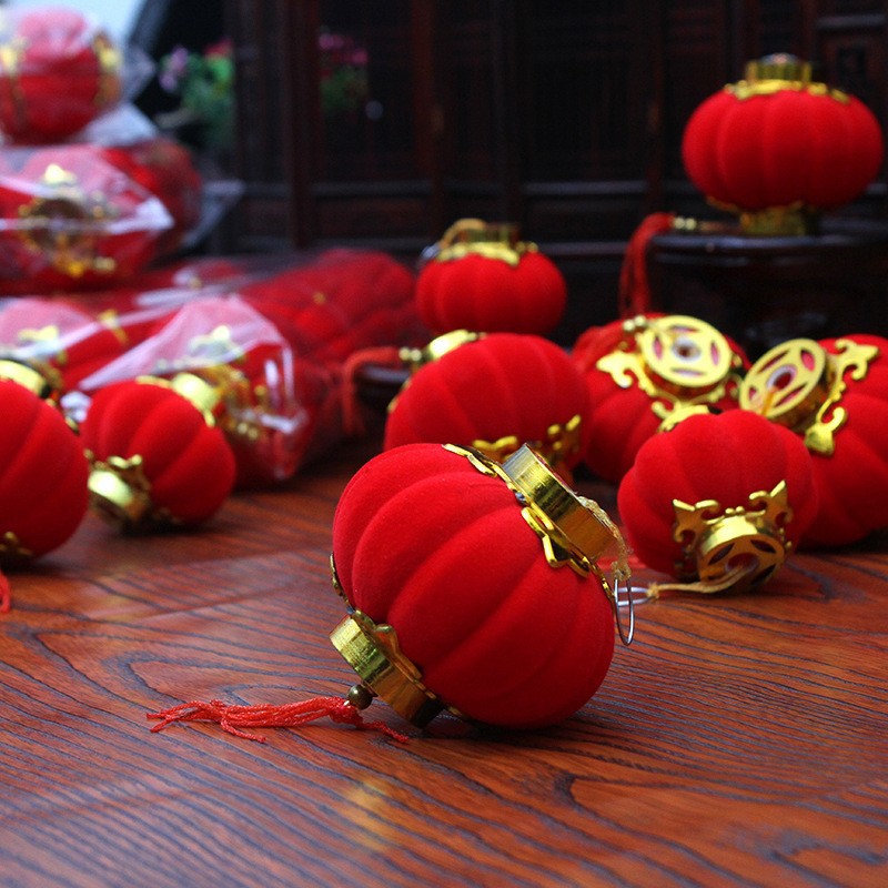 植绒小灯笼串挂件盆景春节新年节日喜庆结婚庆装饰阳台红灯笼批发